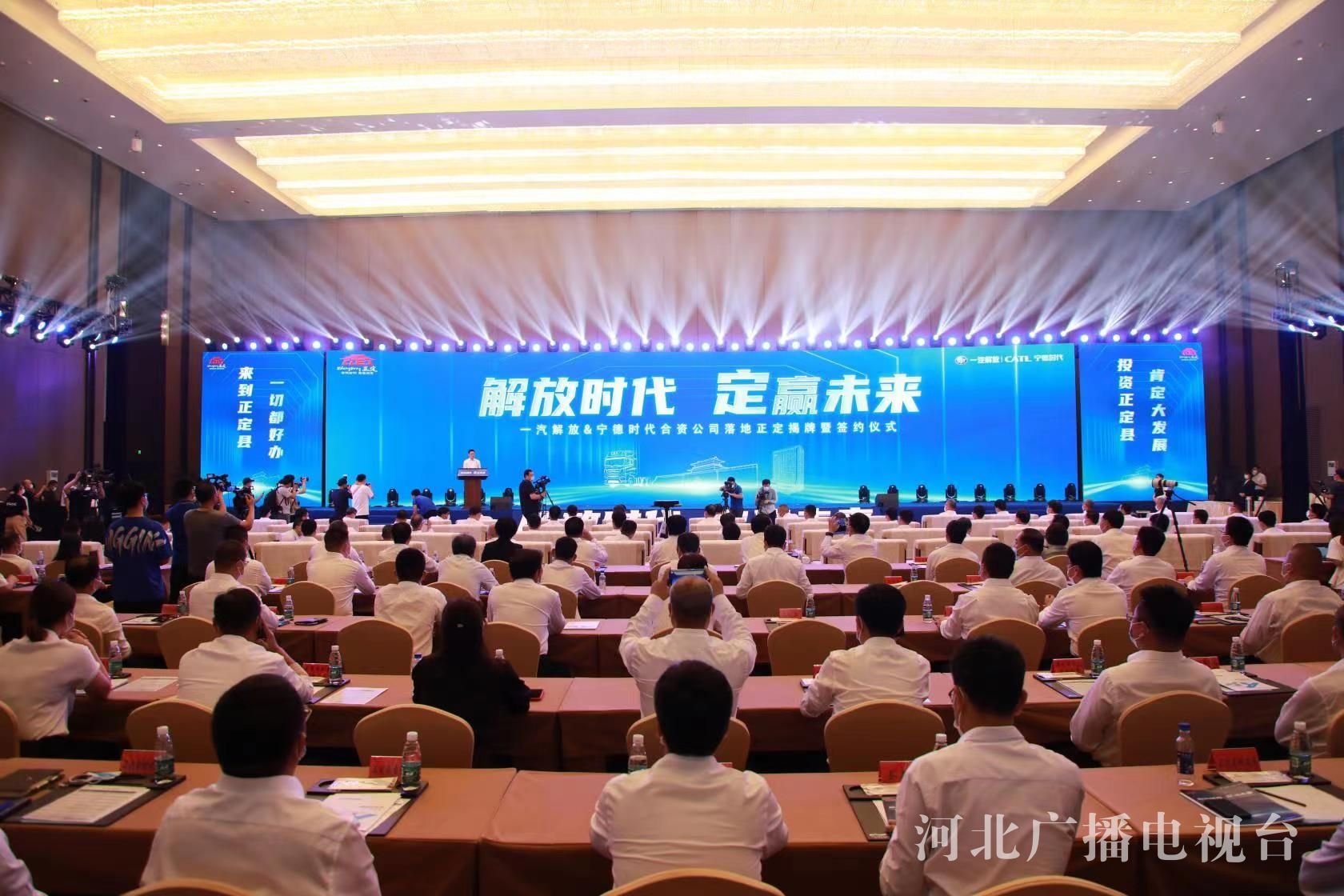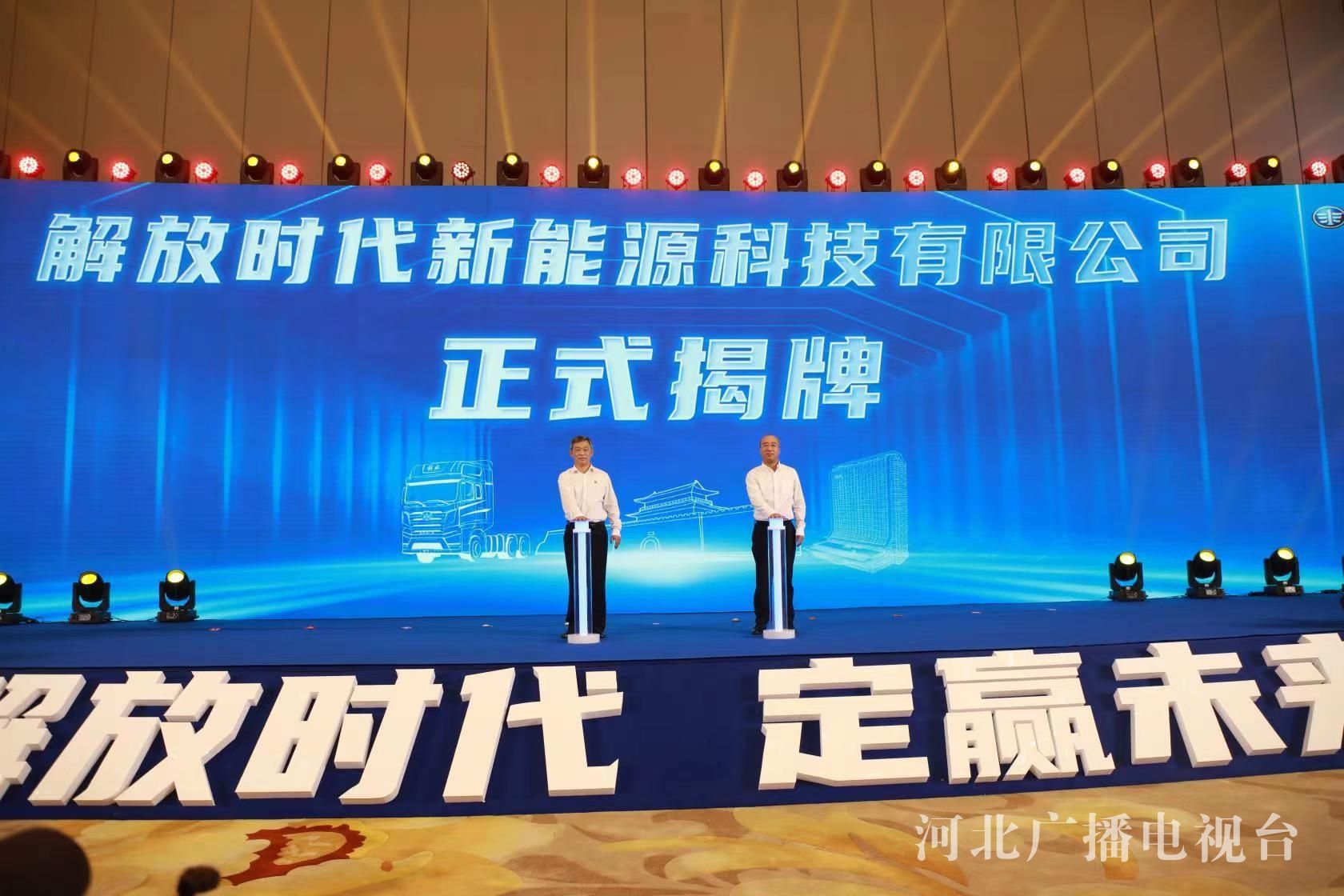 冀时客户端报道(河北台 杜岩卿 陈卓 通讯员 李聪 张廷伟)8月18日,石家庄市、正定县举办“解放时代、定赢未来”一汽解放、宁德时代合资公司落地正定揭牌暨签约仪式。由两家公司共同注资5亿元成立的合资公司解放时代新能源科技有限公司正式落户正定,共同打造立足石家庄、面向河北、辐射全国的新能源商用车运营中心。