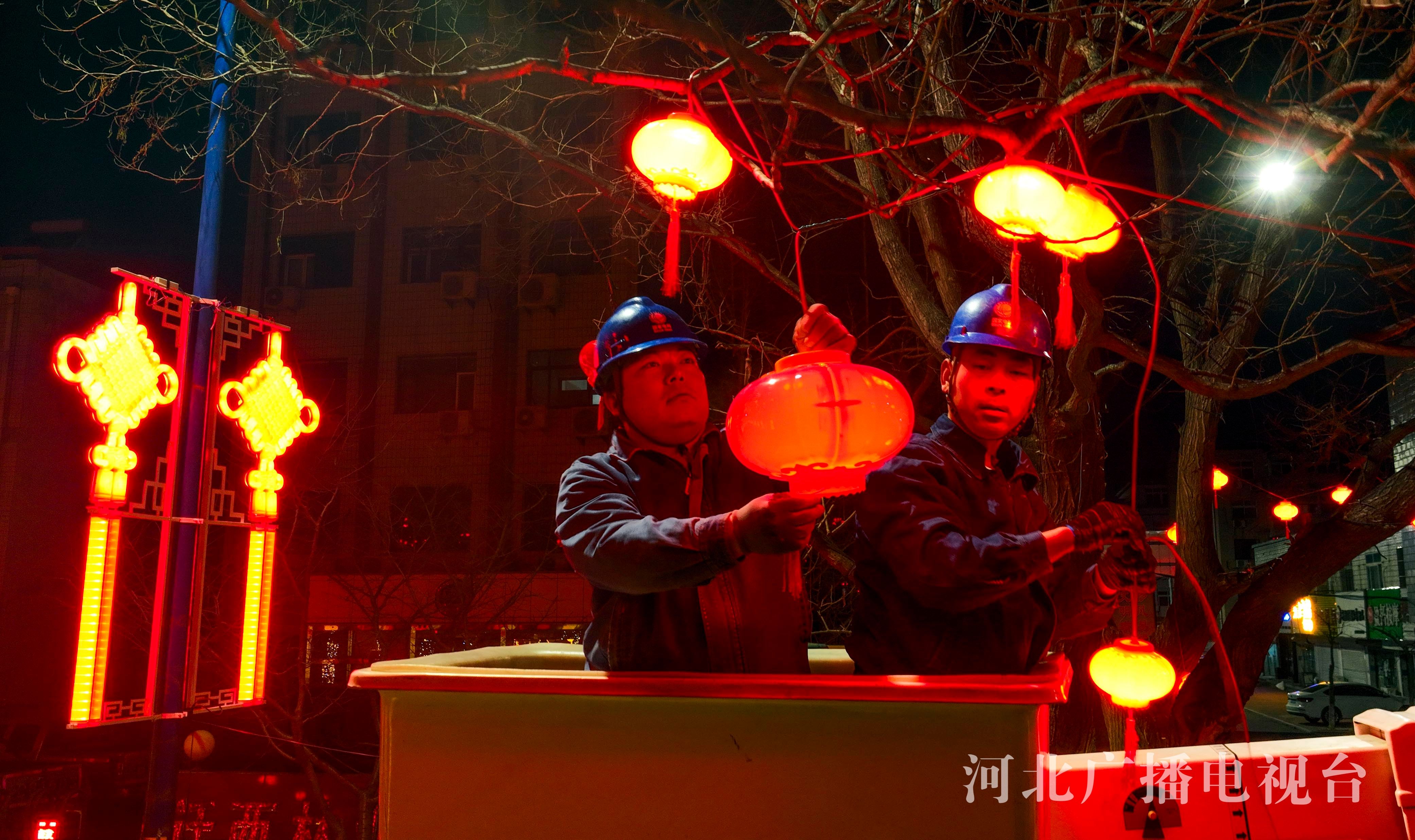 冀时客户端报道(通讯员 刘满仓)1月21日是大年三十,河北省迁西县城区灯展输电线路的维护人员利用清晨整理、检修亮化设施,确保市民晚间观灯,亮亮堂堂过佳节。