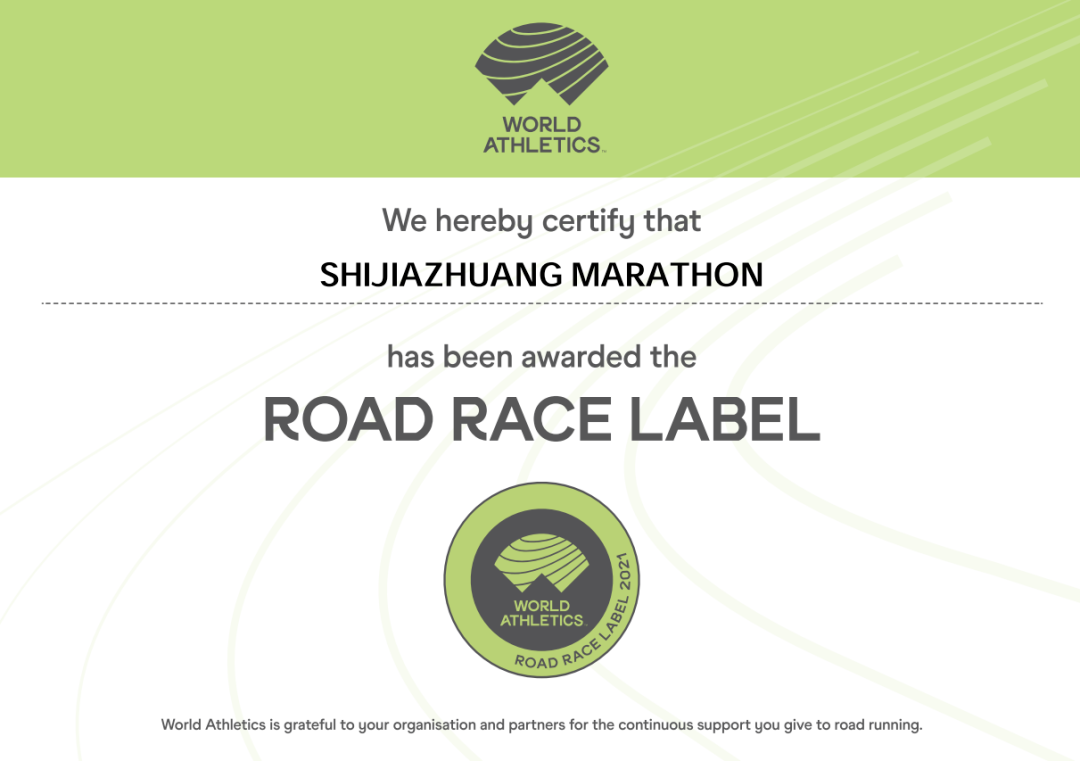 石家庄马拉松赛不断提升赛事品质与含金量。2019年获评国内金牌赛事后,2021年获评世界田联标牌赛事。