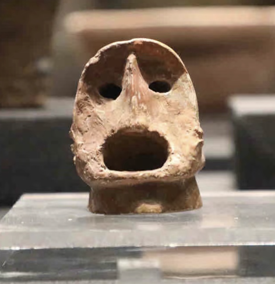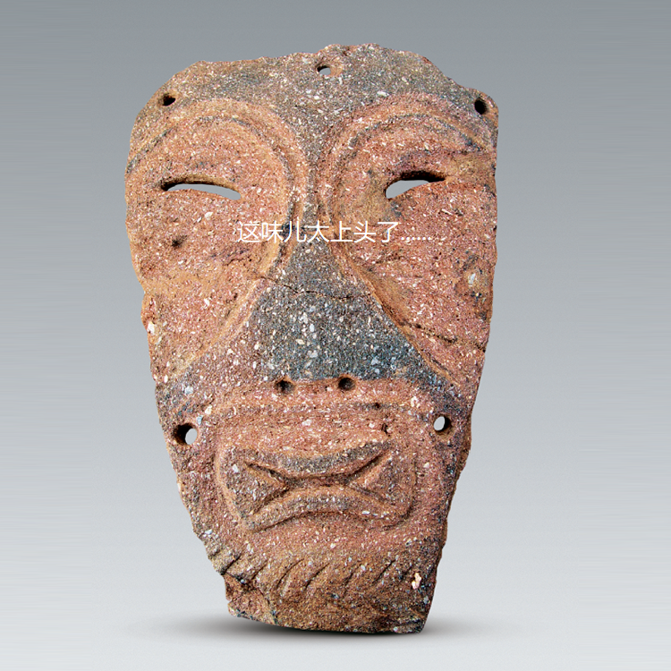 脸盖上刻划出眼、鼻、嘴的形象