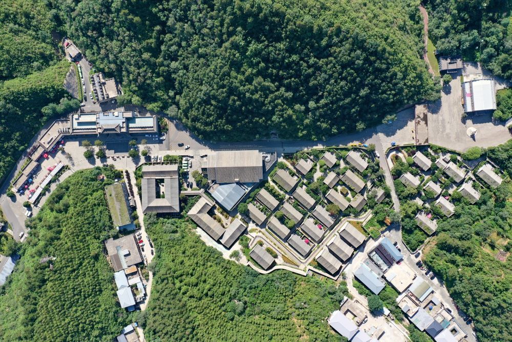 ↑金山岭长城脚下的花楼沟村(9月1日摄,无人机照片)。新华社记者 牟宇 摄