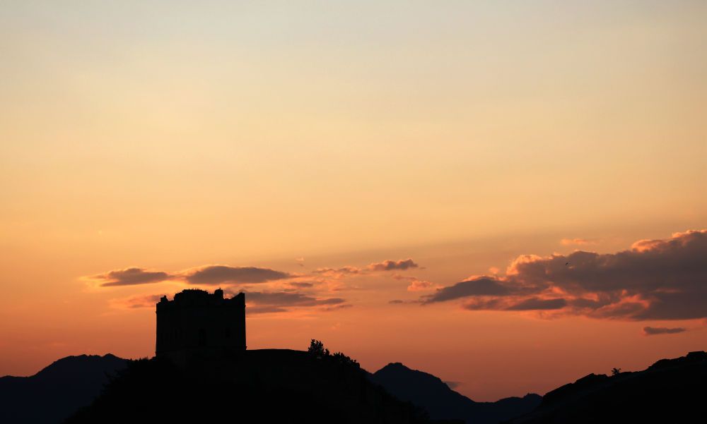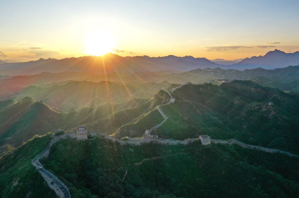 ↑这是夕阳下的金山岭长城景色(8月31日摄)。新华社记者 陈斌 摄