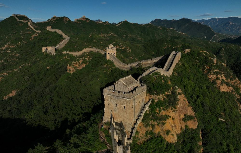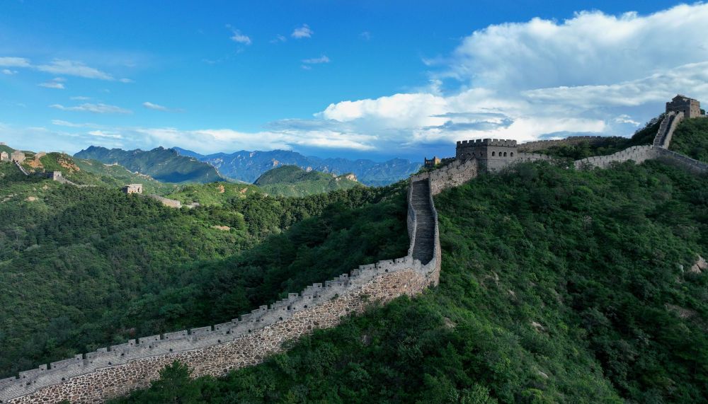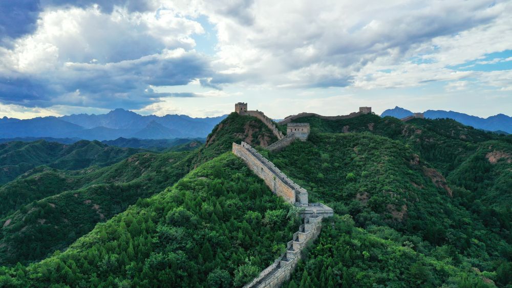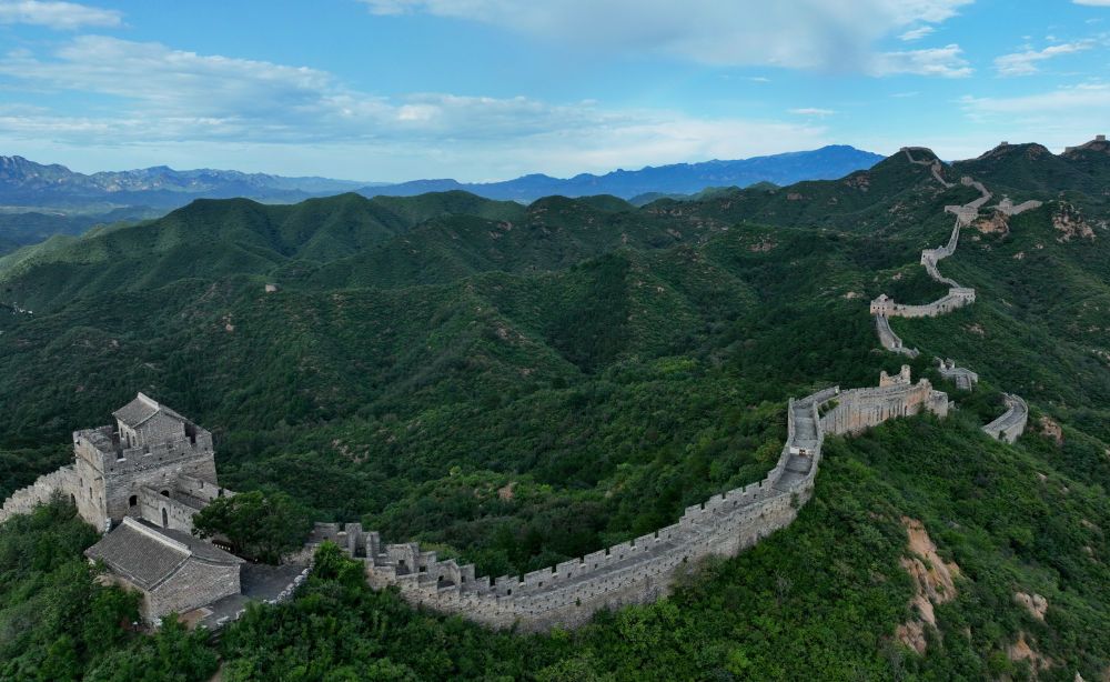 ↑这是8月31日拍摄的金山岭长城景色(无人机照片)。新华社记者 陈斌 摄