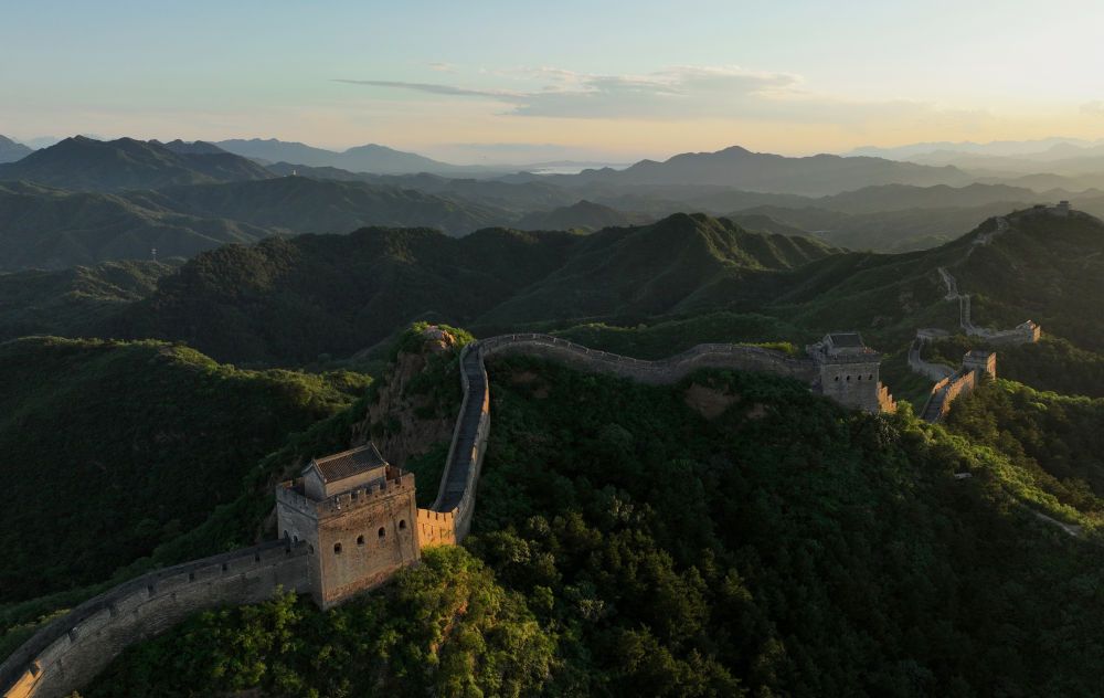 ↑黄昏中的金山岭长城(8月31日摄,无人机照片)。新华社记者 牟宇 摄