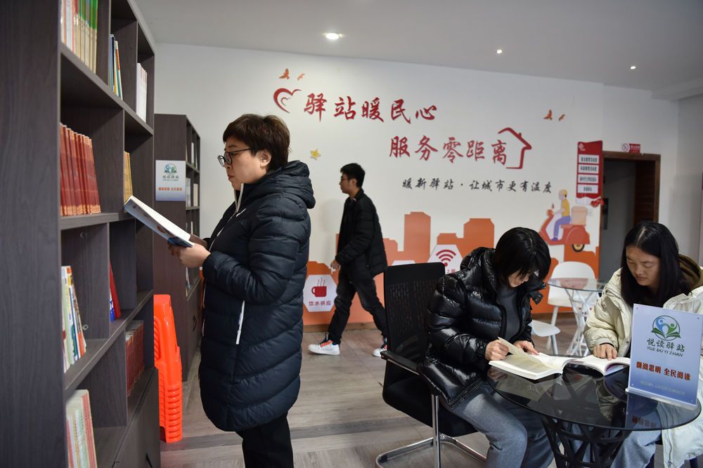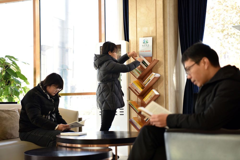 今年以来,河北省文安县将打造百姓“家门口”的阅读阵地作为深入推进全民阅读服务体系建设的重要抓手,积极协调相关部门在社区、银行网点、宾馆、餐饮店等窗口单位和沿街门店建设“悦读驿站”,最大限度延伸服务触角,满足不同群体多元化阅读需求,实现公共阅读有序发展和图书资源整合共享。目前,文安县共挂牌启用“悦读驿站”82个,配备图书及杂志7400余册,为社会各界读者提供更加便捷的图书阅读服务。(王晖 摄)
