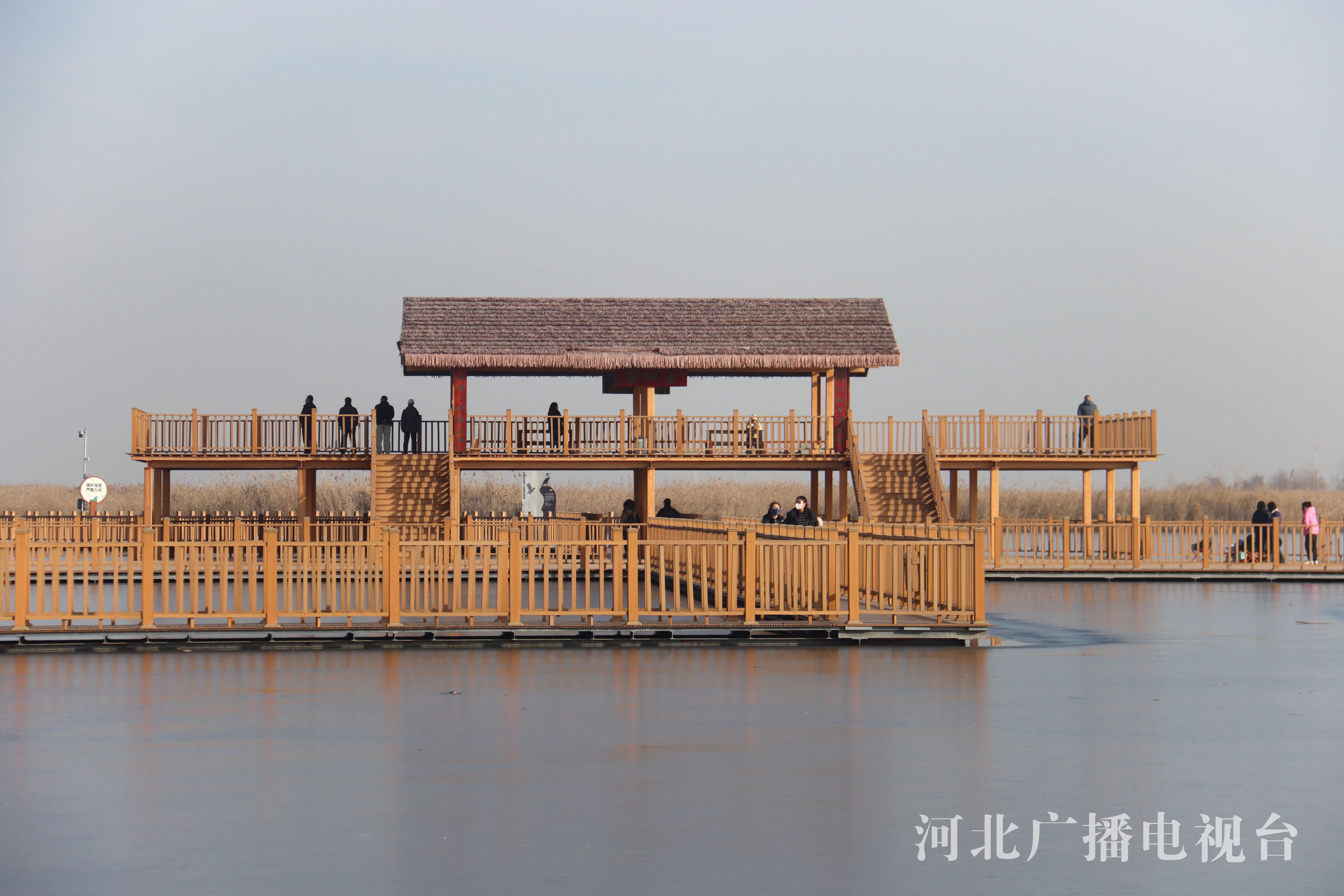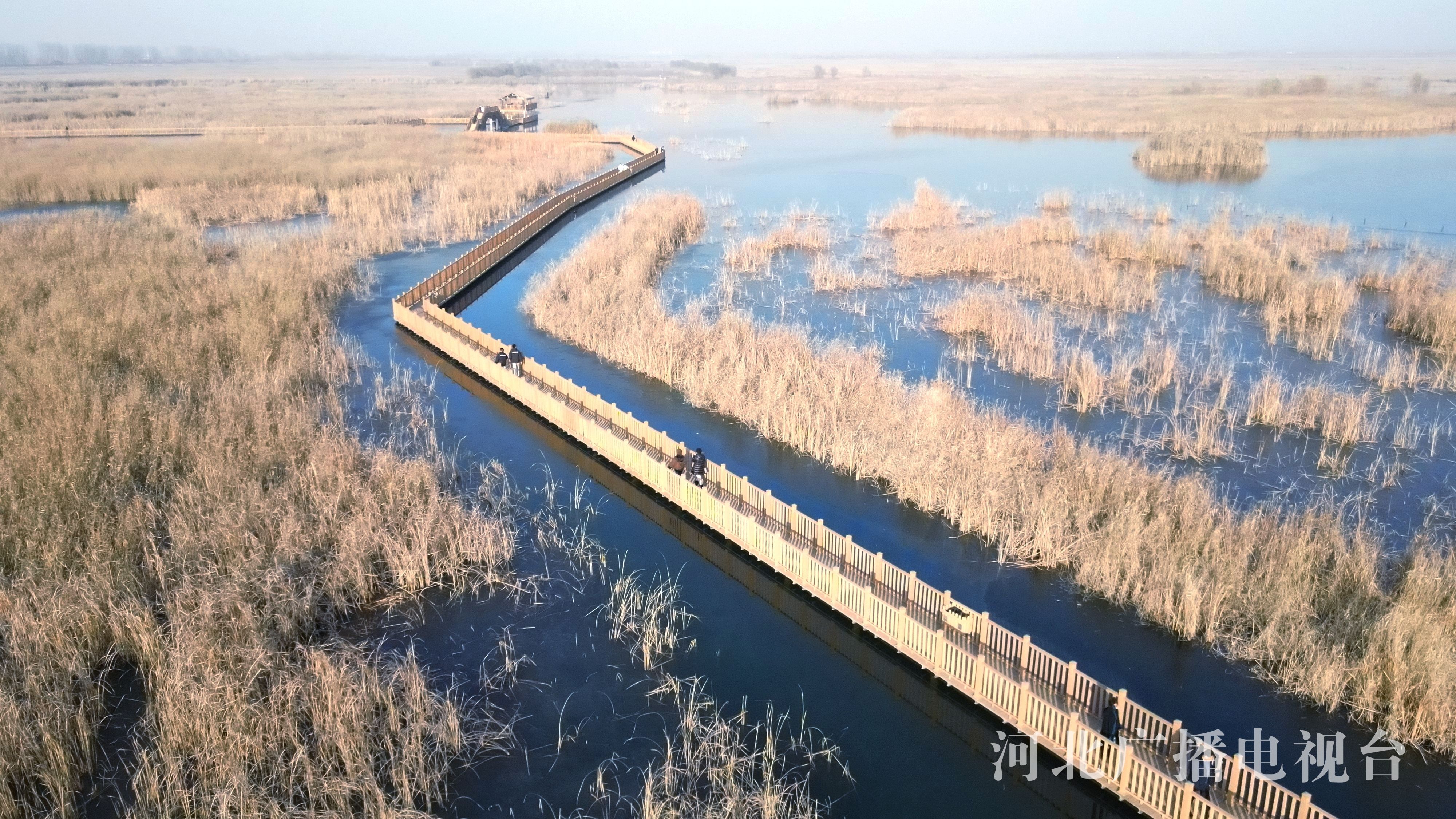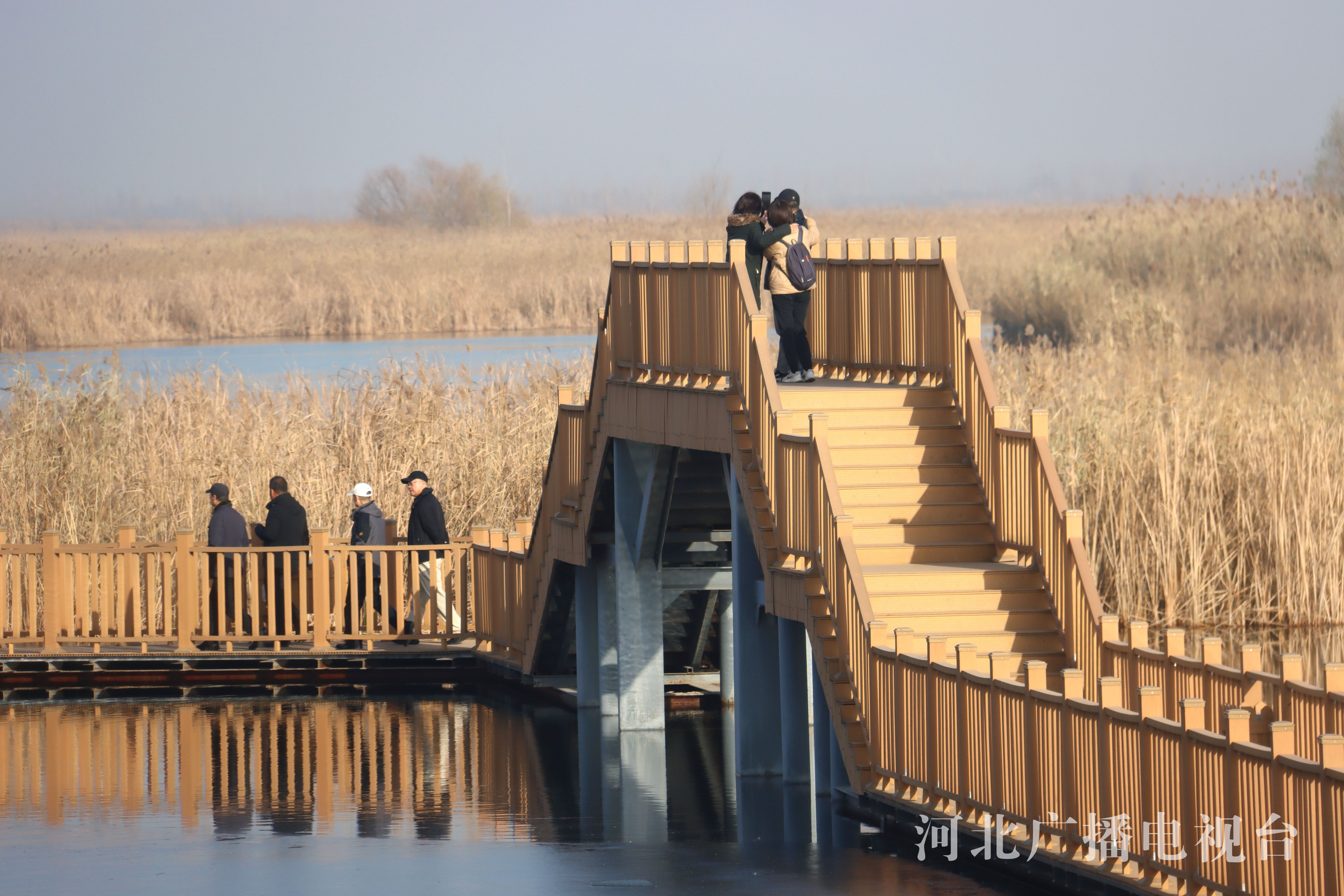 冀时客户端报道 (拍客 张建民)冬日的白洋淀长廊,远离了夏日的喧嚣,增添了一种静谧之美。金黄的芦苇迎风摇曳,芦花轻盈,苇絮如羽,各种不知名的鸟儿时而腾空而起,好似向游人展示自己漂亮的身姿。游人行走在长廊上欣赏着冬季里白洋淀特有的美景,仿佛构成了一幅唯美的画卷。