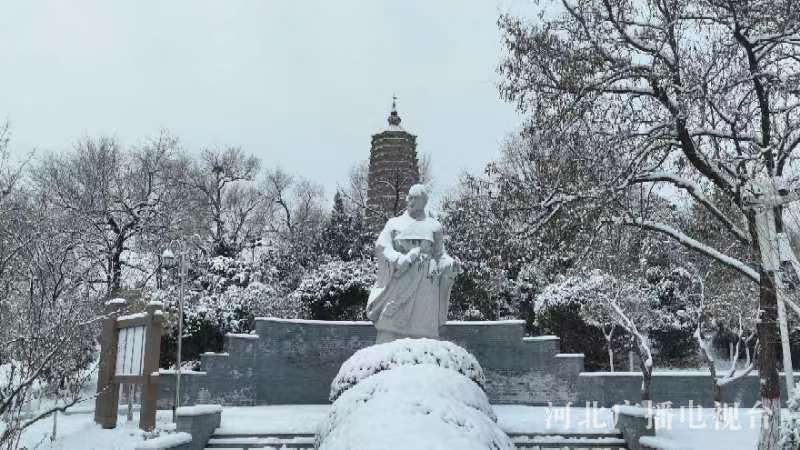 冀时客户端报道(河北台 常琛 通讯员 王斌 冯建华)大雪时节,一场不期而遇的降雪将易县荆轲公园装扮得银装素裹。