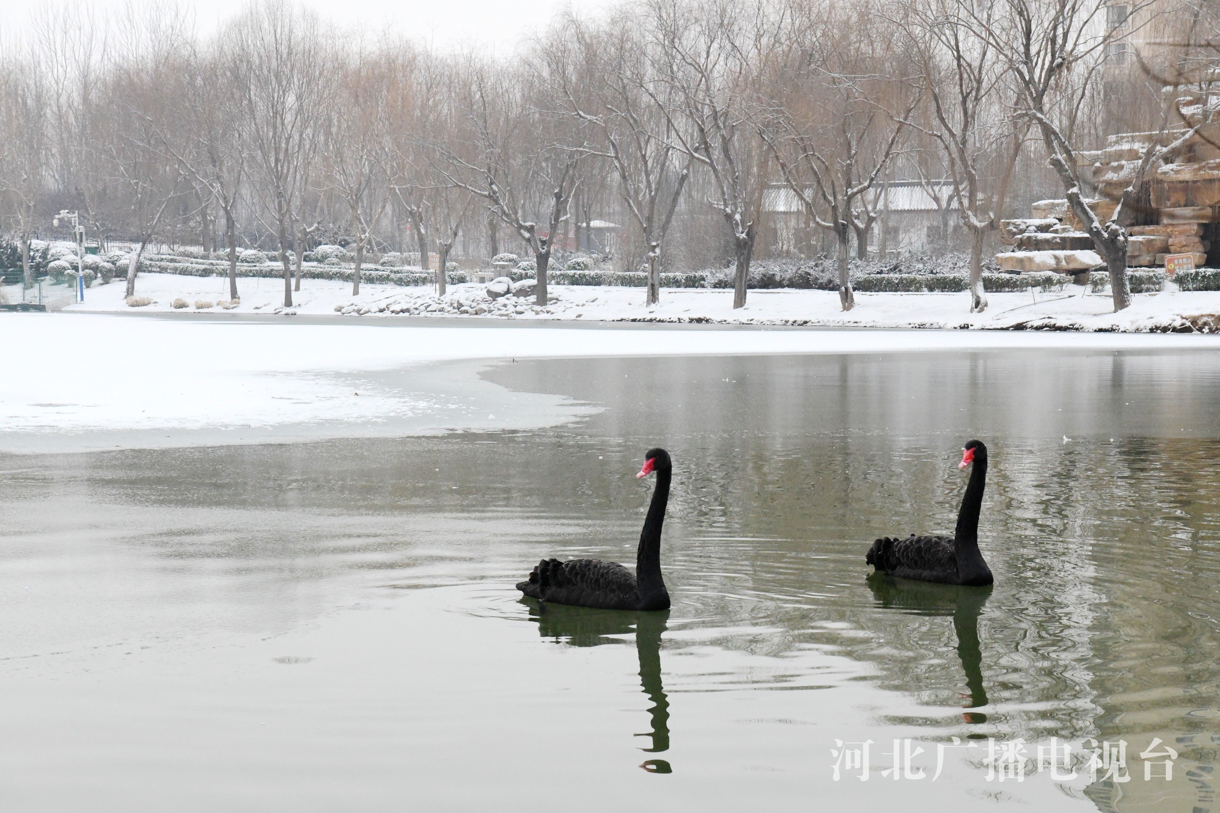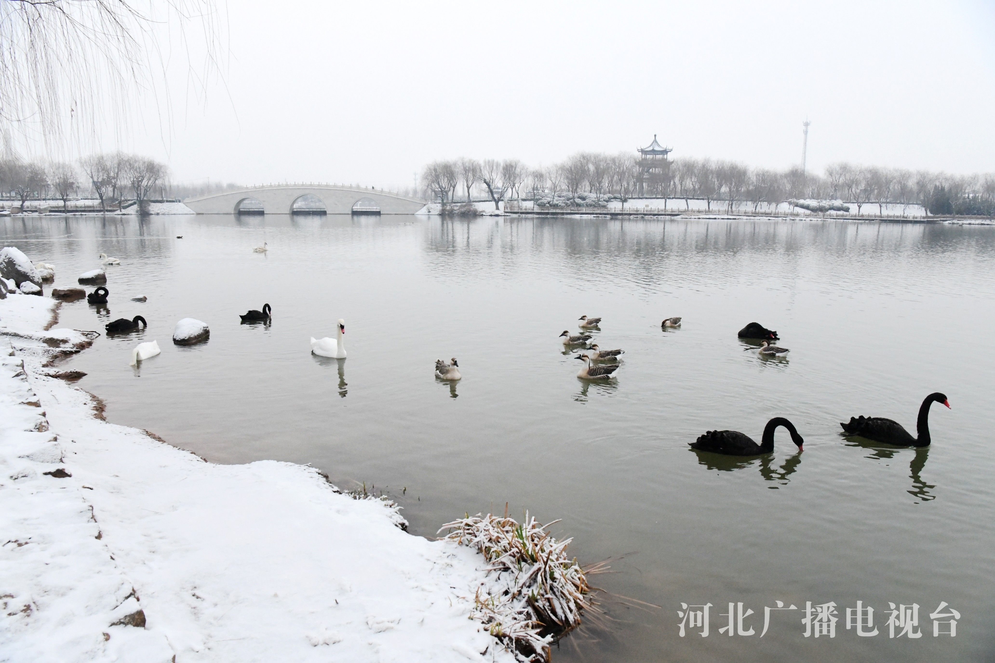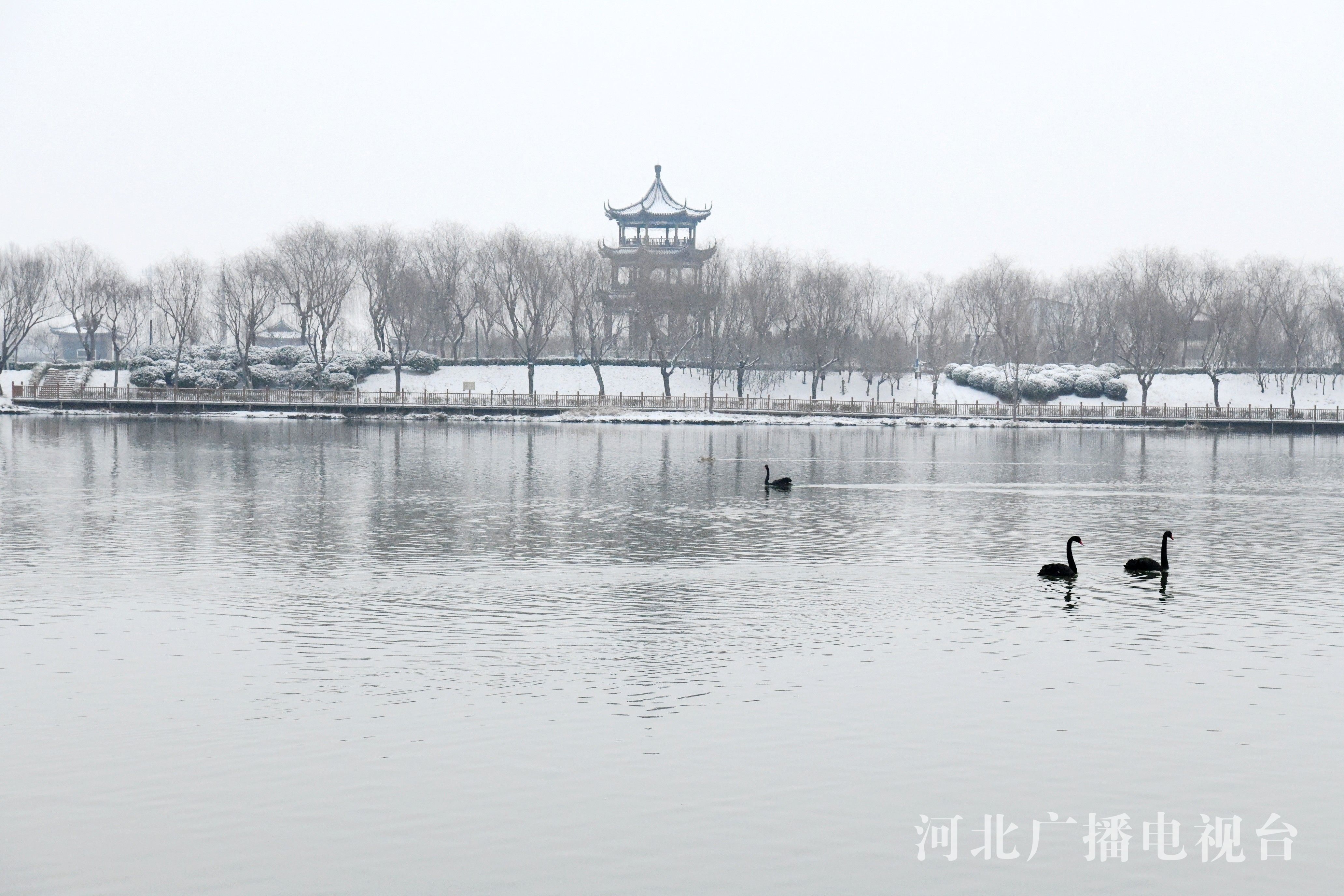 冀时客户端报道(拍客 程学虎)2月4日晚,河北省邯郸市广平县迎来一场降雪,白雪将广平县天鹅湖湿地公园装点得银装素裹。成群的大天鹅漫步、栖息、觅食,与湖畔亭台楼阁和碧波粼粼的湖面构成一幅优美画卷。