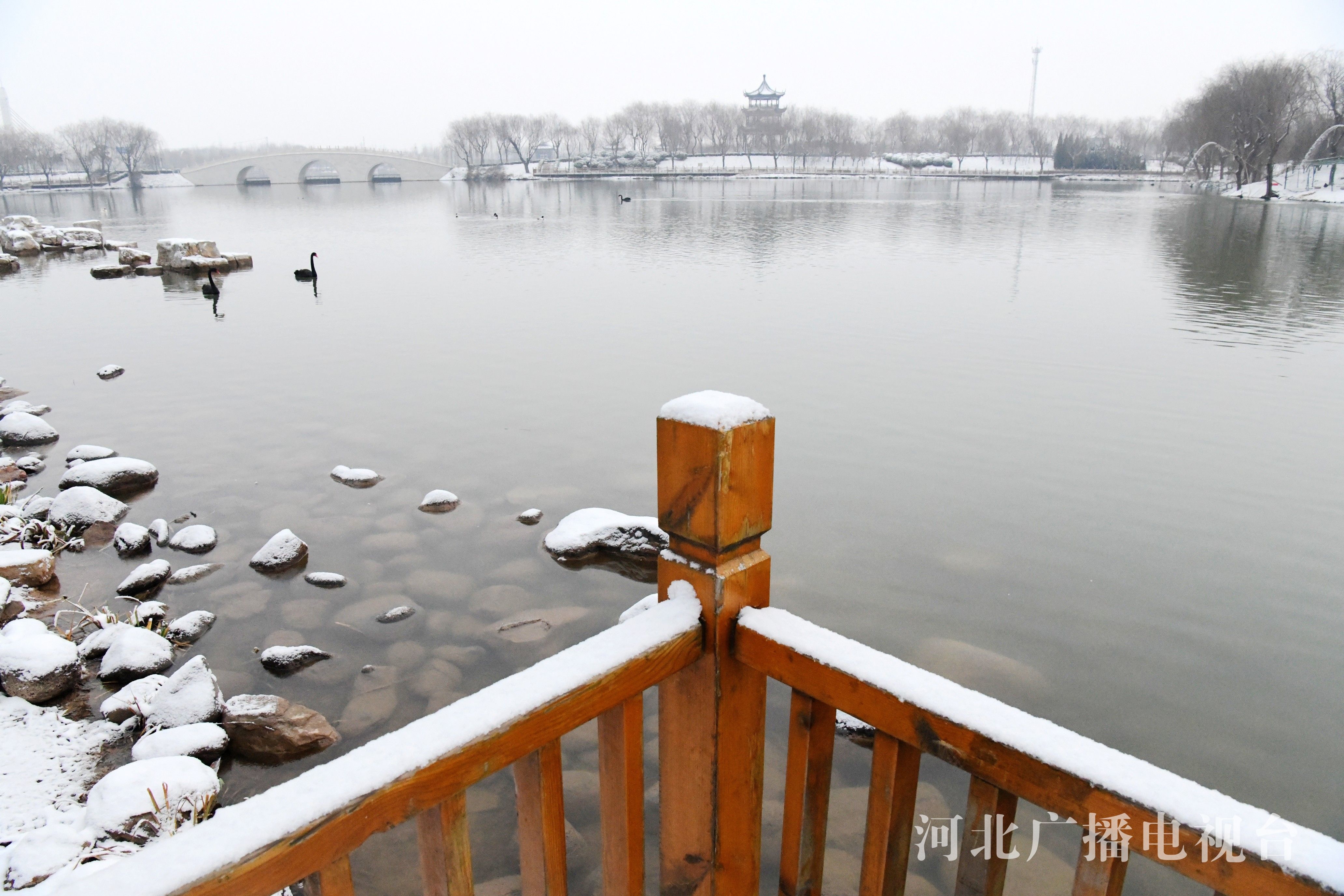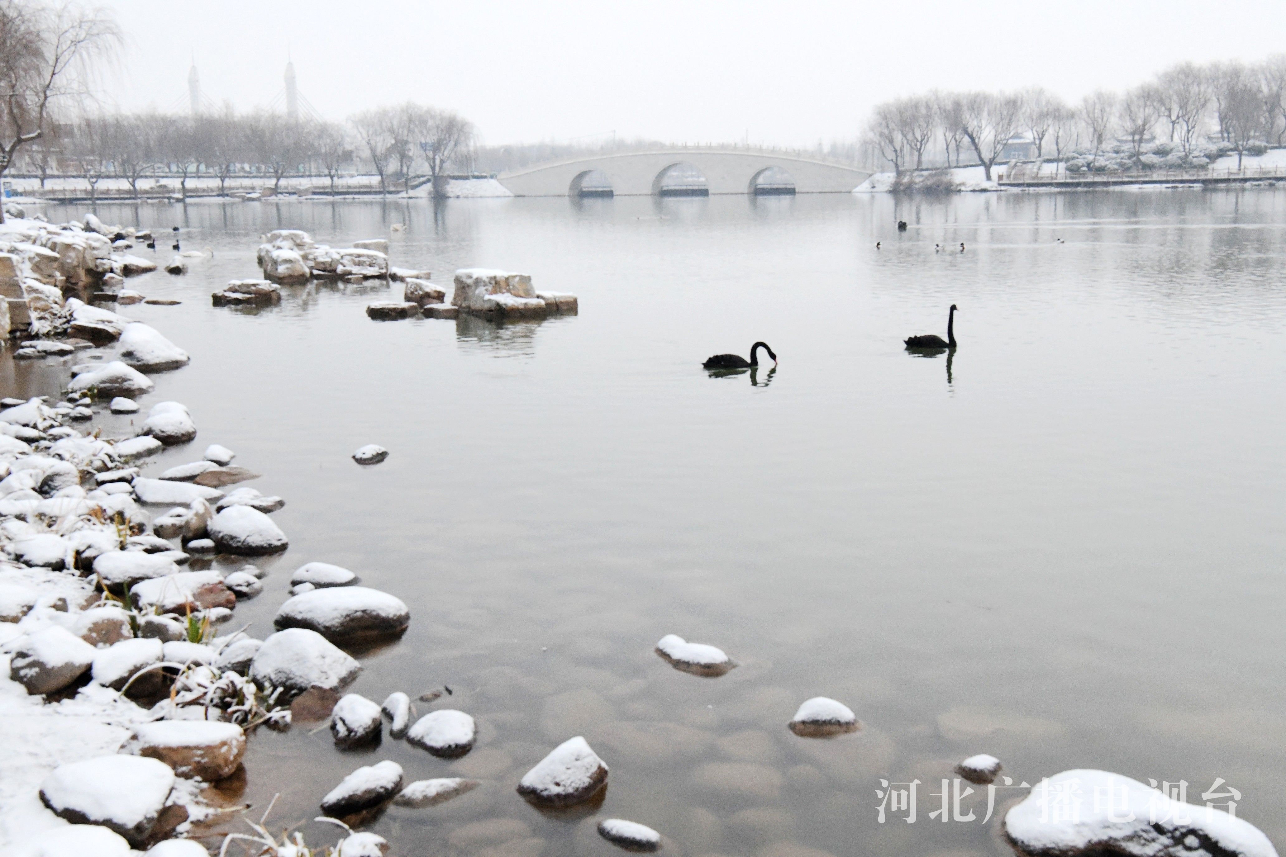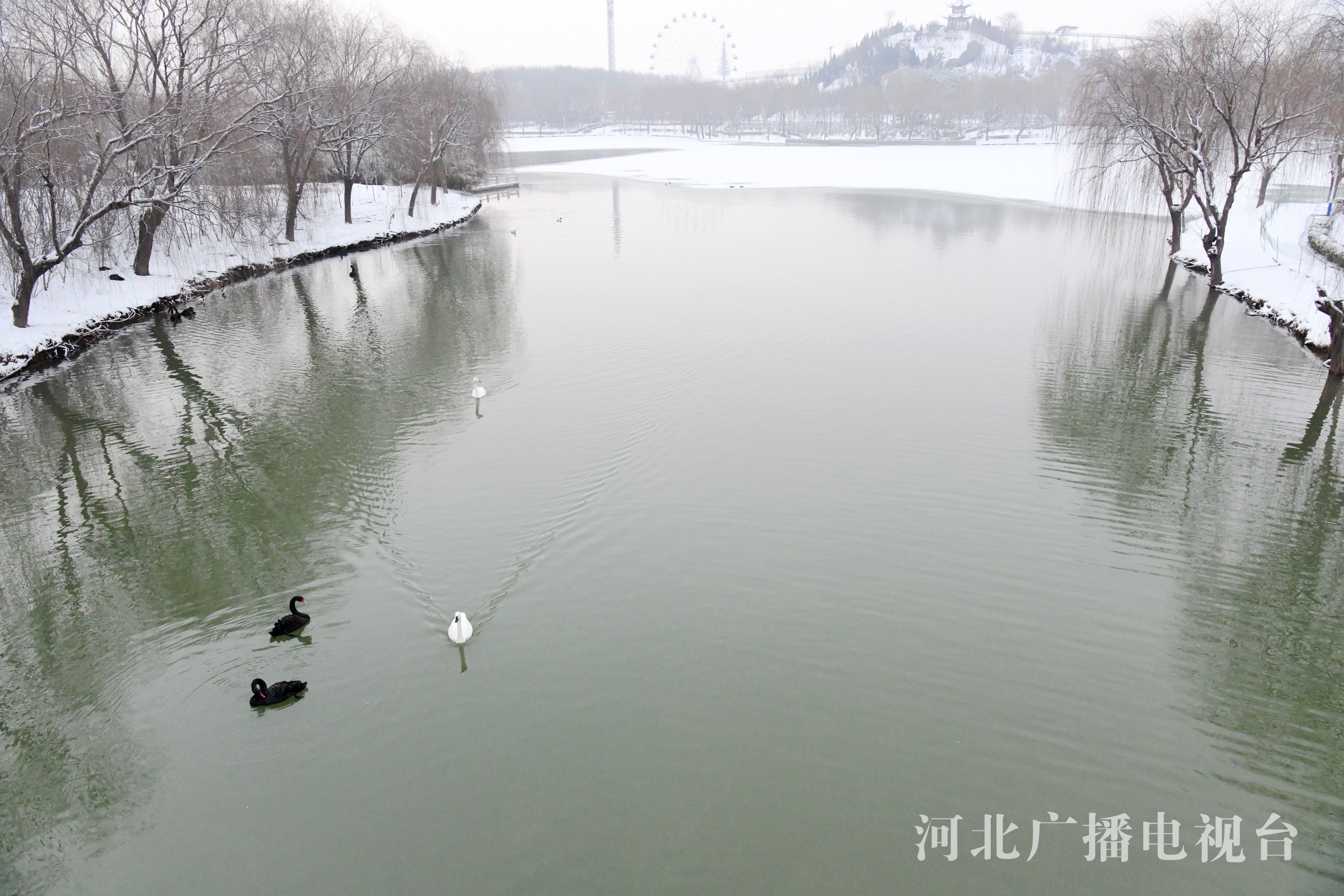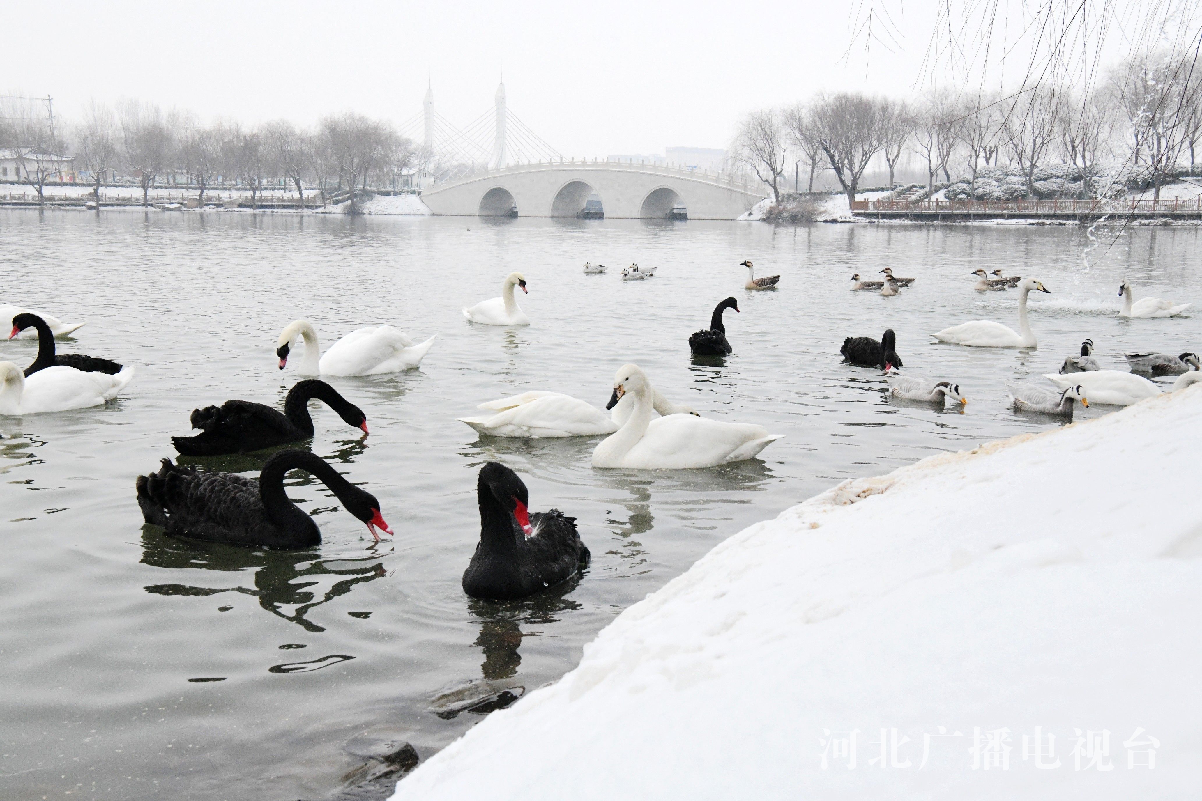 冀时客户端报道(拍客 程学虎)2月4日晚,河北省邯郸市广平县迎来一场降雪,白雪将广平县天鹅湖湿地公园装点得银装素裹。成群的大天鹅漫步、栖息、觅食,与湖畔亭台楼阁和碧波粼粼的湖面构成一幅优美画卷。