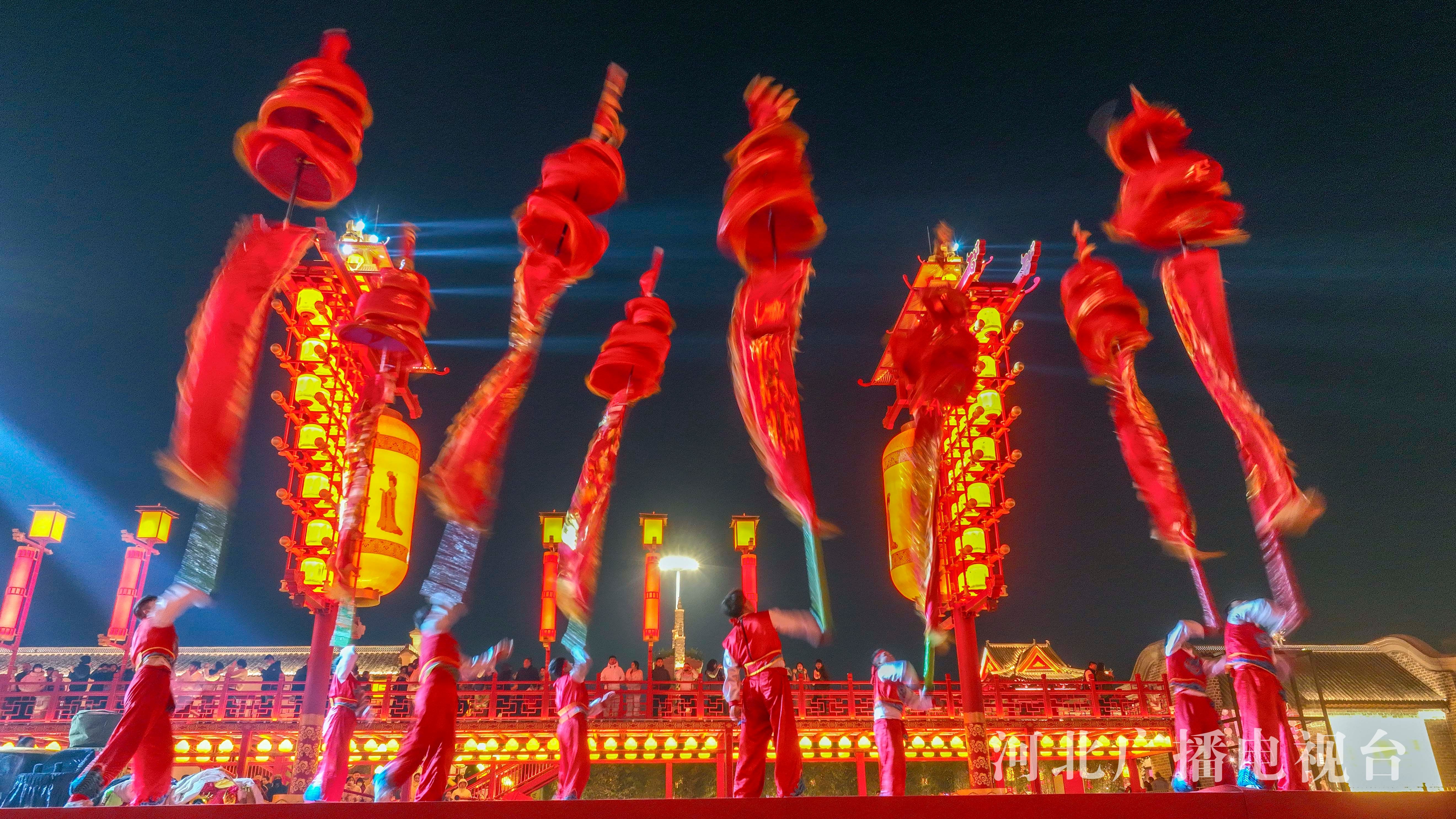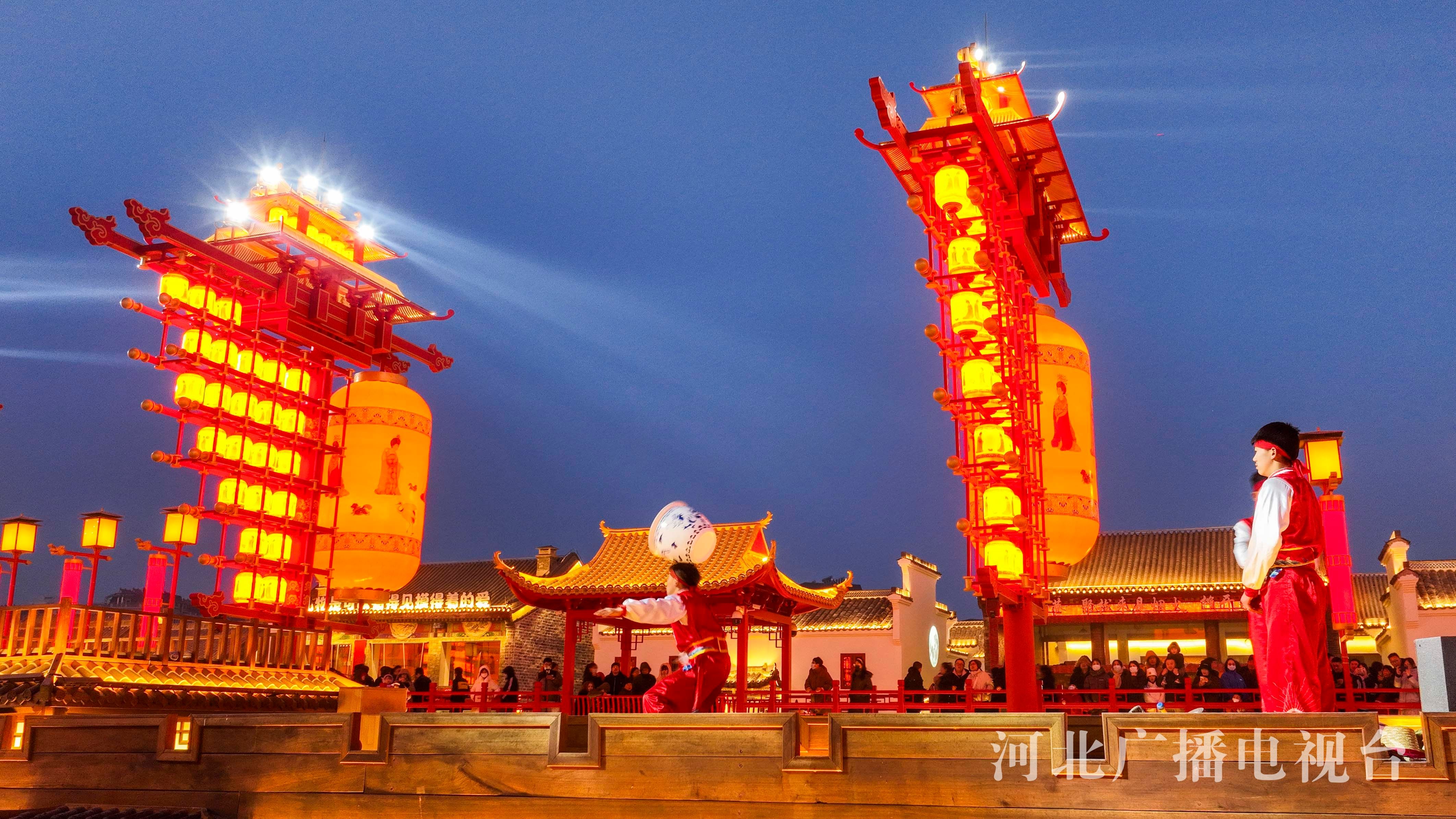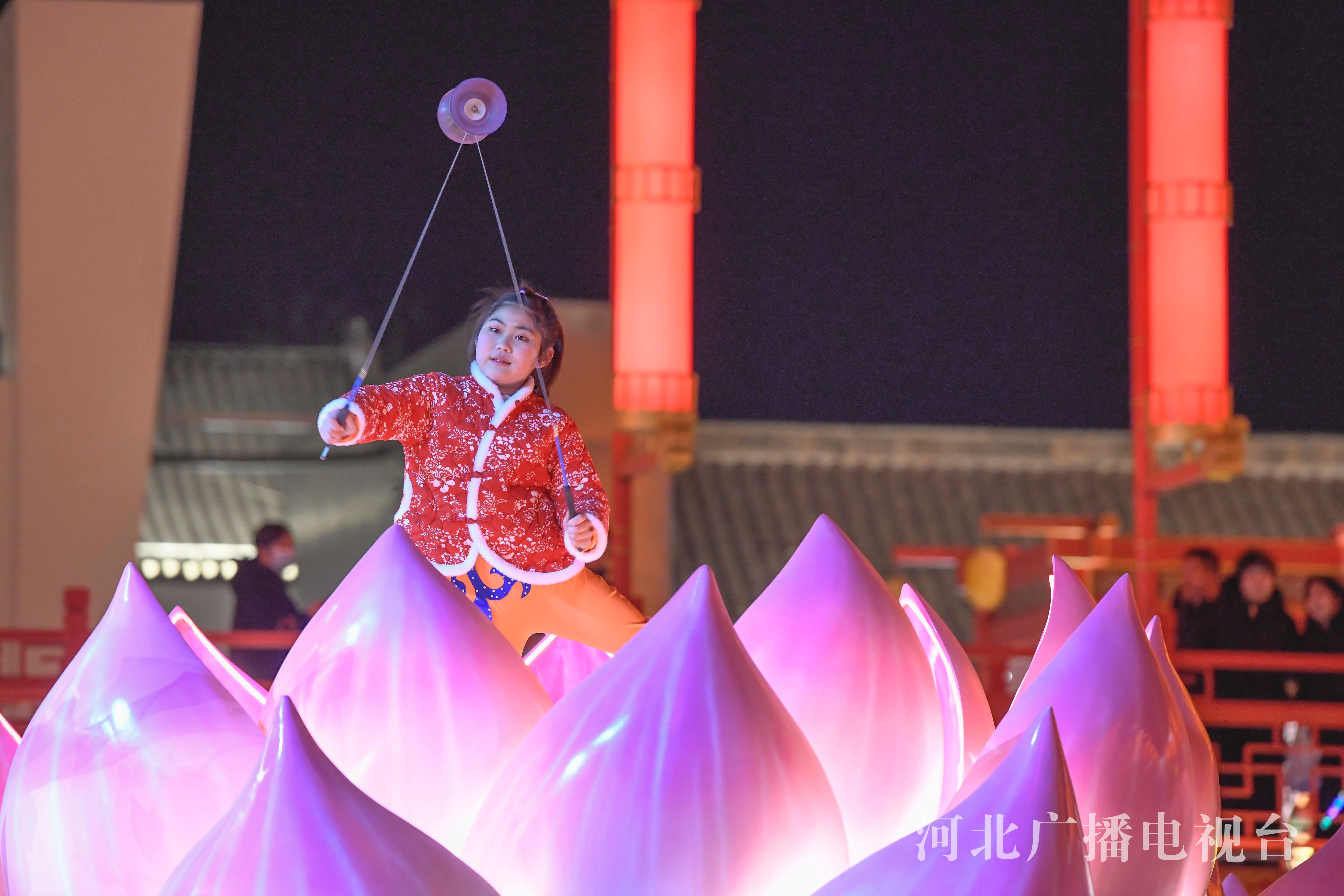 冀时客户端报道(通讯员 刘满仓)2月14日晚,民间艺人和杂技演员在表演非遗节目。春节假期,在河北省唐山市丰南区河头老街新春庙会人上,杂技、民俗等传统非遗节目轮番上演,吸引众多游客驻足观看,人们在欣赏娱乐中,感受传统文化魅力。
