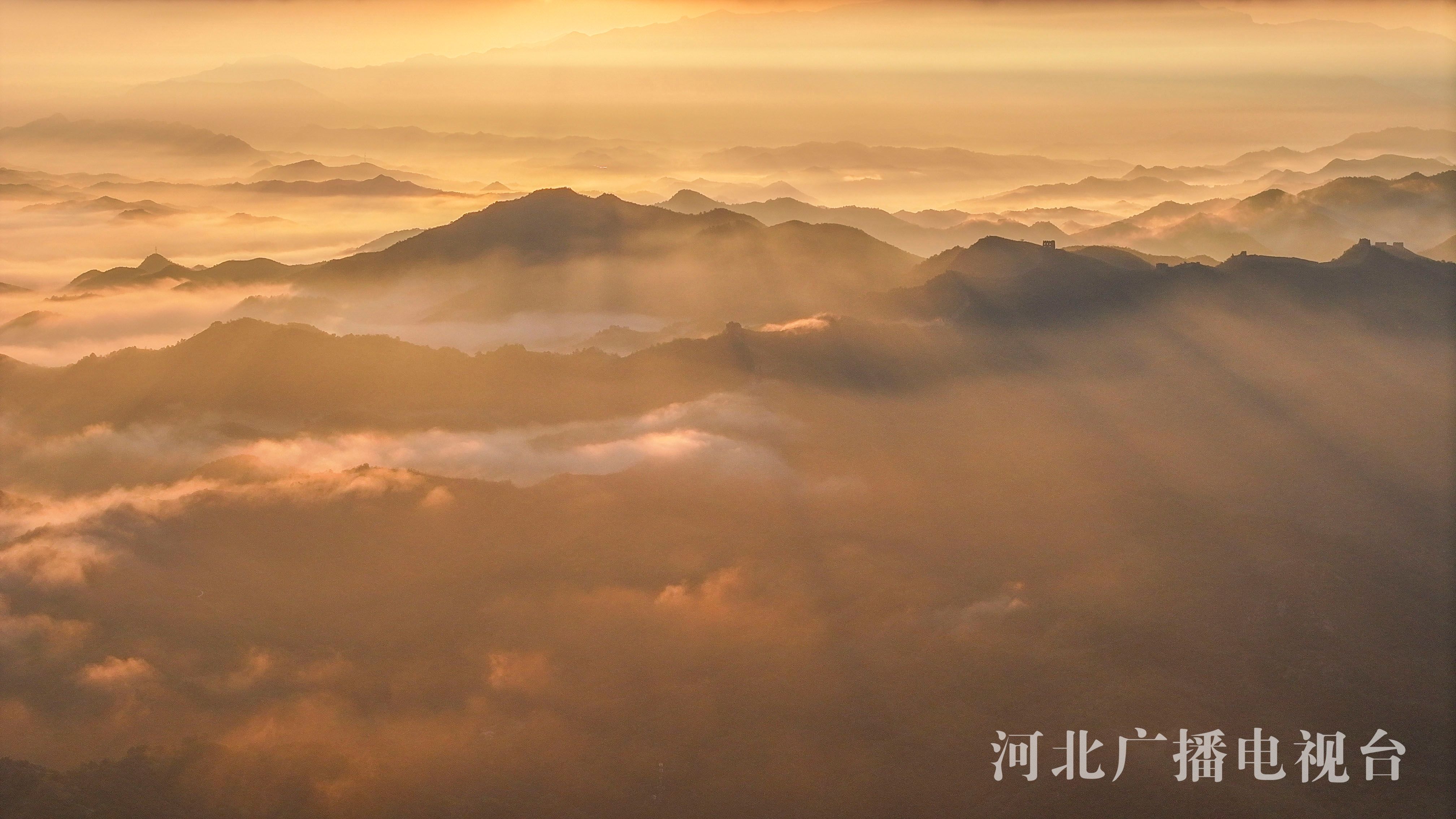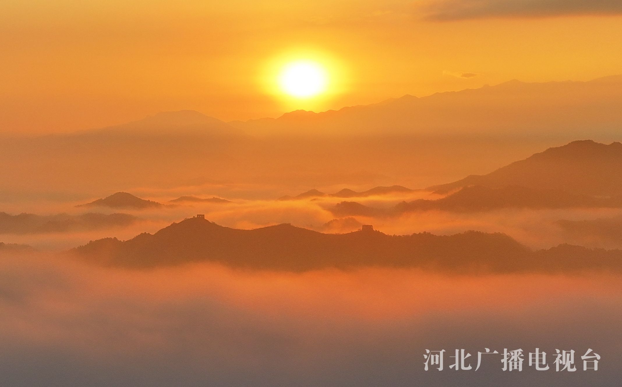 当日清晨,位于承德市滦平县的金山岭长城景区云蒸霞蔚,浩瀚的云海映衬的古长城,宏伟壮观,美景如画。