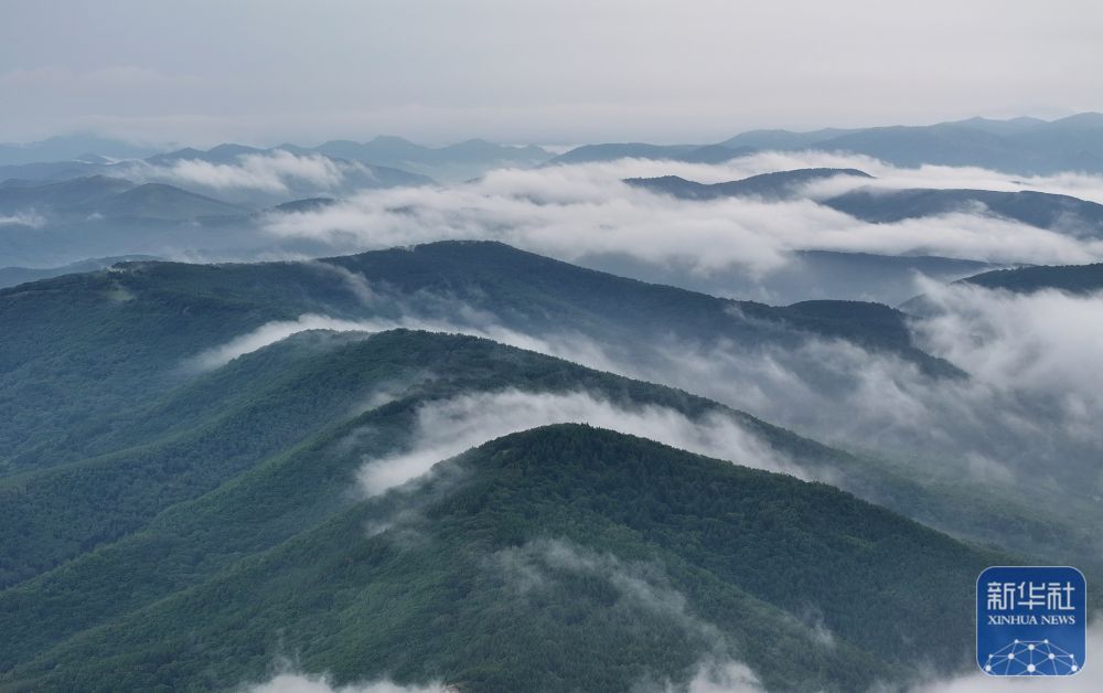 夏日,河北省隆化县的茅荆坝国家森林公园晨雾飘渺、林海壮美如画。