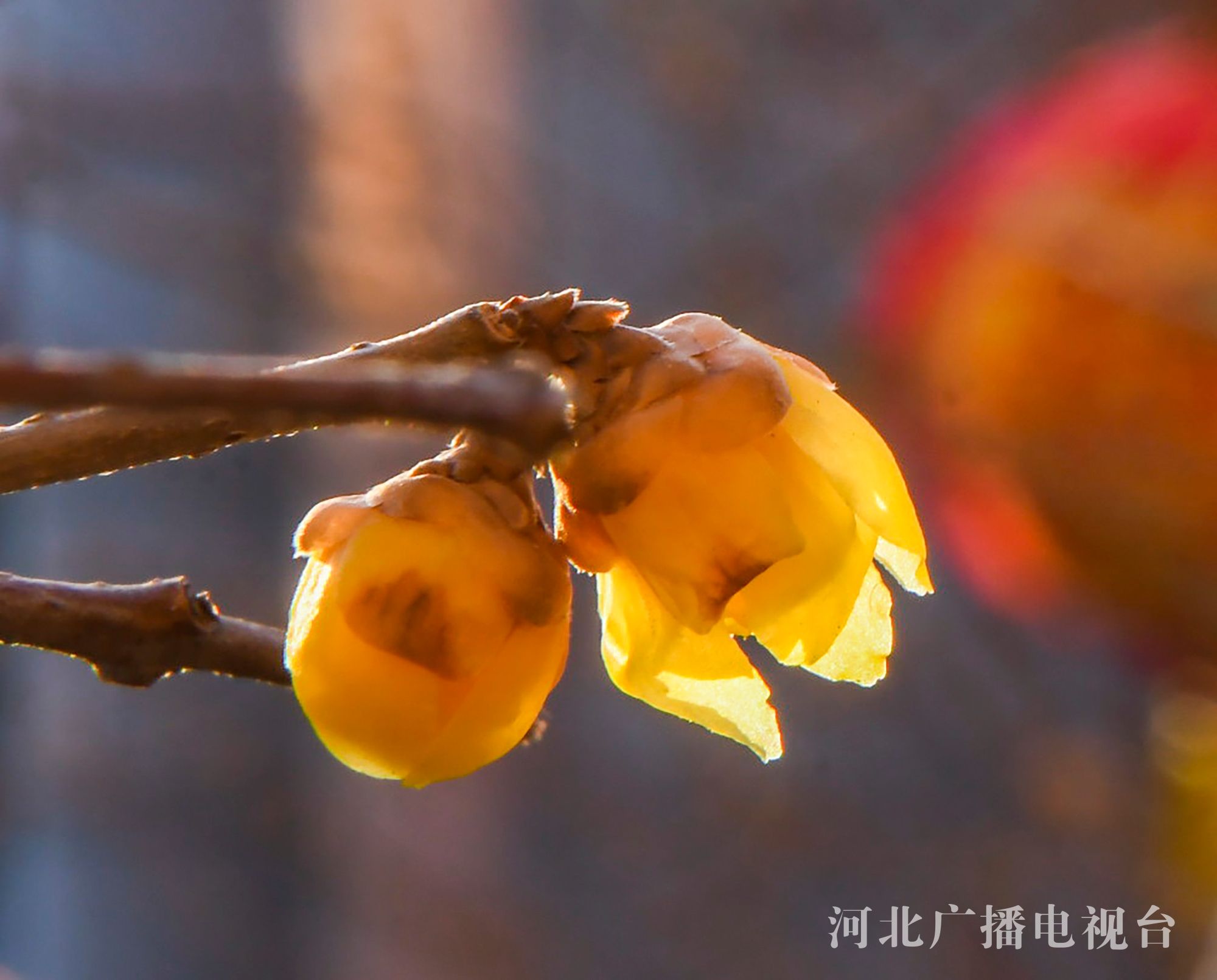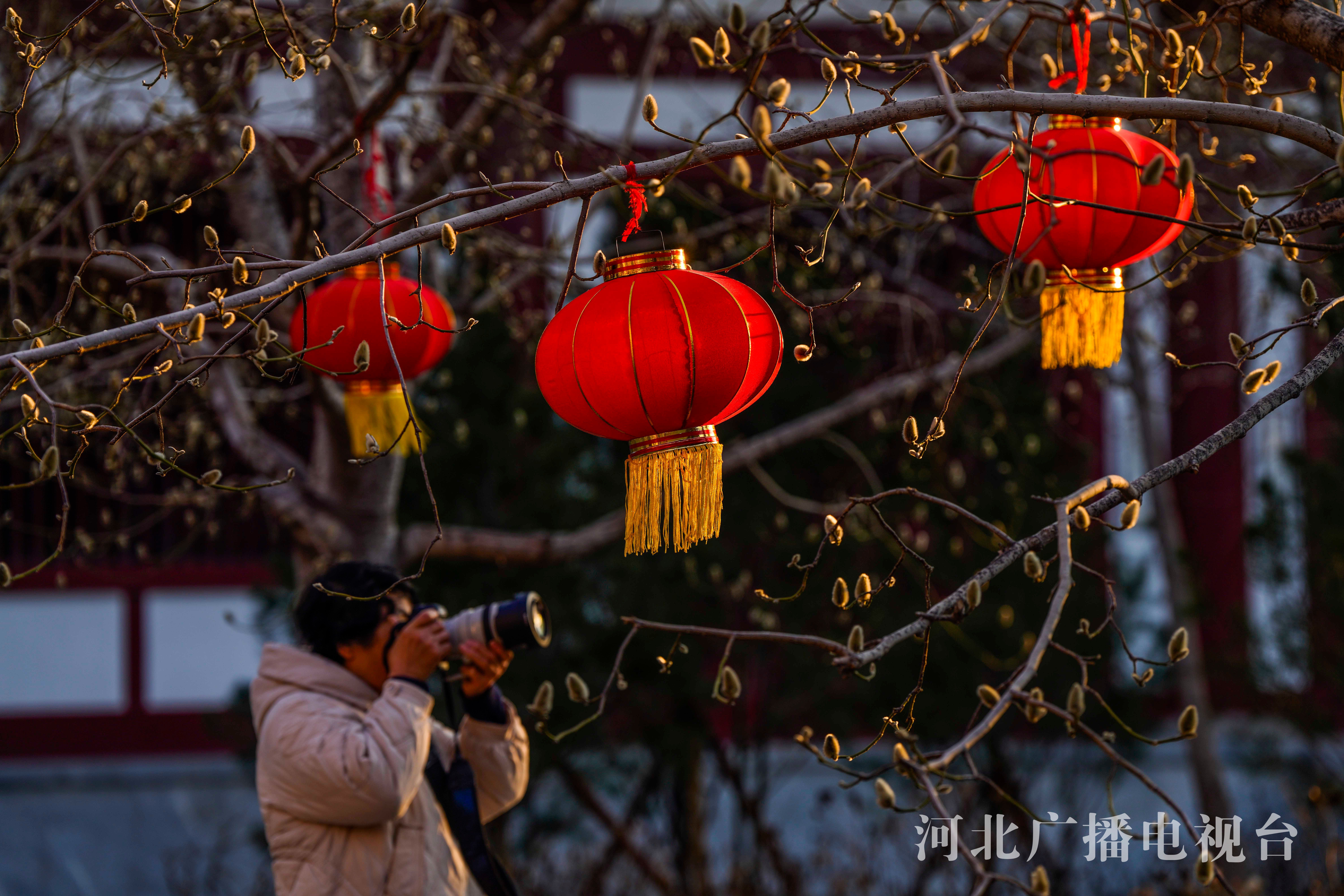 冀时客户端报道(通讯员 刘满仓)初春时节,在唐山市一处公园腊梅竞相绽放,空气中飘着淡淡的清香,夕阳将悬挂在玉兰上的红灯笼点亮,温馨惬意,形成了一道独特的城市早春风景。