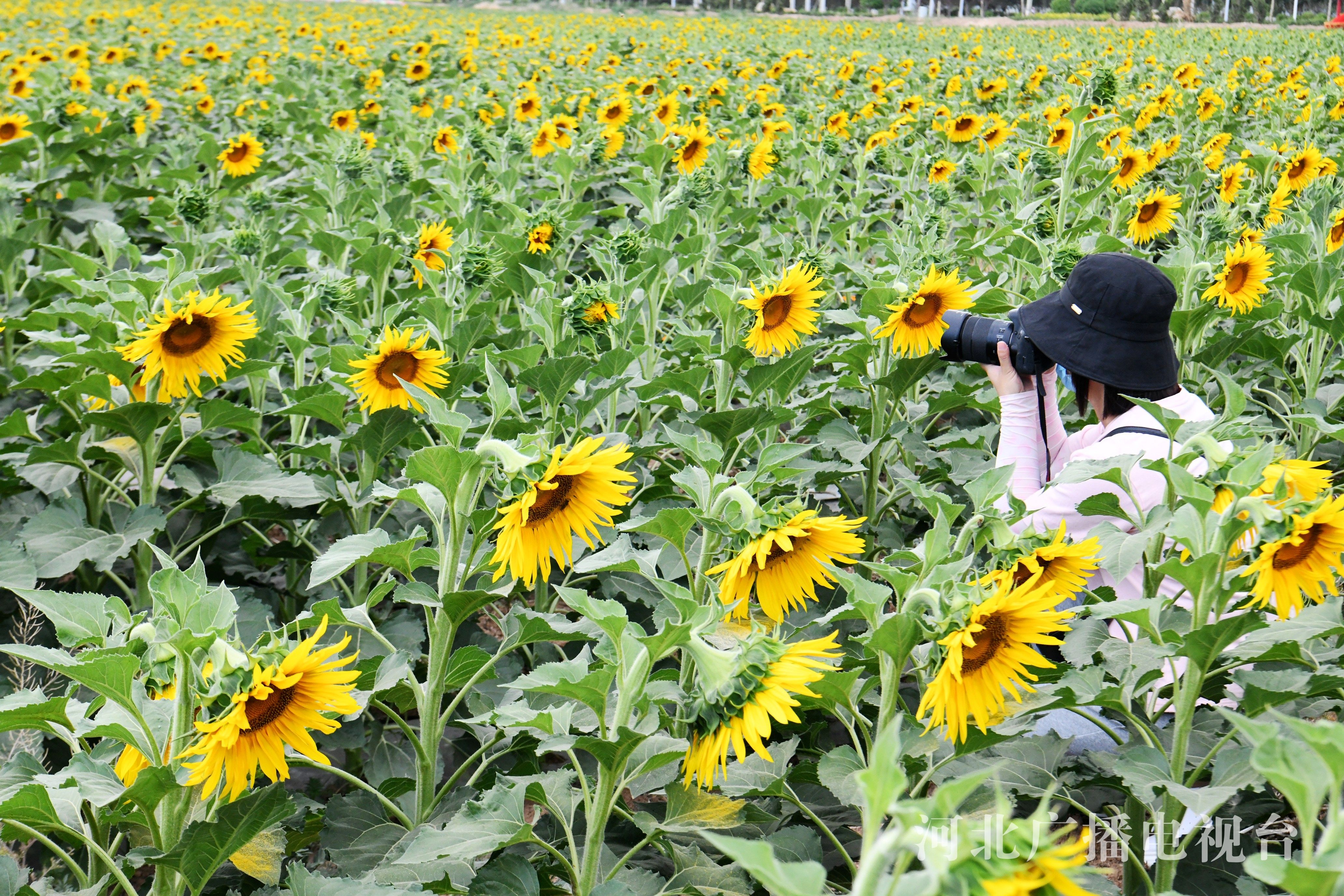 冀时客户端报道(拍客 程学虎)近日,河北省邯郸市广平县韩村油葵种植基地内油葵竞相绽放,金色花海随风起伏,与蓝天白云构成油画般景致,成为夏日热门打卡地。