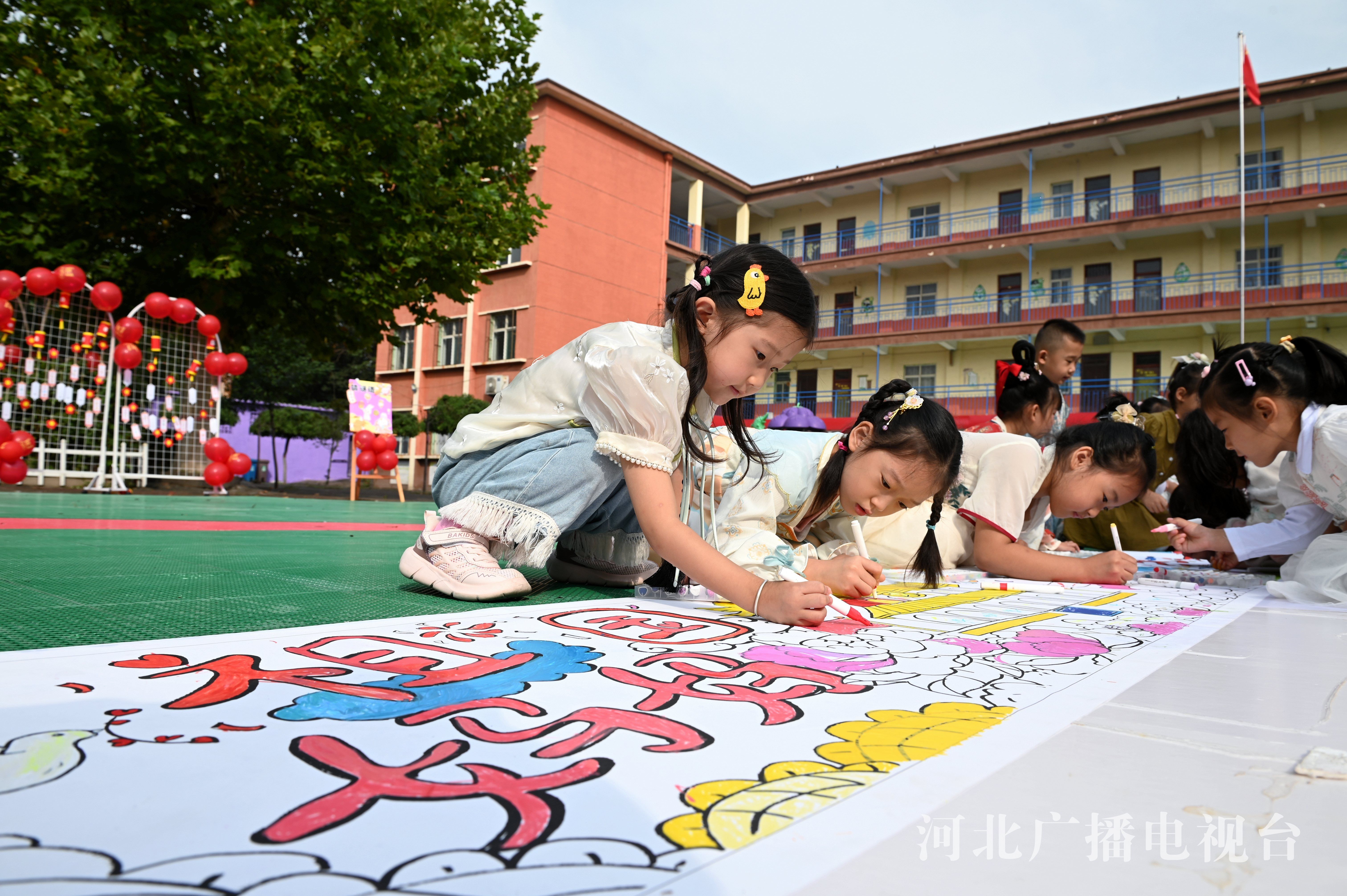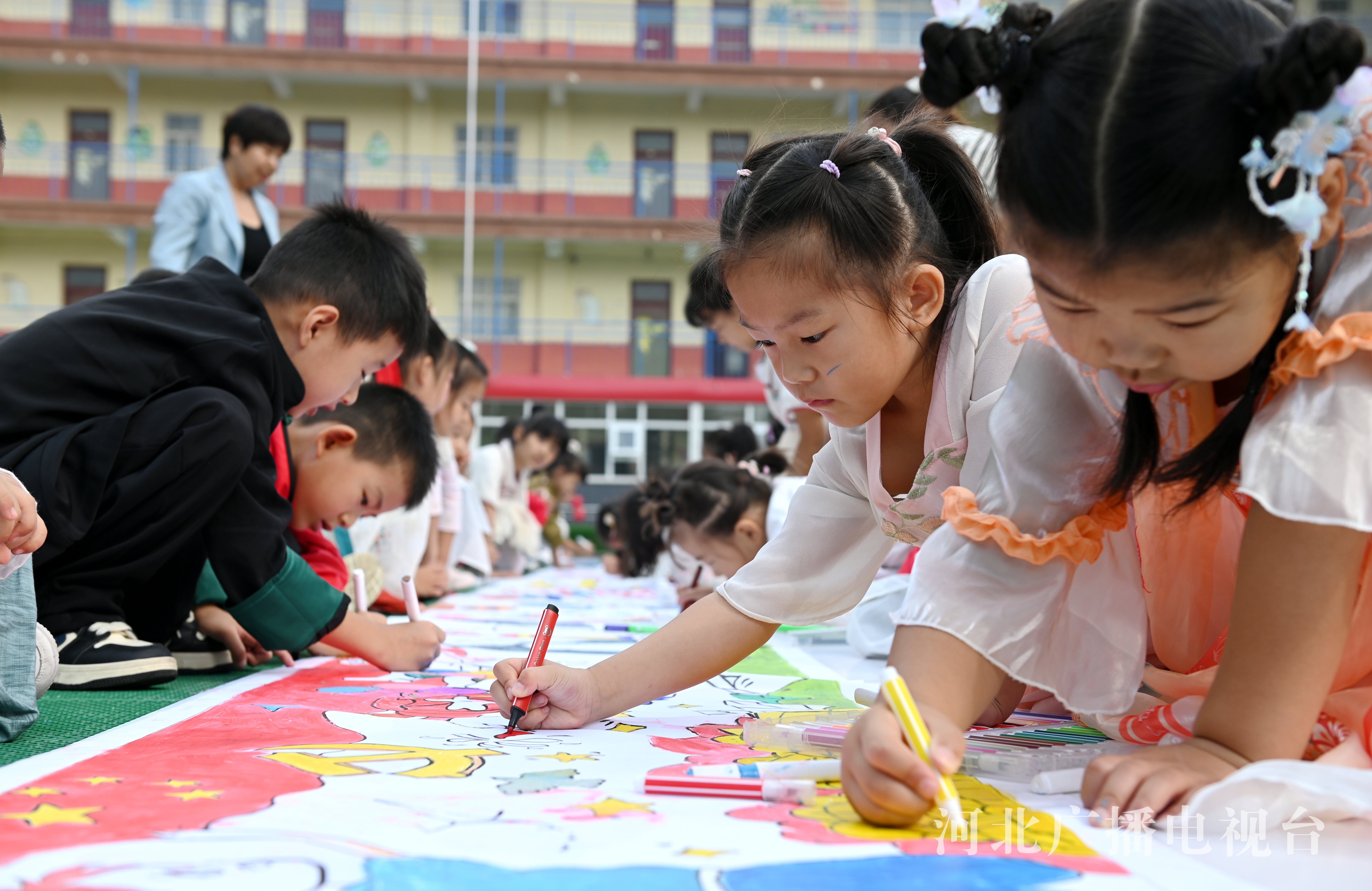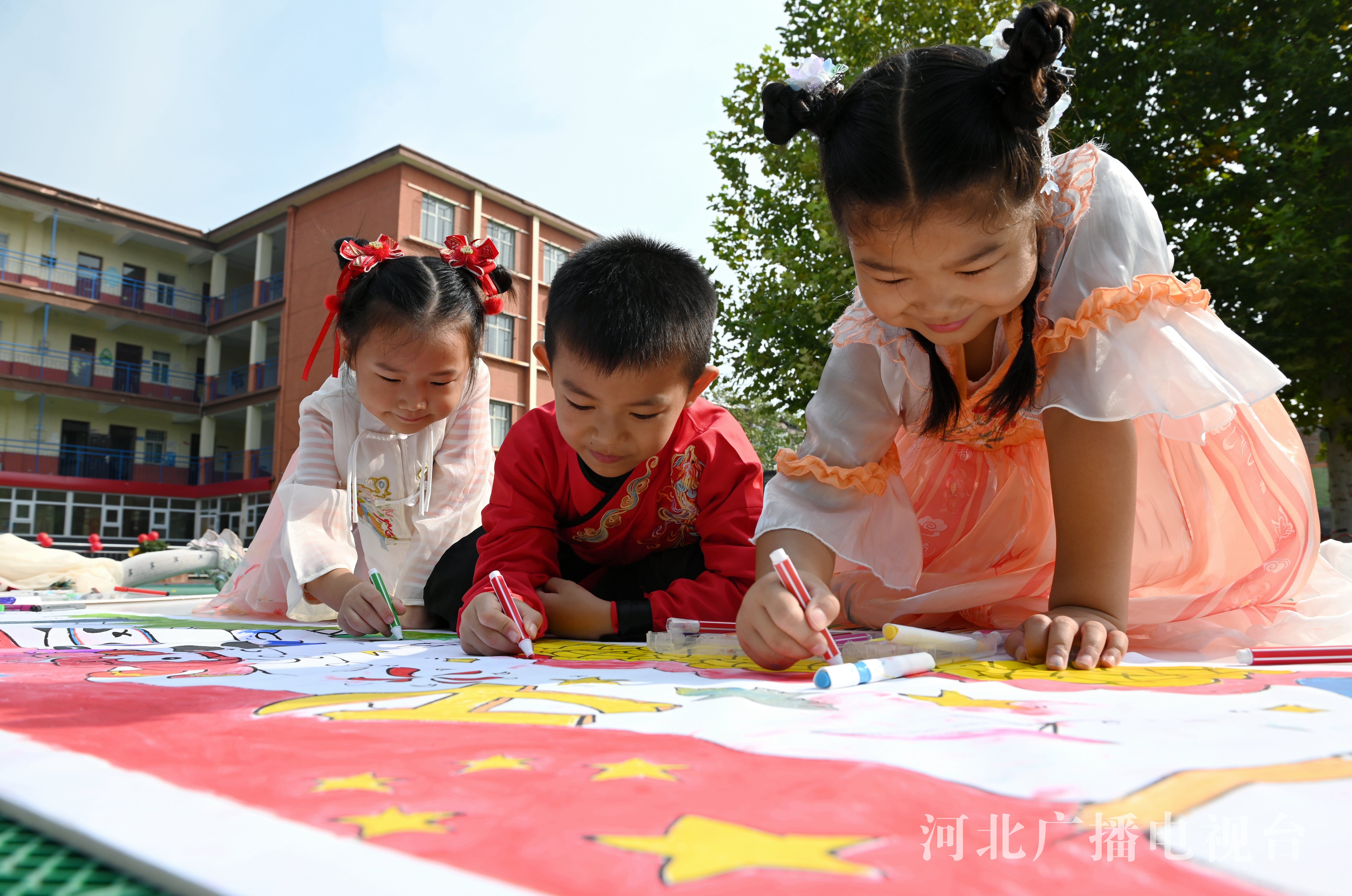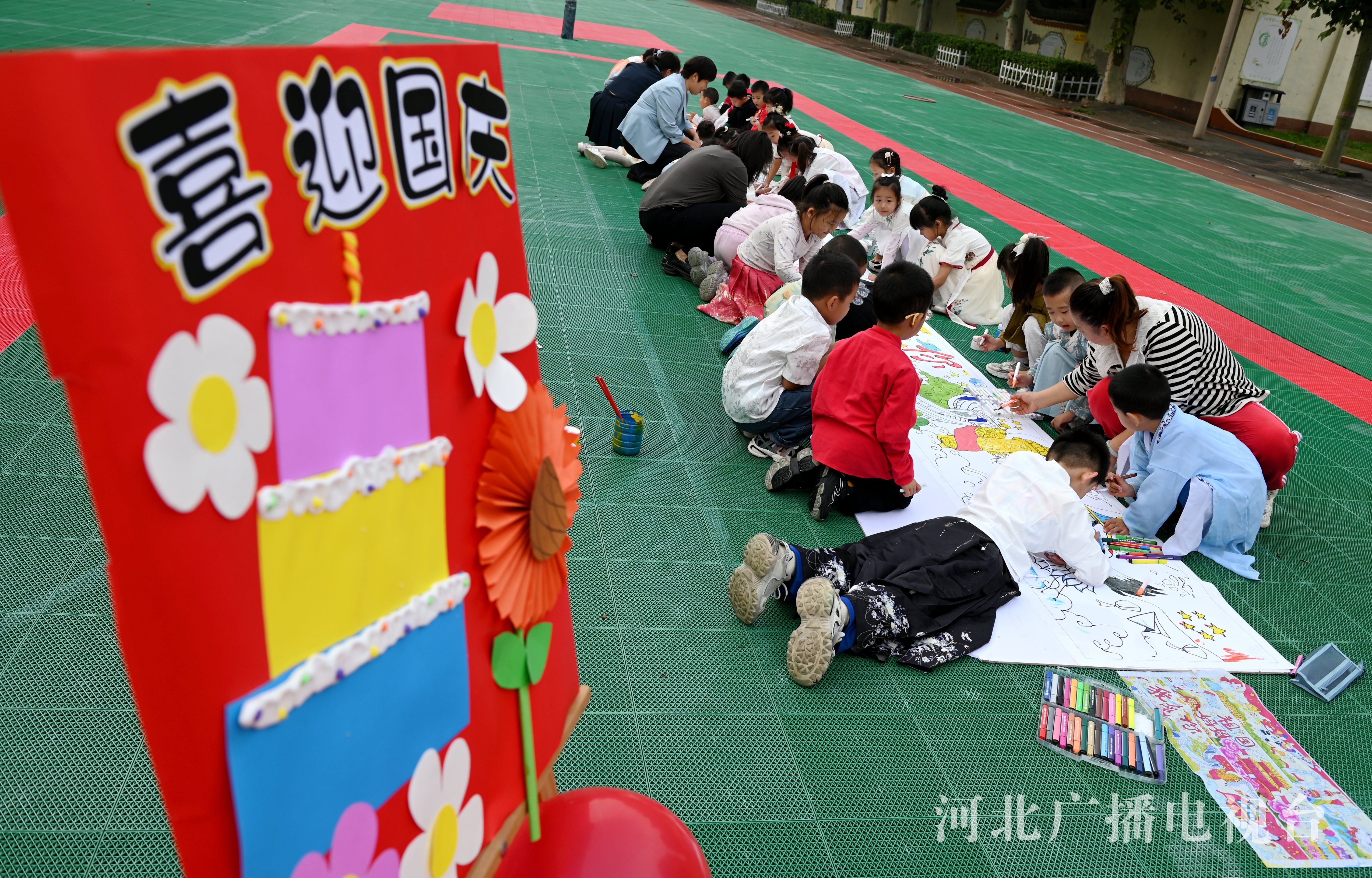 冀时客户端报道(拍客 周绍宗)今天(9月30日),邯郸市复兴区庞村小学附属幼儿园开展“小手绘长卷 童心迎国庆”主题活动,孩子们拿起手中画笔,画出心目中的伟大祖国,表达对祖国的美好祝福,迎接国庆节的到来。