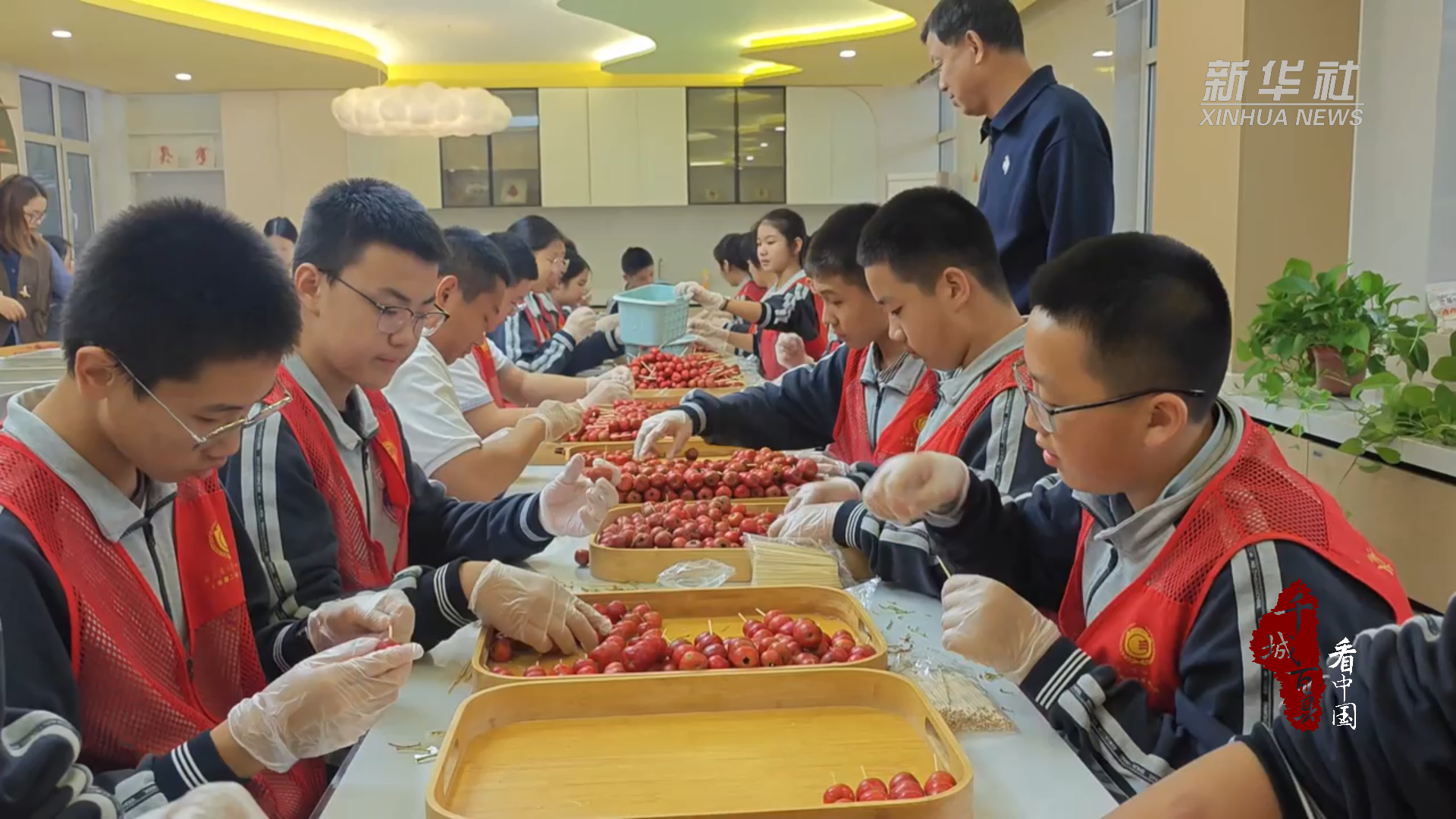 金秋时节,河北省石家庄市第四十八中学校园内,数十株山楂树硕果盈枝。学校一年一度的“冰糖葫芦文化节”如期而至,师生携手、家校同心,共同制作了4800串冰糖葫芦,分享给全校师生、后勤员工以及家长朋友们,将劳动课堂融入丰收喜悦,以传统美食传递校园温情。
