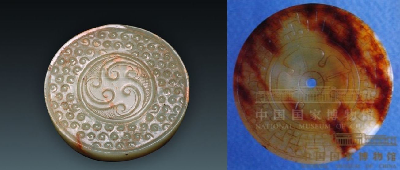 △左为战国·卷云纹玉剑首,右为战国·青玉柿蒂纹剑首,均为中国国家博物馆藏。