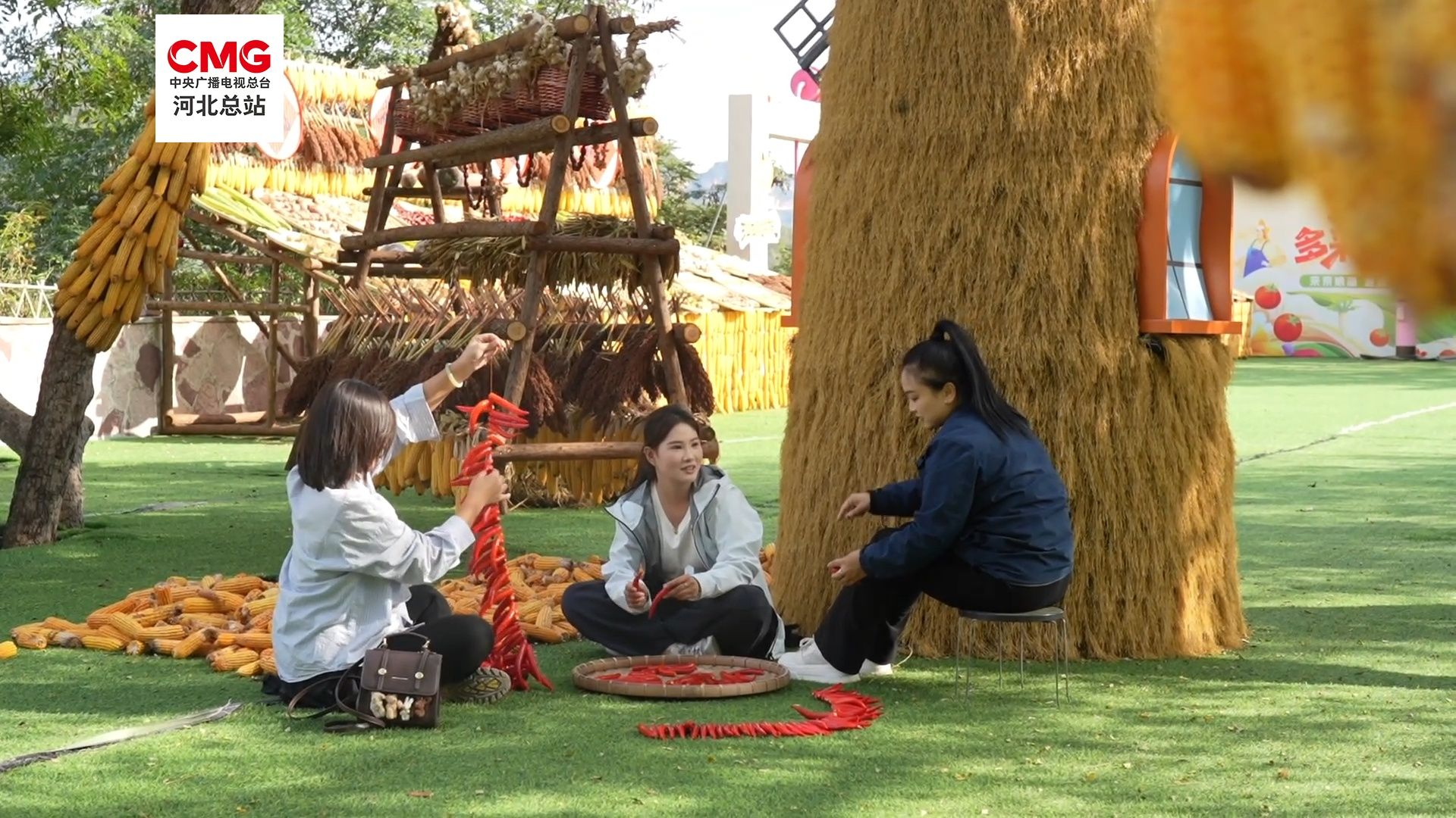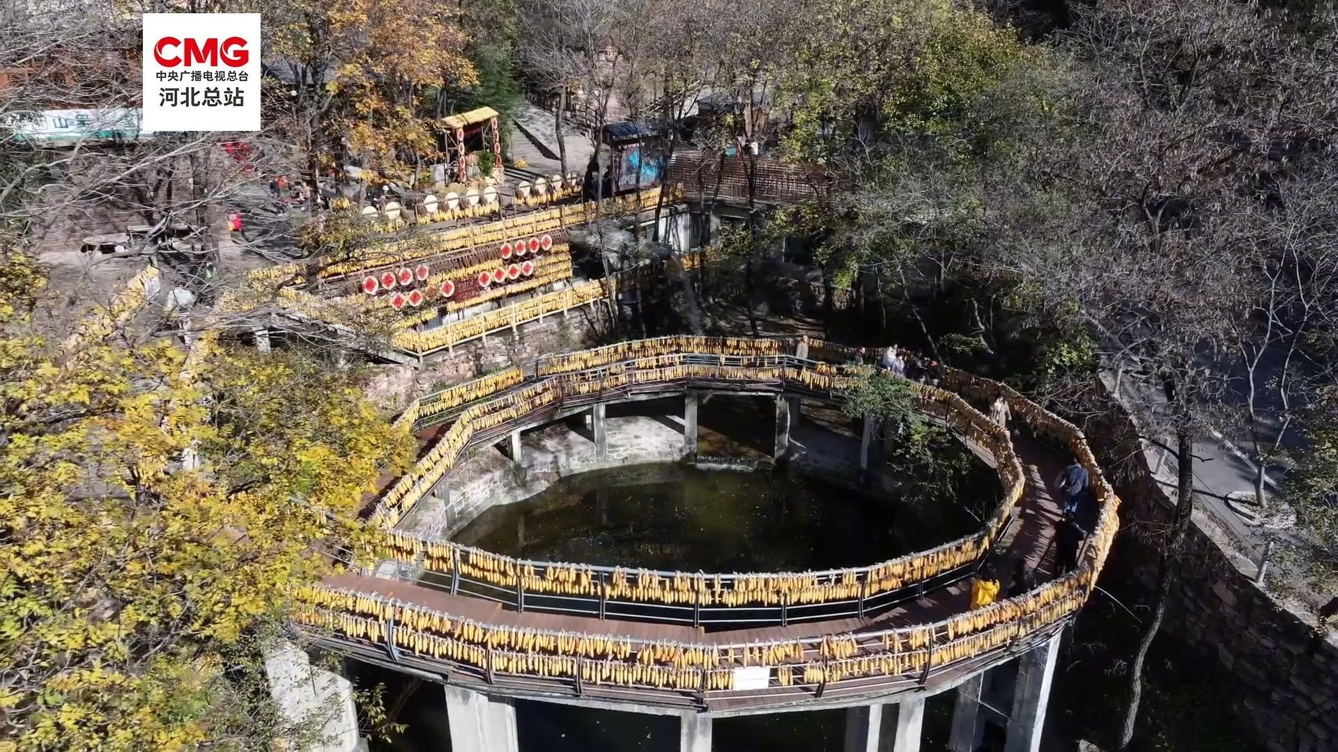 走进河北邯郸京娘湖景区,太行秋色扑面而来。山涧、屋顶、观景平台上,圆形晒匾、长竹杈等传统农具整齐排列,金黄的玉米、火红的辣椒、橙黄的南瓜构成一幅绚丽多彩的“大地调色盘”。孩子们在家长指导下认识农作物,亲手体验玉米脱粒;游客们或驻足拍照,或参与晾晒,在欢声笑语中感受“春华秋实”的丰收喜悦。