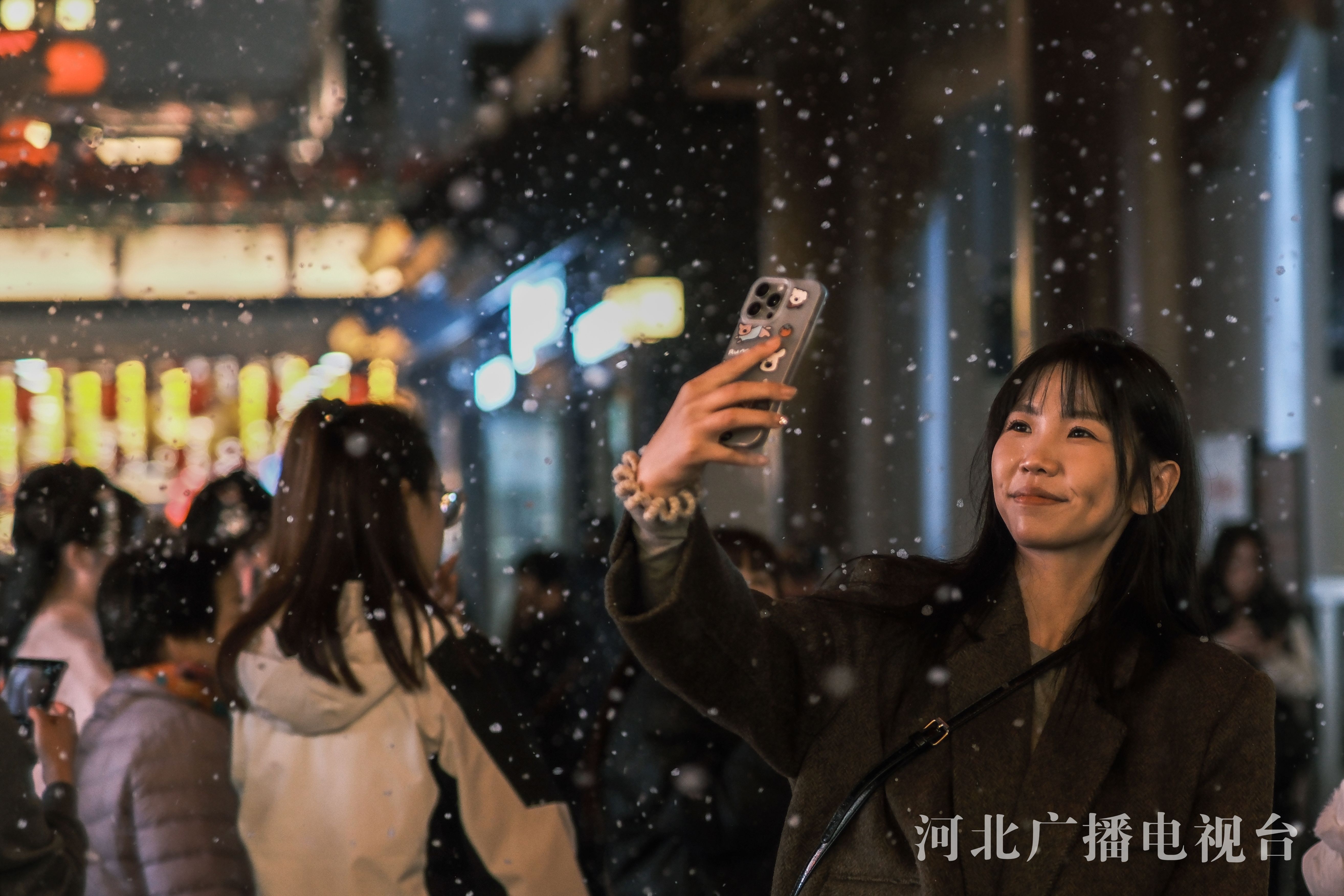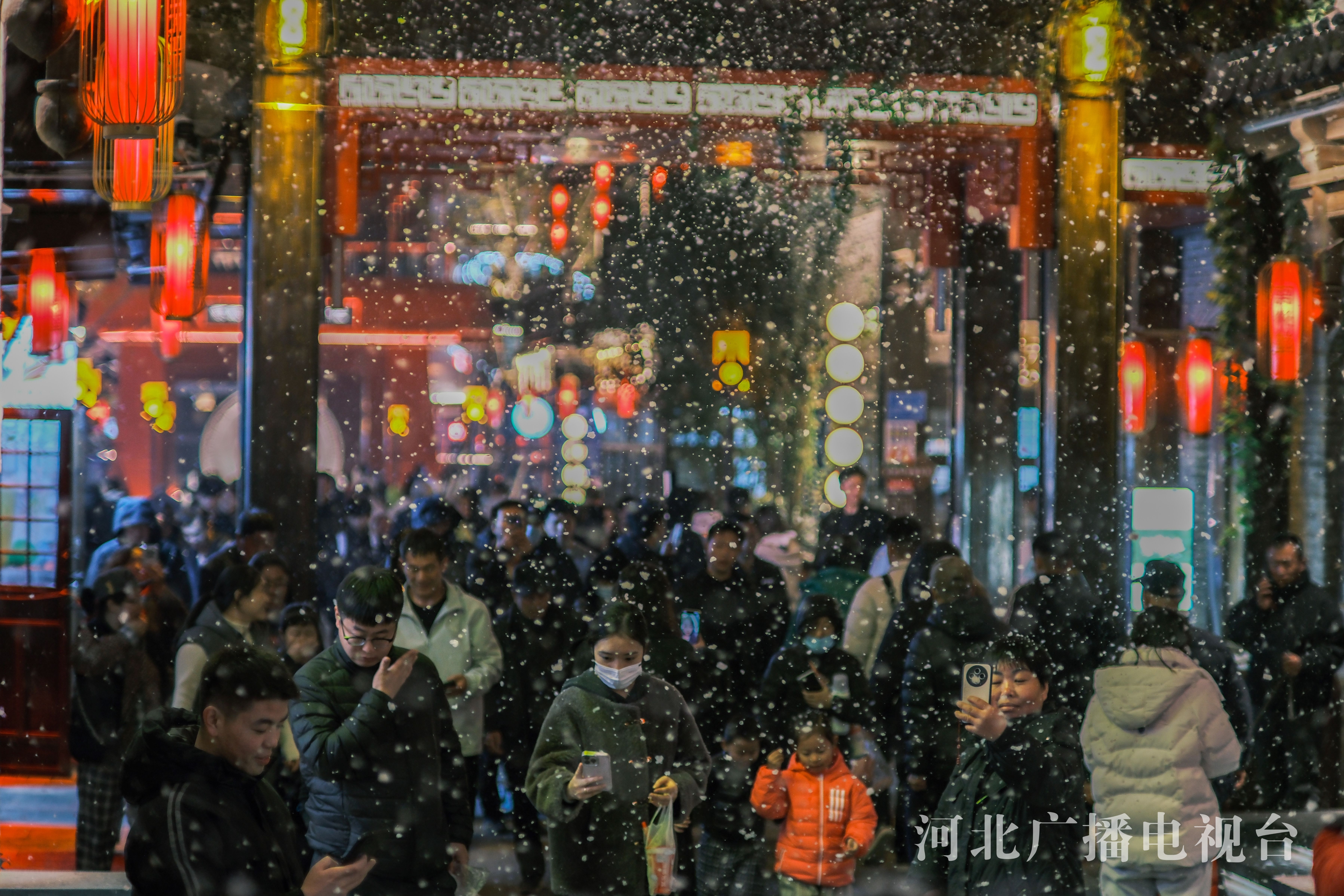 冀时客户端报道 (拍客 范文平)邯郸道的冬日因人造雪景观焕发别样生机,成为市民争相打卡的热门地。这里的造雪景观融合历史韵味与浪漫氛围,雪花漫天飘洒时,与街区古朴景致相映成趣,氛围感拉满,拍照格外出片。景观自11月起定时上演,每日19:30、20:30、21:00、21:30多时段飘雪,覆盖南北两区核心区域。无需门票即可沉浸式体验,大人孩童嬉戏玩雪,身着特色服饰的游客定格美好瞬间,让暖冬时节也能尽享银装素裹的乐趣,为邯郸的冬日文旅增添了鲜活亮点。