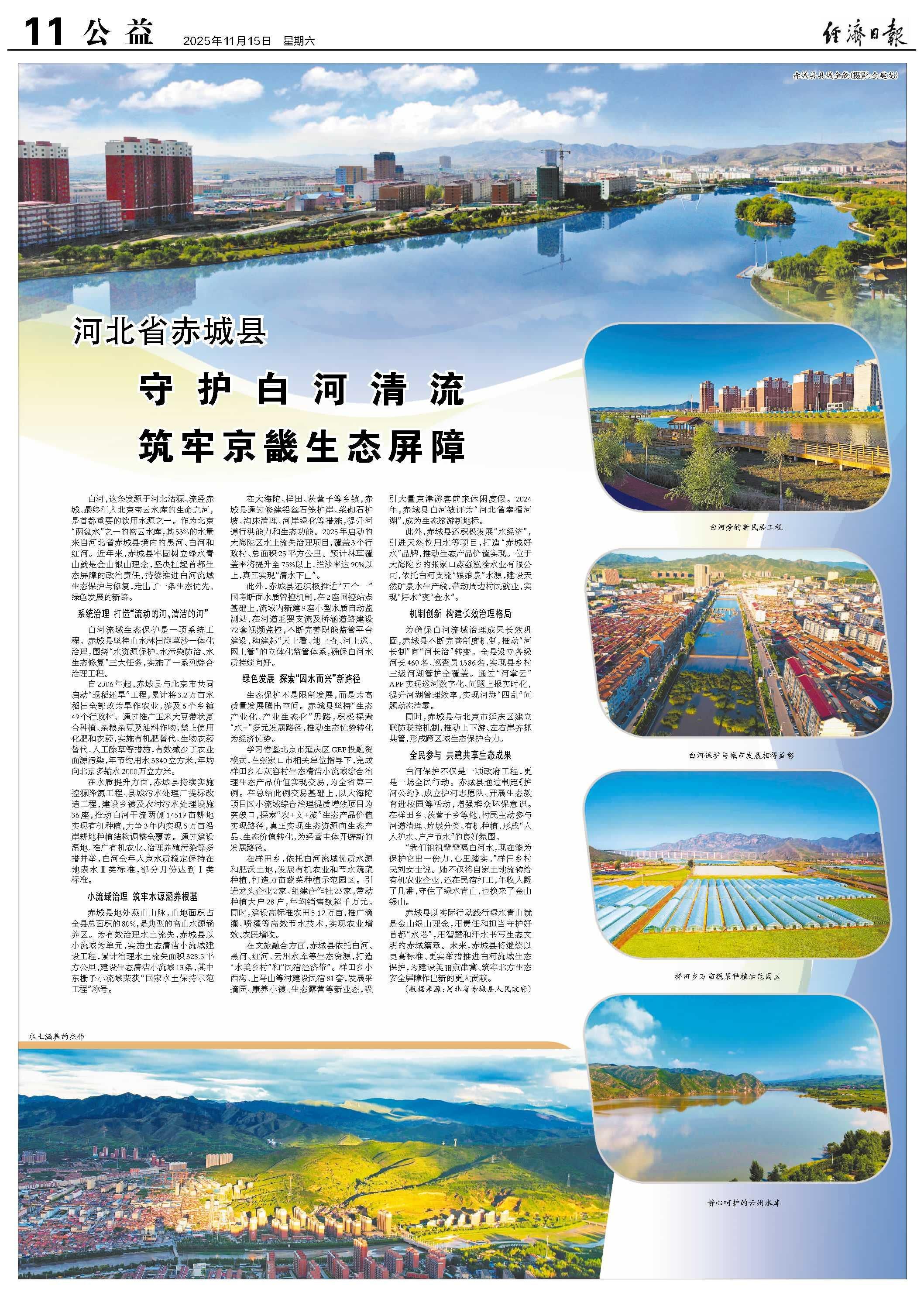 白河,这条发源于河北沽源、流经赤城、最终汇入北京密云水库的生命之河,是首都重要的饮用水源之一。作为北京“两盆水”之一的密云水库,其53%的水量来自河北省赤城县境内的黑河、白河和红河。近年来,赤城县牢固树立绿水青山就是金山银山理念,坚决扛起首都生态屏障的政治责任,持续推进白河流域生态保护与修复,走出了一条生态优先、绿色发展的新路。