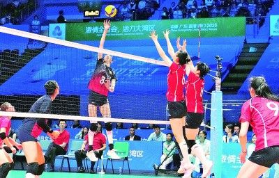 11月14日,在十五运会排球女子成年组小组赛中,江苏队以小组第一的成绩晋级。 本报记者 朱晓帆摄/光明图片