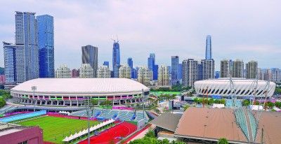 图为深圳市体育中心体育场、体育馆。全运会羽毛球、射箭、足球(男子20岁以下组)三个项目在这里举行。本报记者 陈城摄/光明图片
