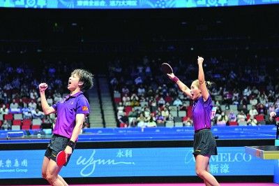 11月14日,广东队林高远/刘诗雯4比2战胜江苏队陈垣宇/蒯曼,夺得乒乓球成年组的首枚金牌。 本报记者 朱晓帆摄/光明图片