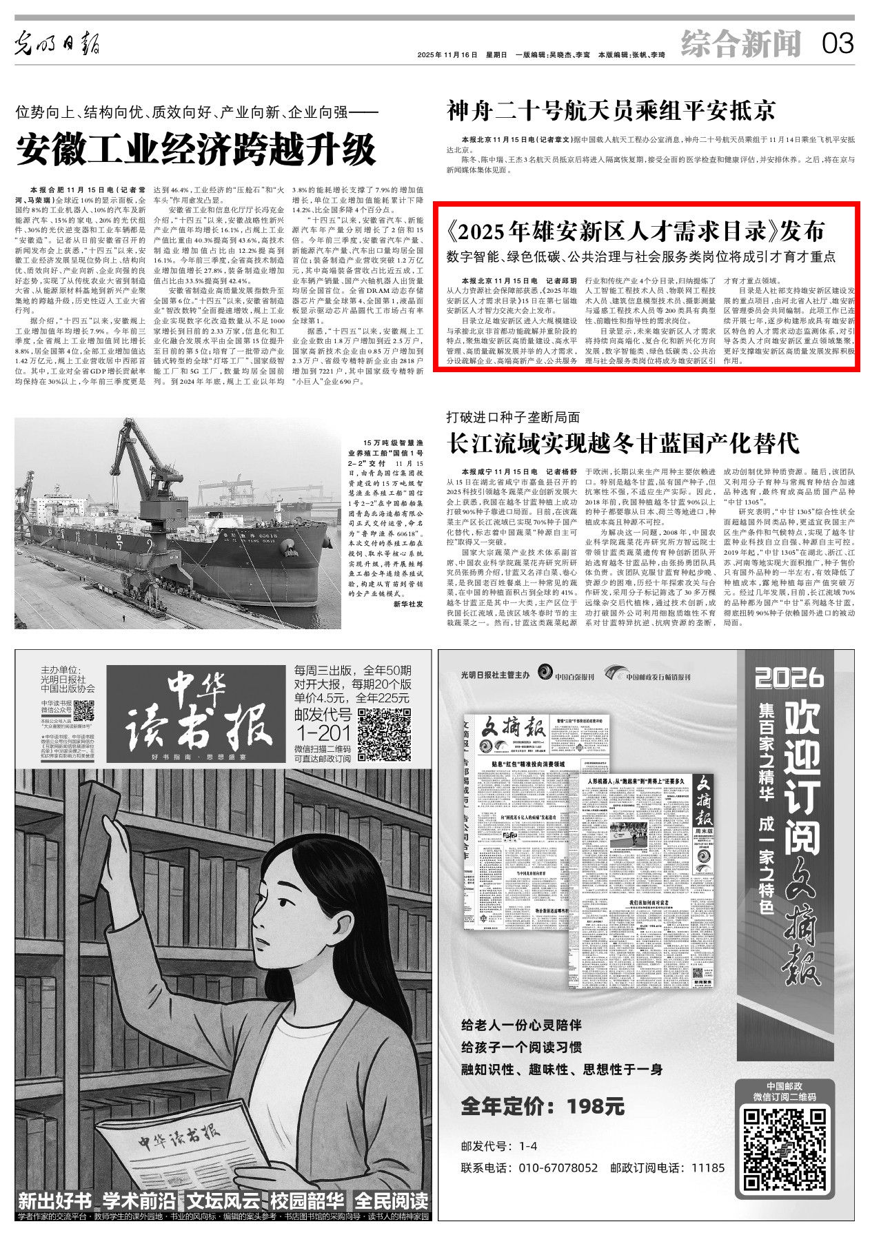 光明日报北京11月15日电 记者邱玥从人力资源社会保障部获悉,《2025年雄安新区人才需求目录》15日在第七届雄安新区人才智力交流大会上发布。