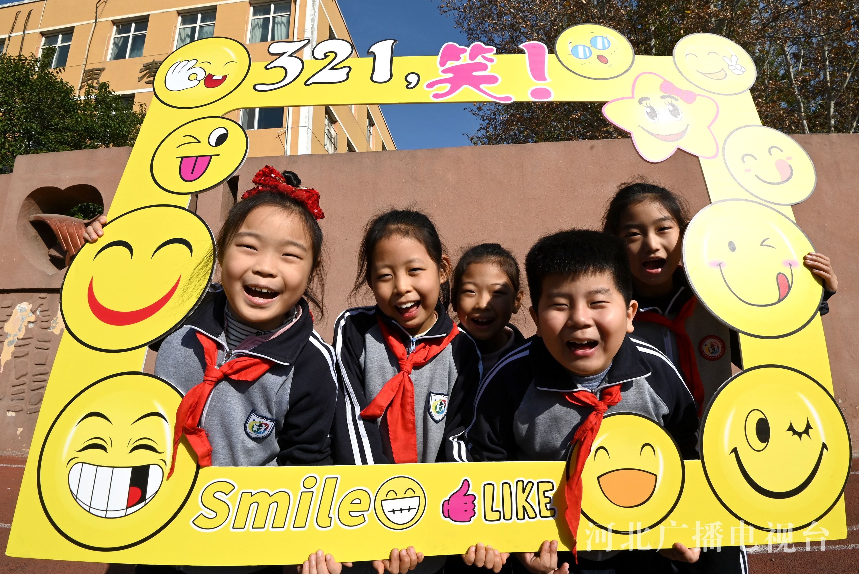 图06—08:11月20日,河北省邯郸市复兴区铁路小学的学生们展示笑脸卡。