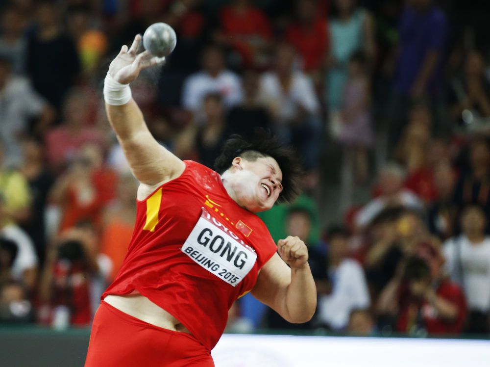 2015年8月22日,巩立姣在国际田联田径世锦赛女子铅球决赛中。