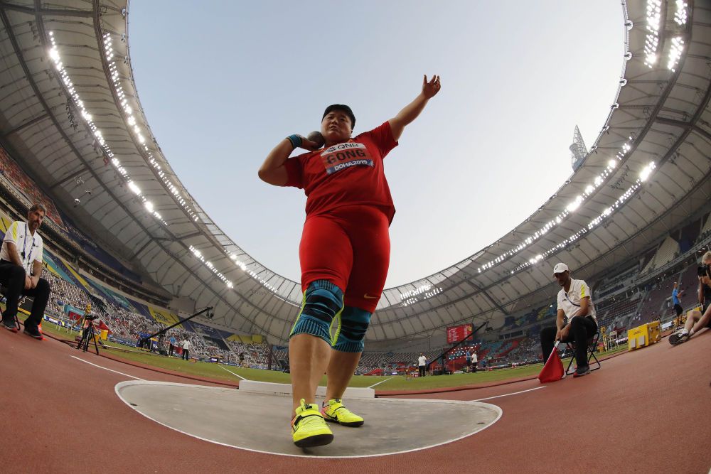 2019年10月2日,巩立姣在国际田联世界田径锦标赛女子铅球资格赛中。