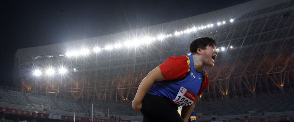 2009年10月21日,巩立姣在第十一届全国运动会田径项目女子铅球决赛中。