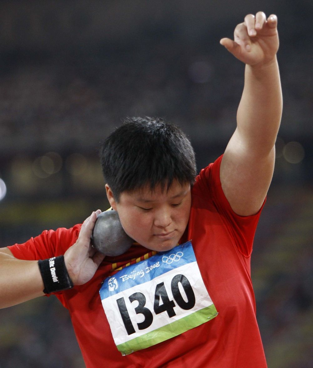 2008年8月16日,巩立姣在北京奥运会田径女子铅球决赛中。