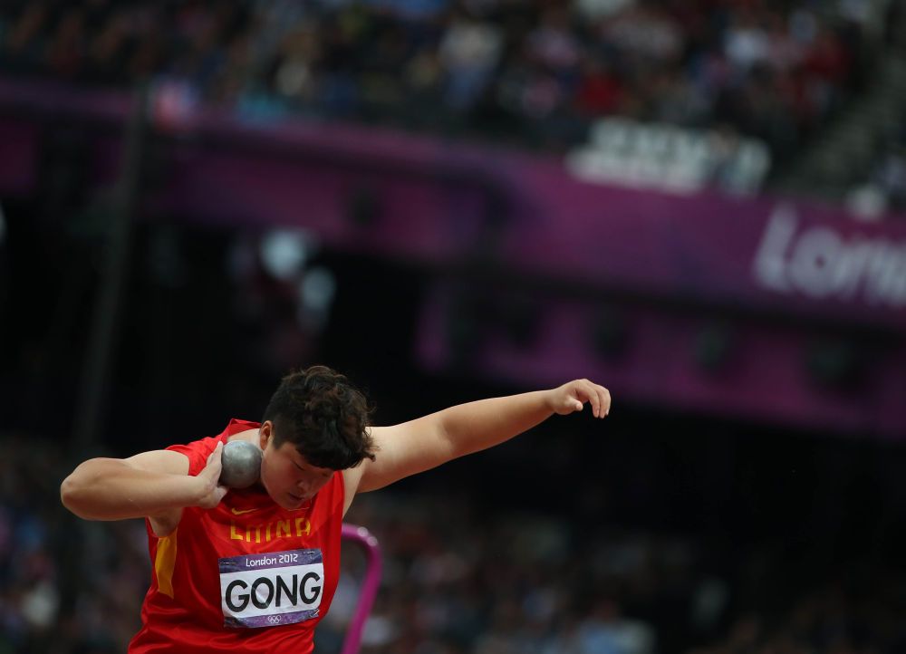 2012年8月6日,巩立姣在伦敦奥运会田径女子铅球决赛中。