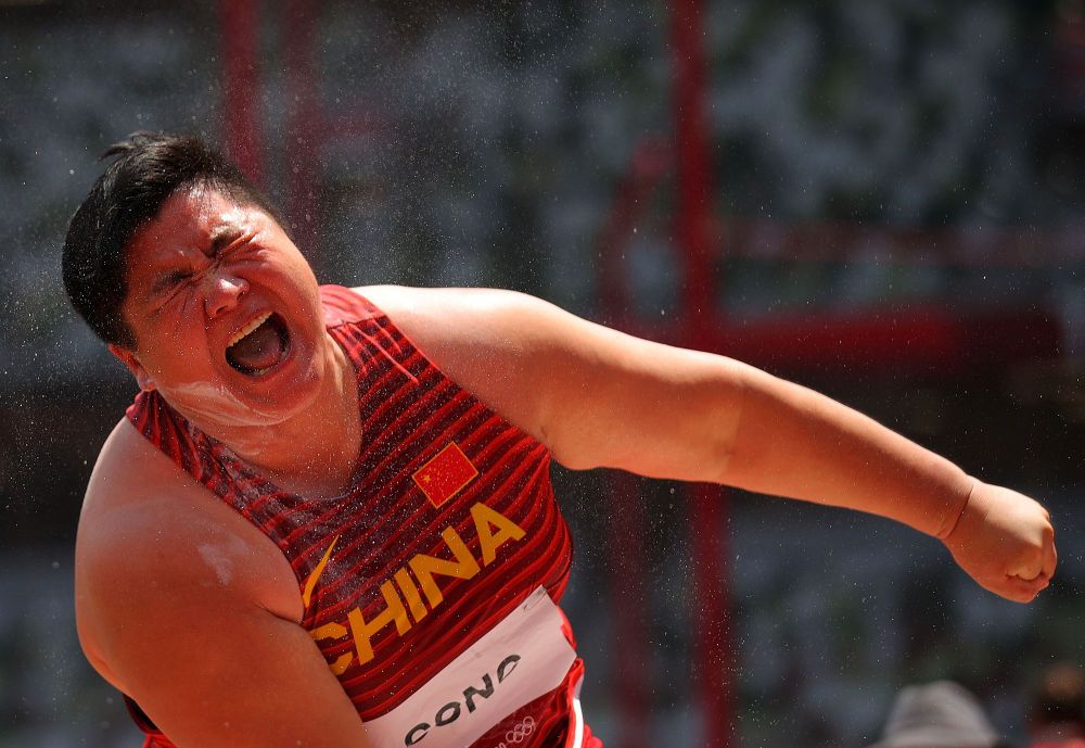 2021年8月1日,巩立姣在东京奥运会田径女子铅球决赛中。