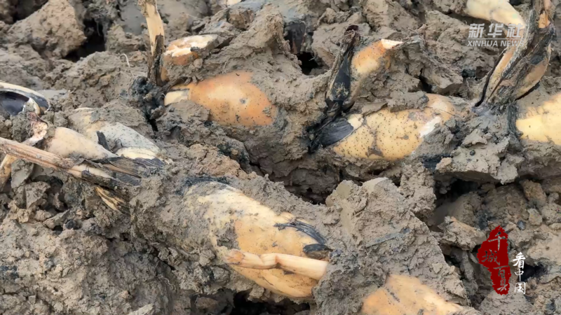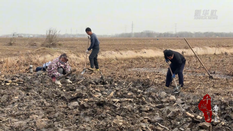 近日,河北省邯郸市大名县金滩镇上马头村的藕塘迎来丰收季,为抢占市场先机,藕农们抓紧时间采挖莲藕,“抢鲜”上市。此次丰收的莲藕种植规模达530亩,亩均产量超4000斤。