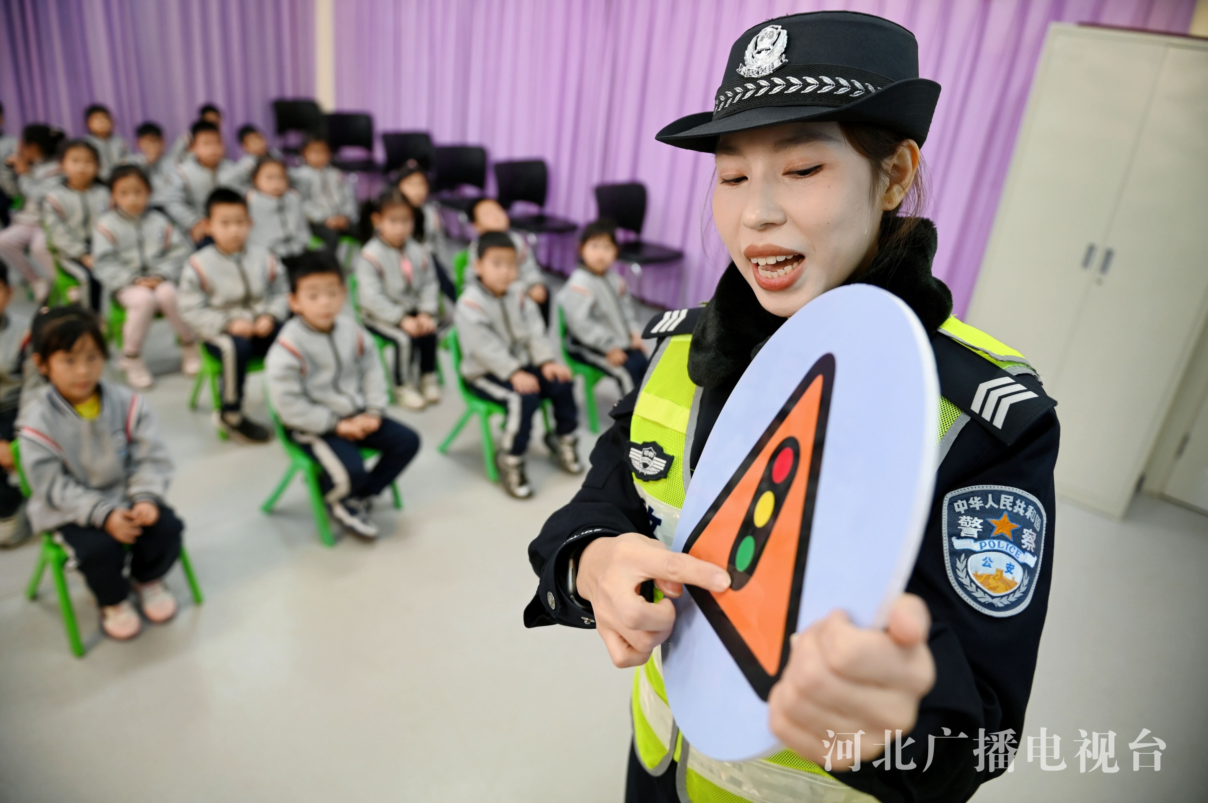 冀时客户端报道(拍客 周绍宗)今天(12月2日)是全国交通安全日,邯郸市交巡警支队复兴三大队民警走进复兴区第一幼儿园,开展“交通安全进校园”宣传教育活动。通过向小朋友们普及交通安全知识、辨识交通标志、示范交通指挥手势等方式,让孩子们从小树立交通安全观念,养成良好的出行习惯。