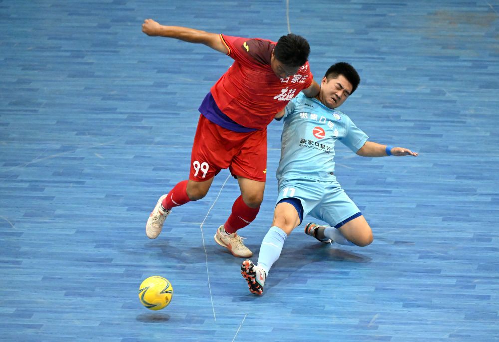 8月10日,石家庄队球员张汉生(右二)在2025年河北省五人制足球超级联赛比赛中进攻。新华社发(闫志国摄)