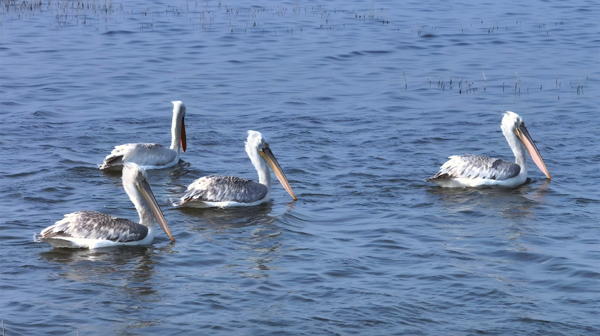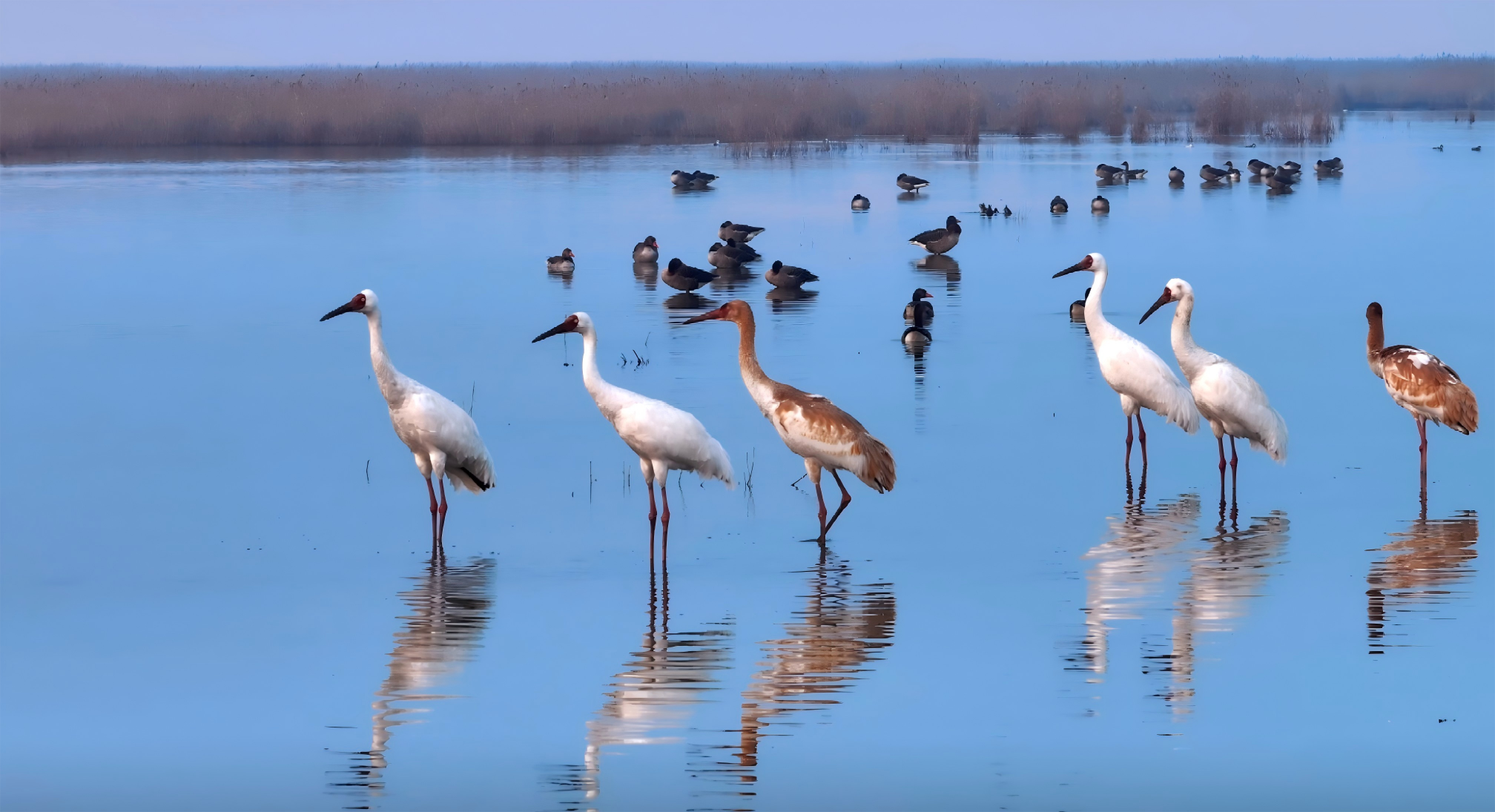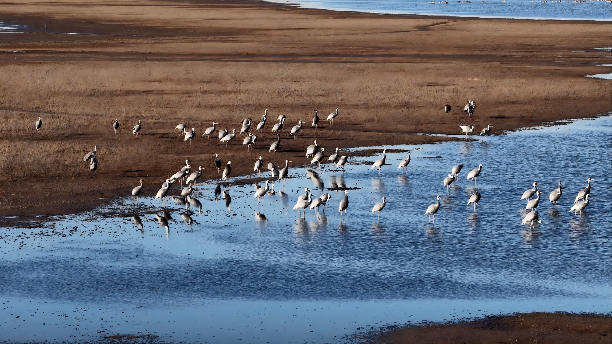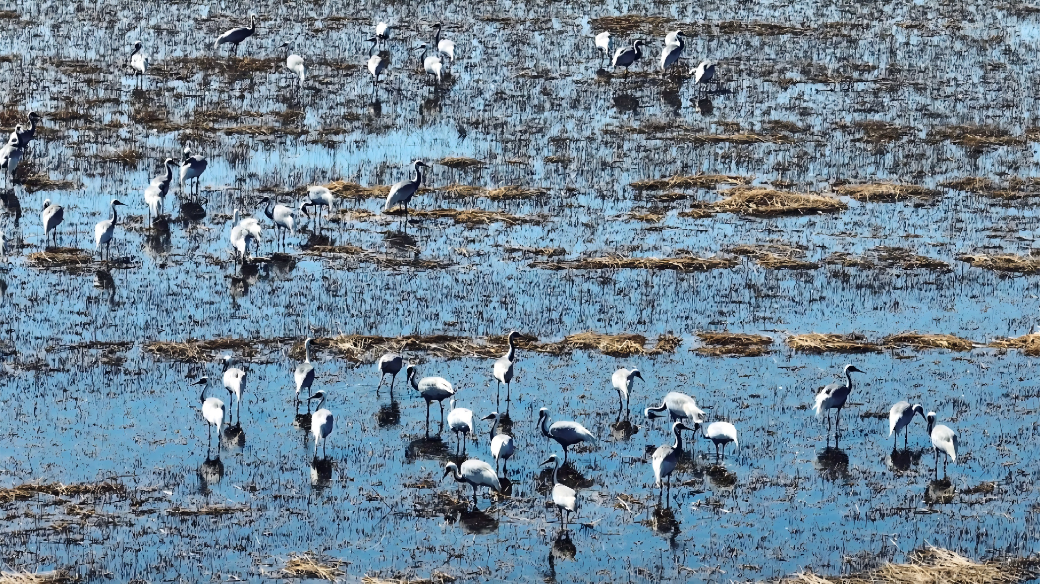 南大港湿地作为“东亚——澳大利西亚”候鸟迁徙路线上的关键“中转站”和“能量补给站”,近年来通过持续生态补水和生境修复,生态系统日益健康。“湿地鸟的品种和数量都在增加,除了白枕鹤,今年还拍到了白鹤、丹顶鹤、卷羽鹈鹕,这都是之前没有拍摄到的!”宋文峰的语气满是抑制不住的欣喜与自豪。