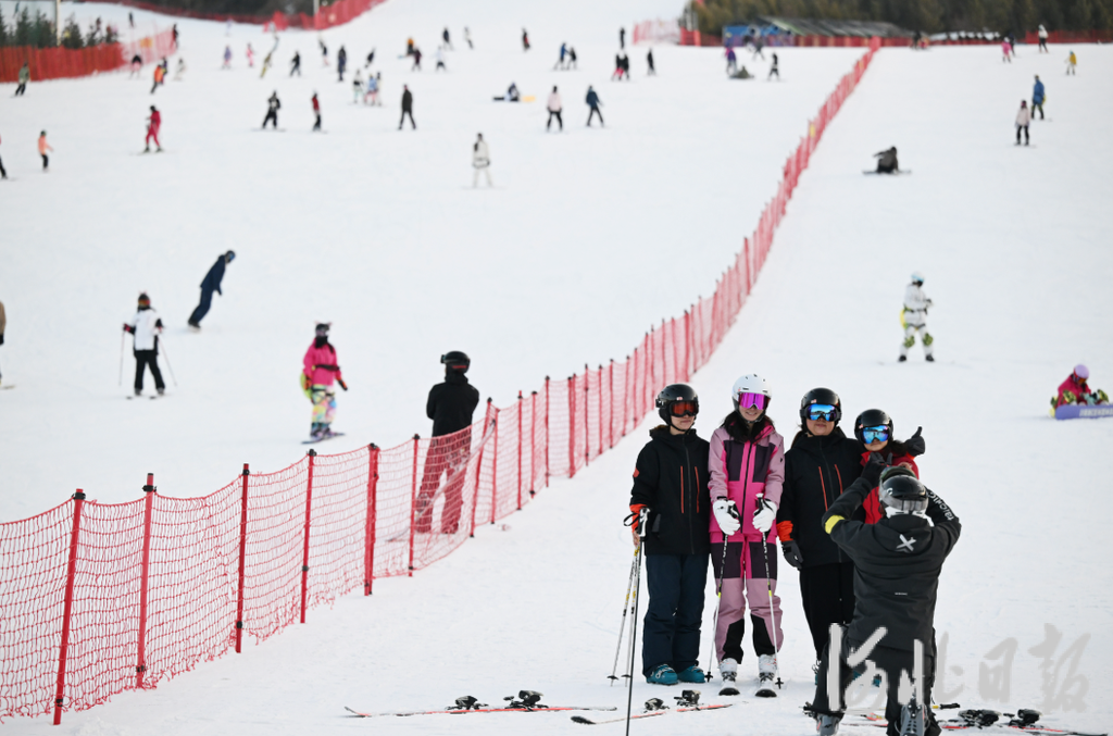 11月23日,游客在张家口市崇礼区富龙滑雪场开心合影。河北日报记者史晟全摄