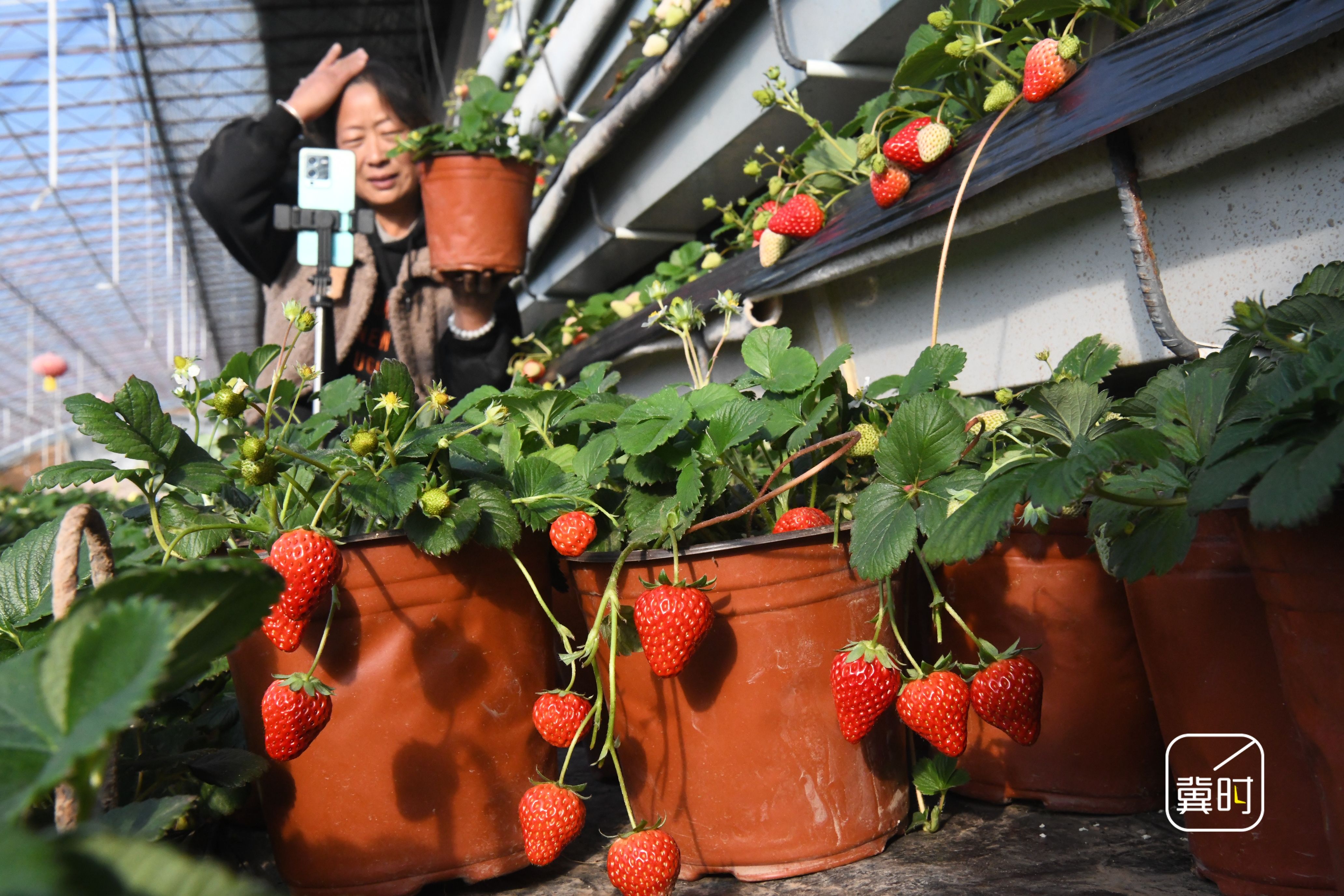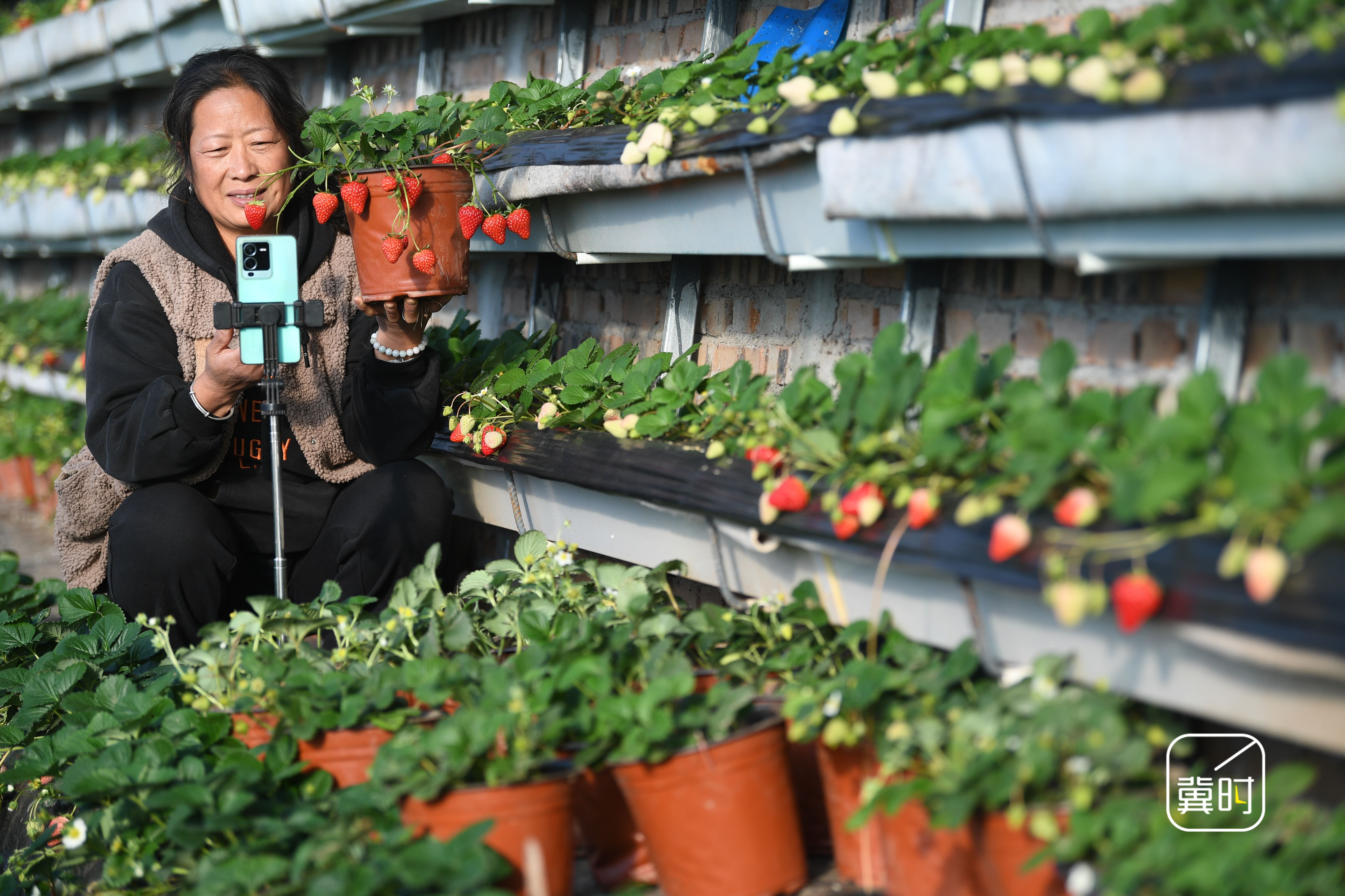 冀时新闻报道(拍客 程学虎)寒冬时节,河北省邯郸市广平县南阳堡镇草莓种植基地推出盆栽草莓种植模式,让盆栽草莓成为集观赏、采摘、食用于一体的冬日消费热点,让消费者在家就能体验种植与收获的乐趣,带动农户增收致富。