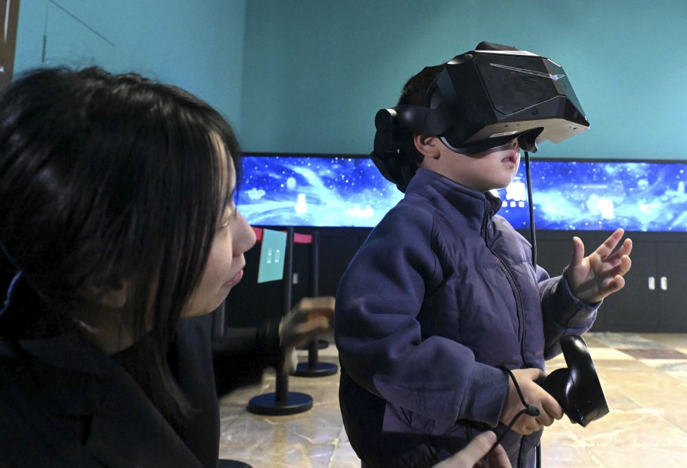 ↑1月13日,小朋友在河北博物院数字互动体验展中体验。
