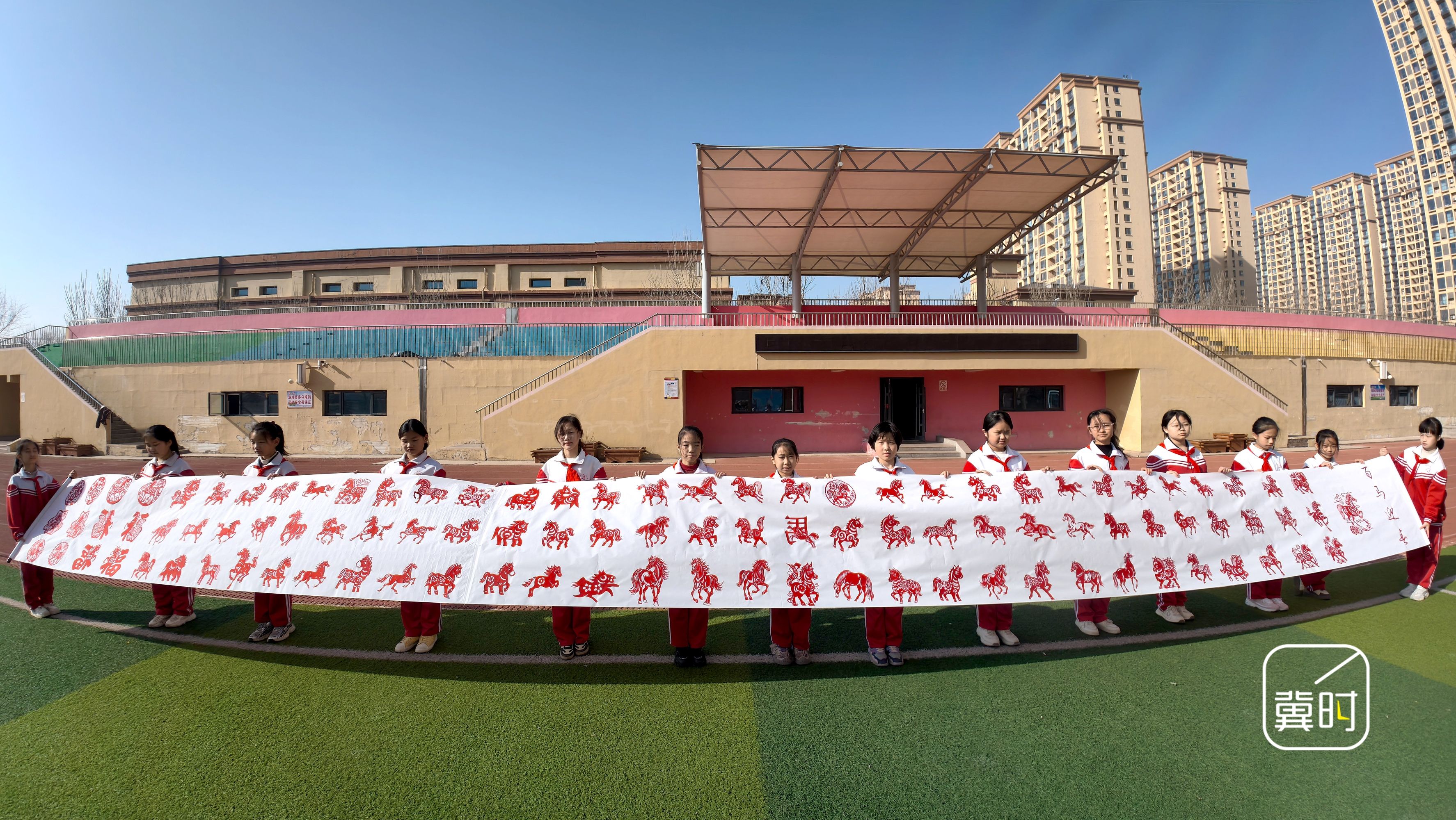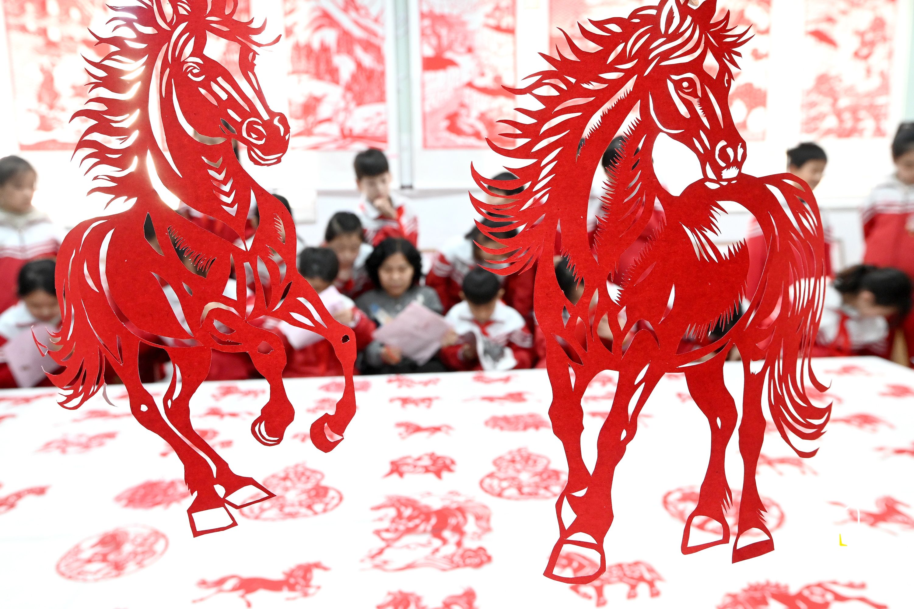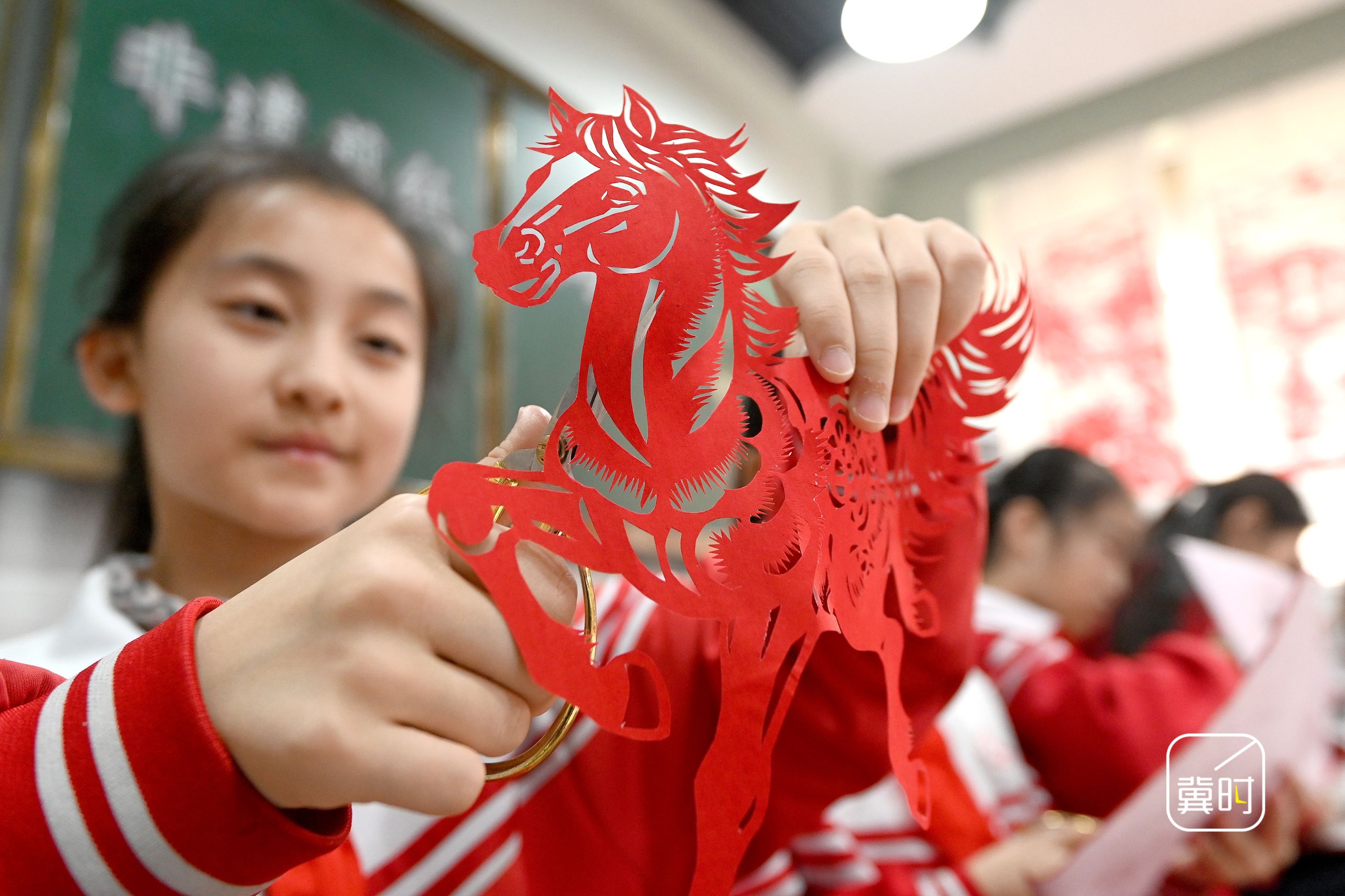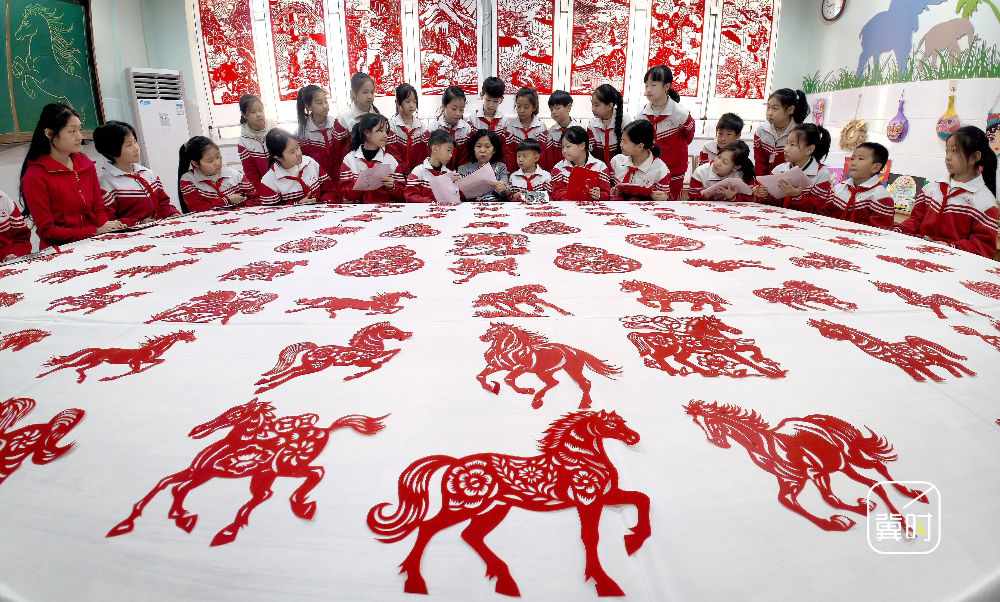 冀时新闻报道(拍客 郝群英) 1月15日,邯郸市磁县第四实验小学开展“非遗剪纸迎马年”活动,师生精心创作约100幅马年主题剪纸作品,以非遗技艺传承文化底蕴,为马年新春增添浓郁文化年味。