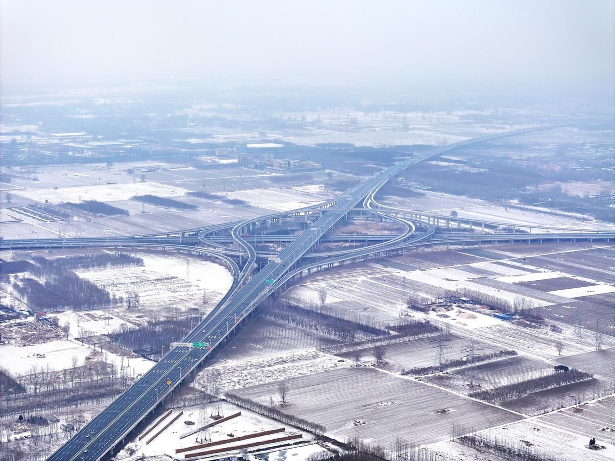 这是1月18日拍摄的京雄高速泗庄枢纽互通(无人机照片)。新华社记者 朱旭东 摄