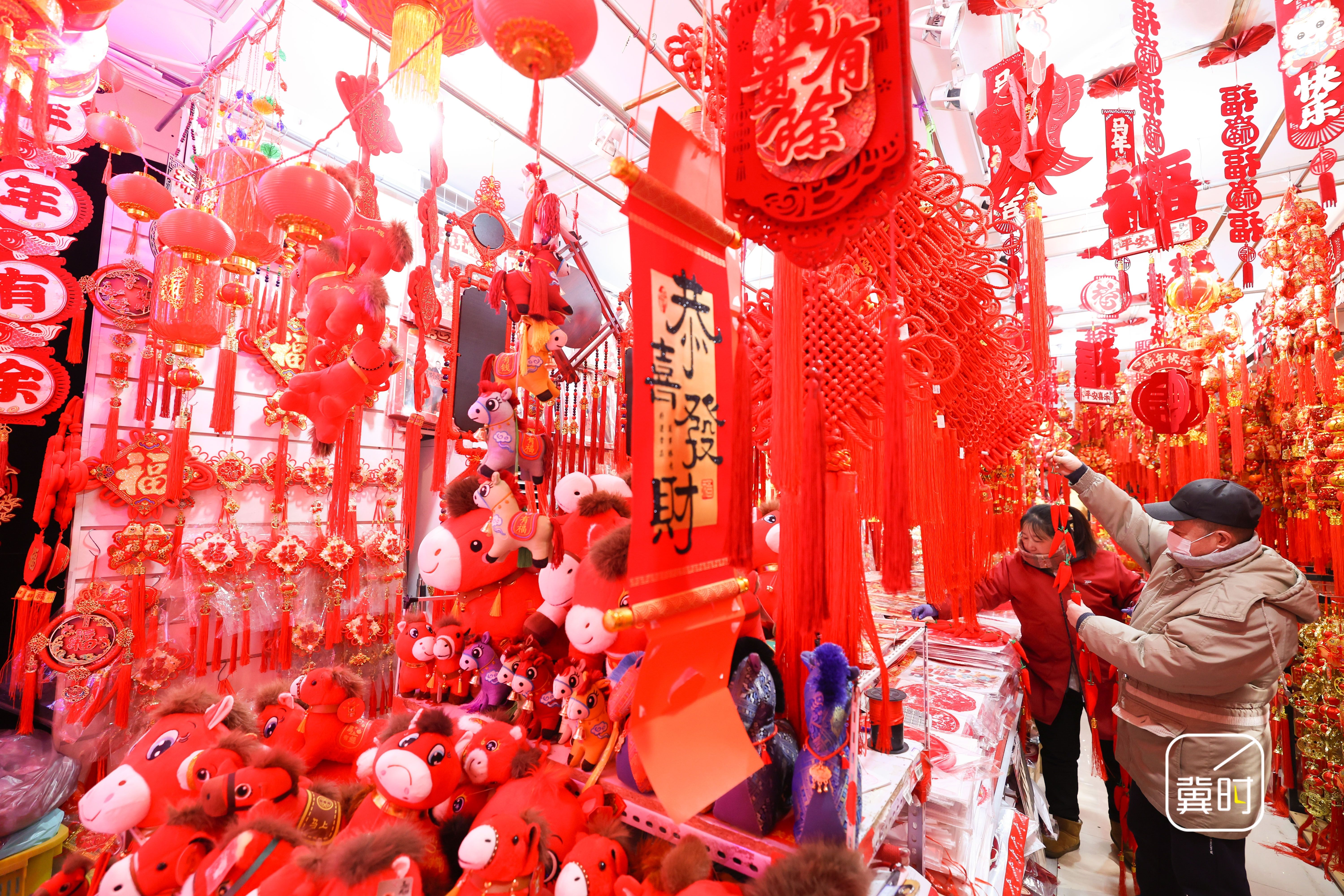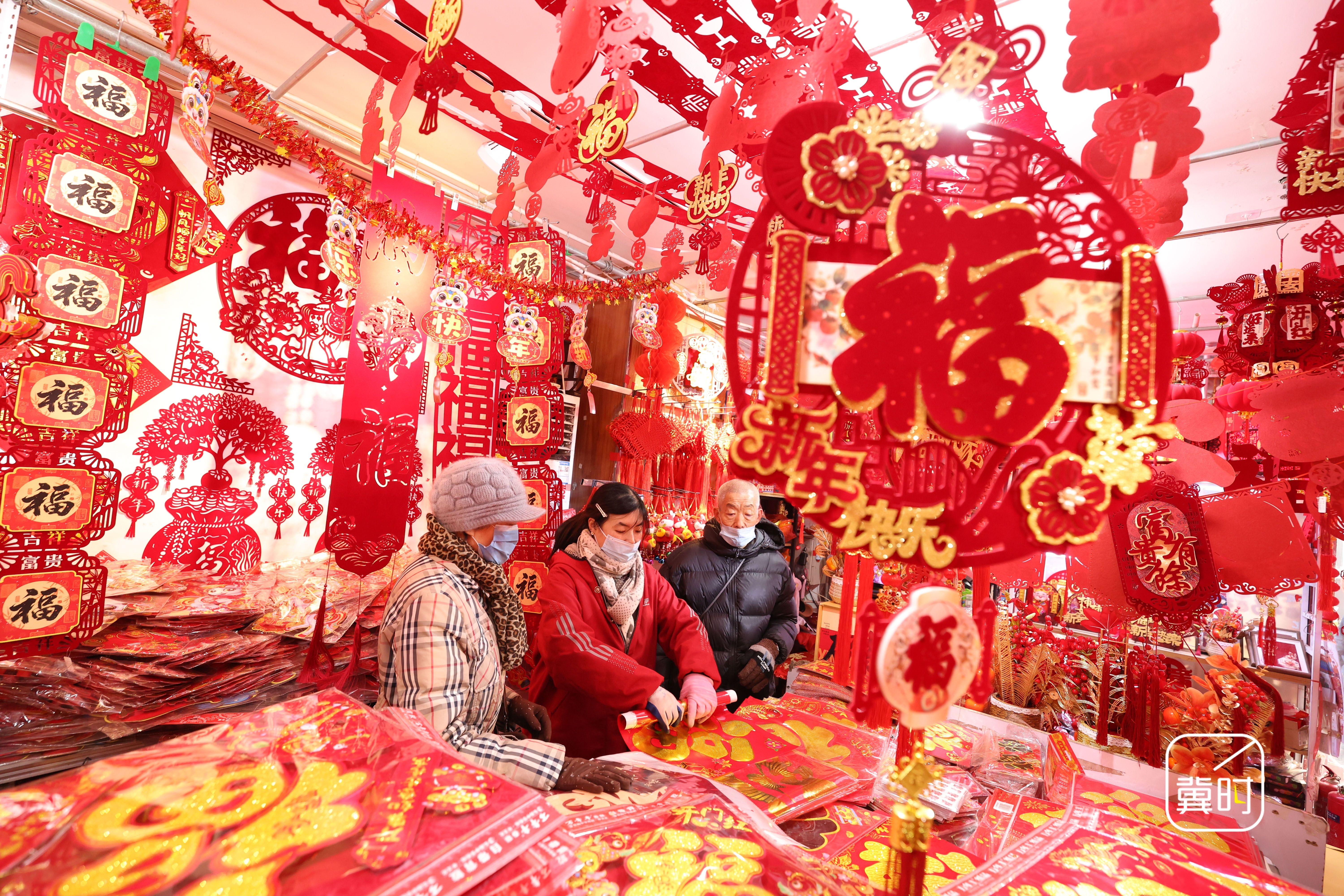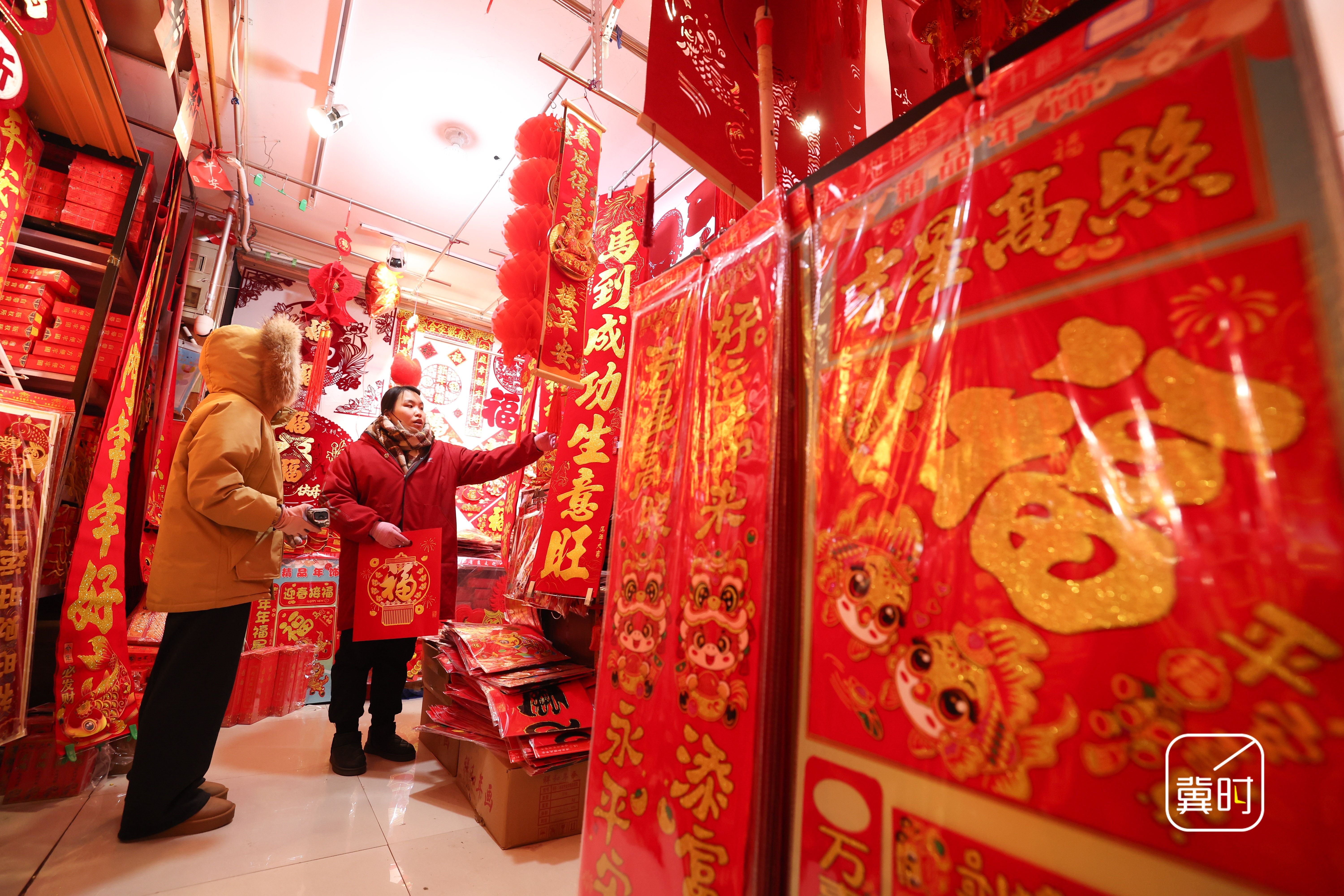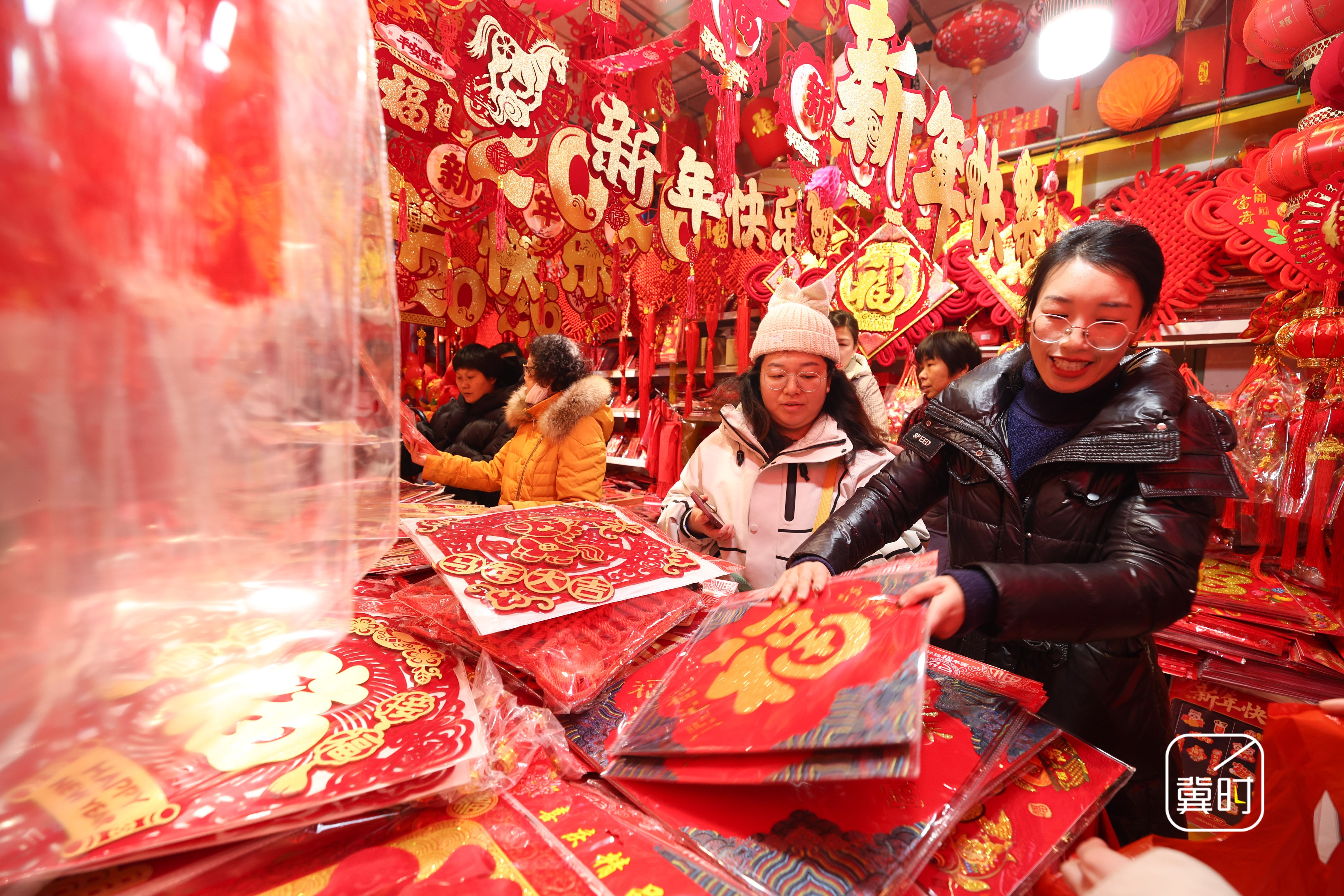 冀时新闻报道 (拍客 梁子栋)春节临近,河北省石家庄市长安区的年货市场日渐红火,众多市民挑选春联、灯笼等特色年货,迎接新春佳节。