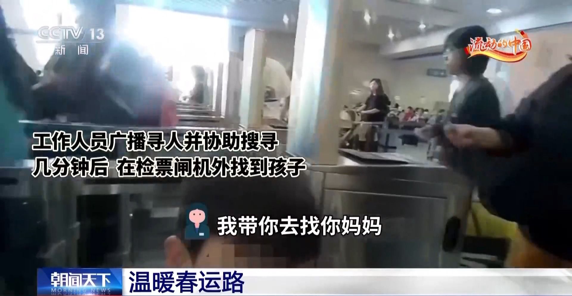 在广东珠海,一位母亲取行李箱时与3岁儿子走失,到车站服务台求助。工作人员广播寻人并协助搜寻,几分钟后,在检票闸机外找到孩子。妈妈见到孩子后激动落泪,工作人员随后护送母子顺利乘车。(总台央视记者 翟壮 陈晰)