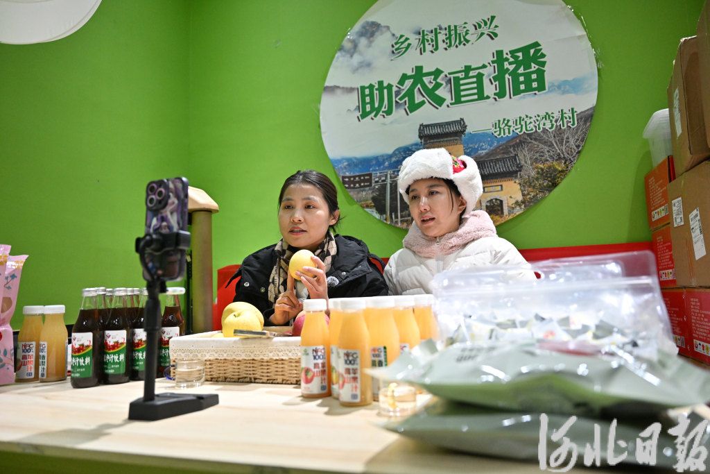 2月3日,骆驼湾村共享直播间,主播正在推介特色农产品。河北日报记者 田明摄