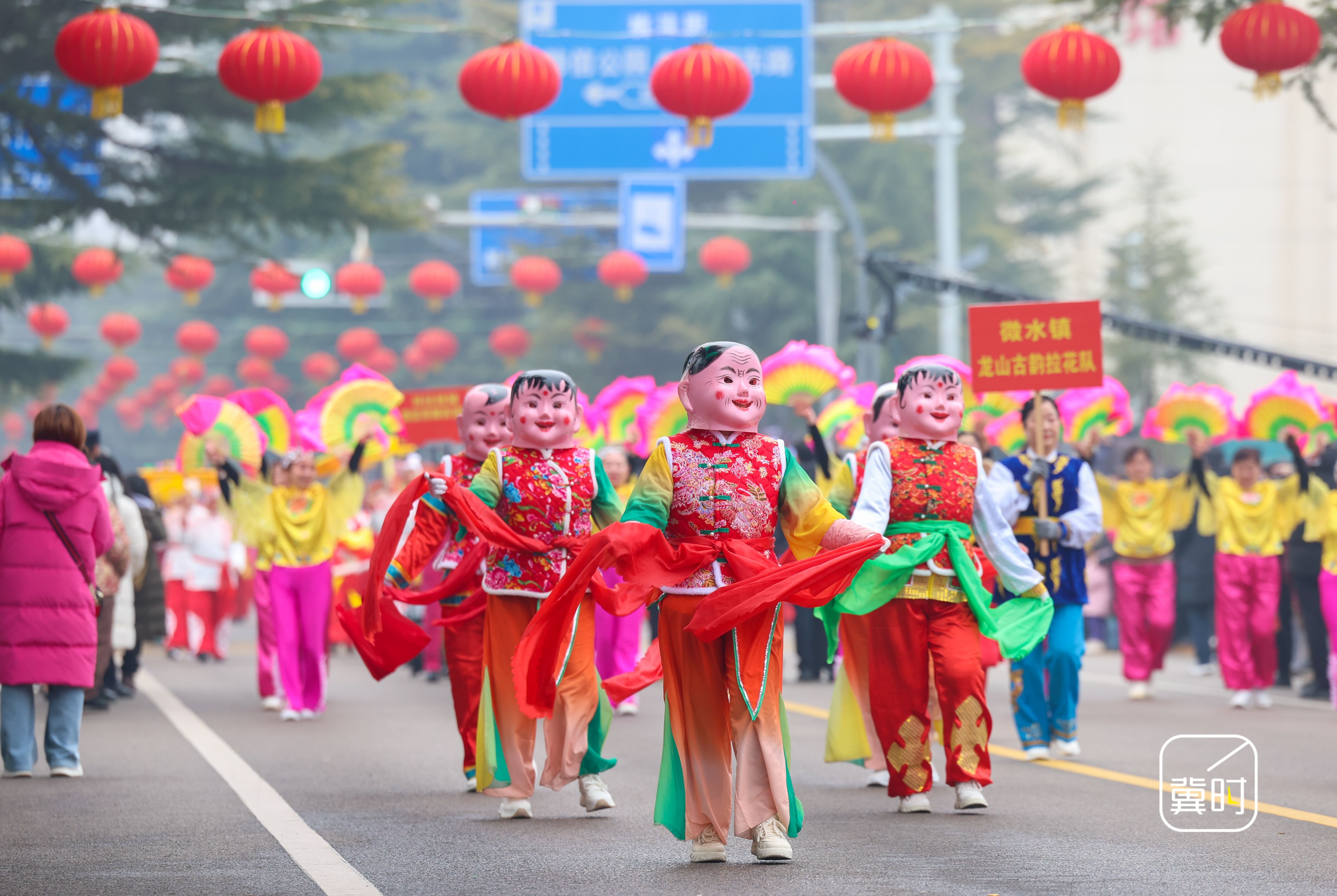 冀时新闻报道(拍客 梁子栋)3月4日,石家庄市井陉县举办第三十届民间艺术展演活动,由井陉拉花、桃林坪花脸社火等非遗民俗、民间花会组成的百余支队伍,两千余名群众演员齐聚一堂,为当地群众和各地游客献上一场喜庆祥和的文化大餐。