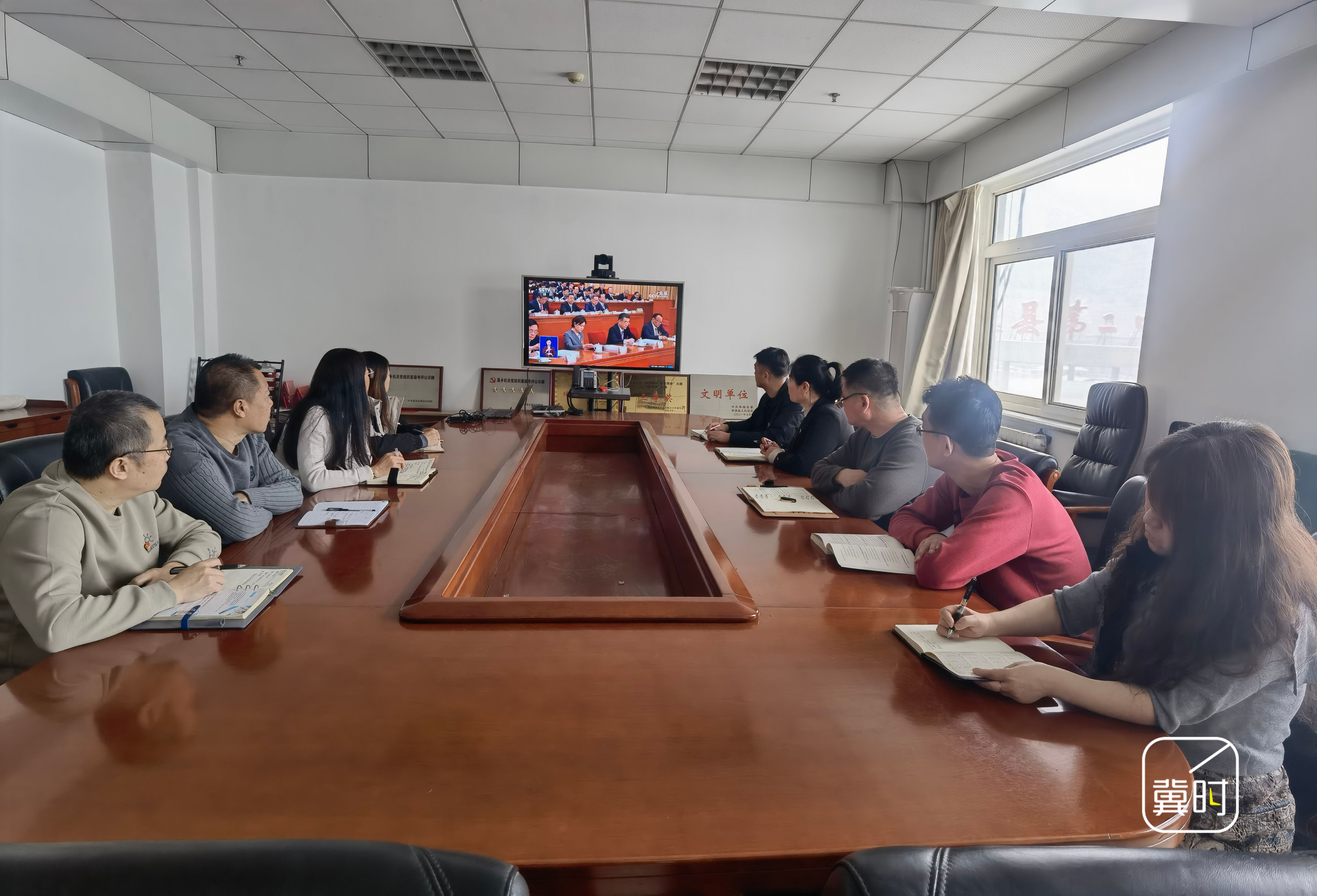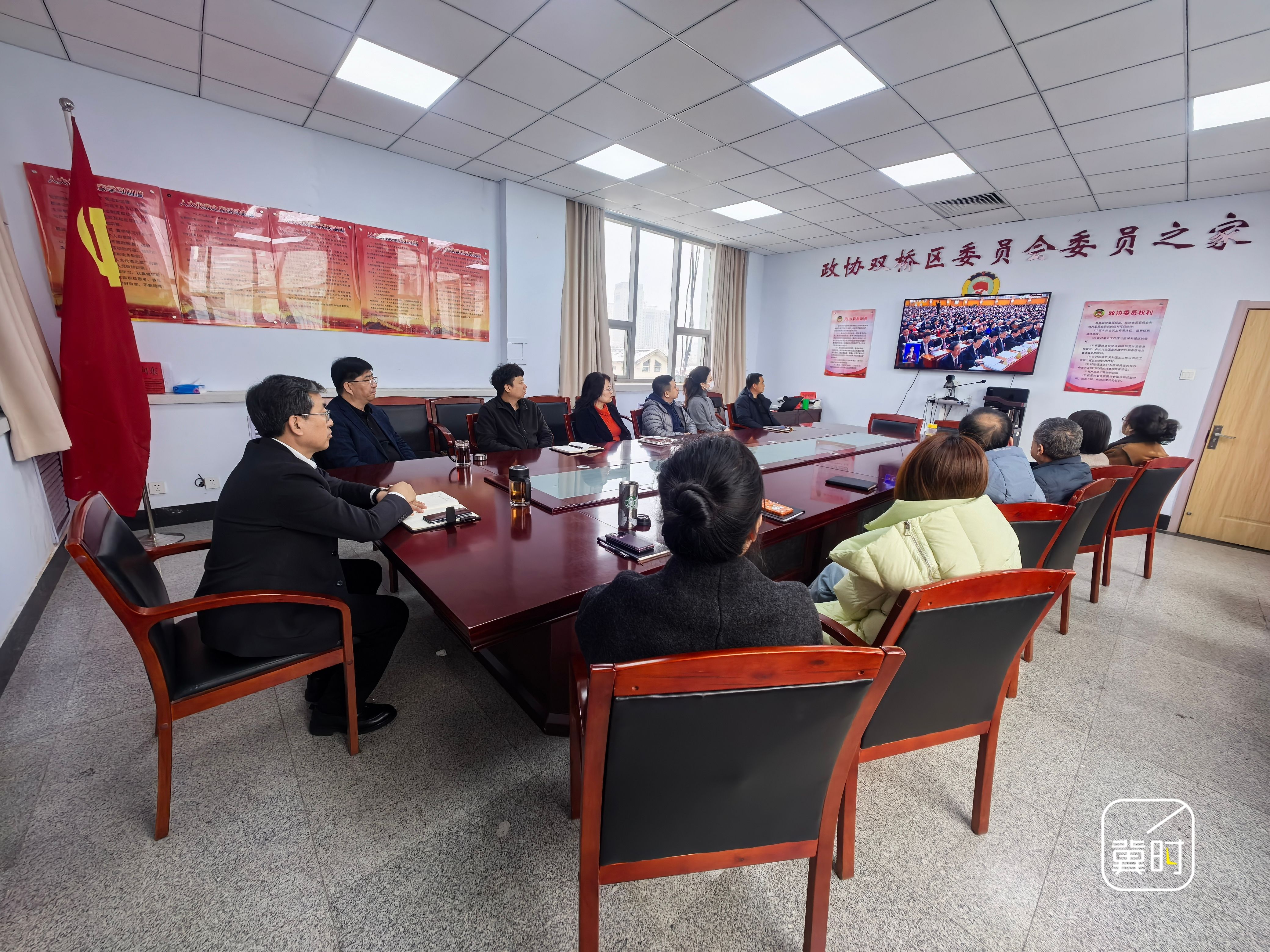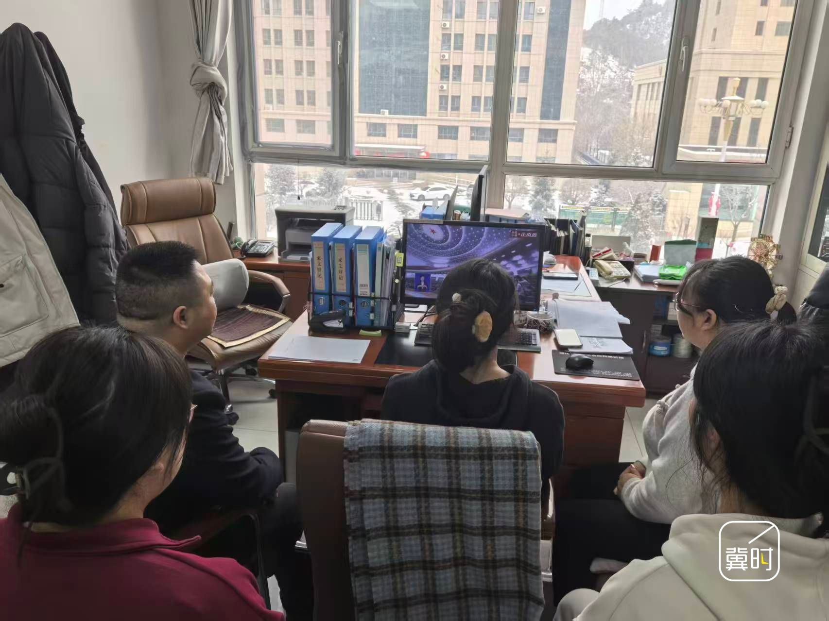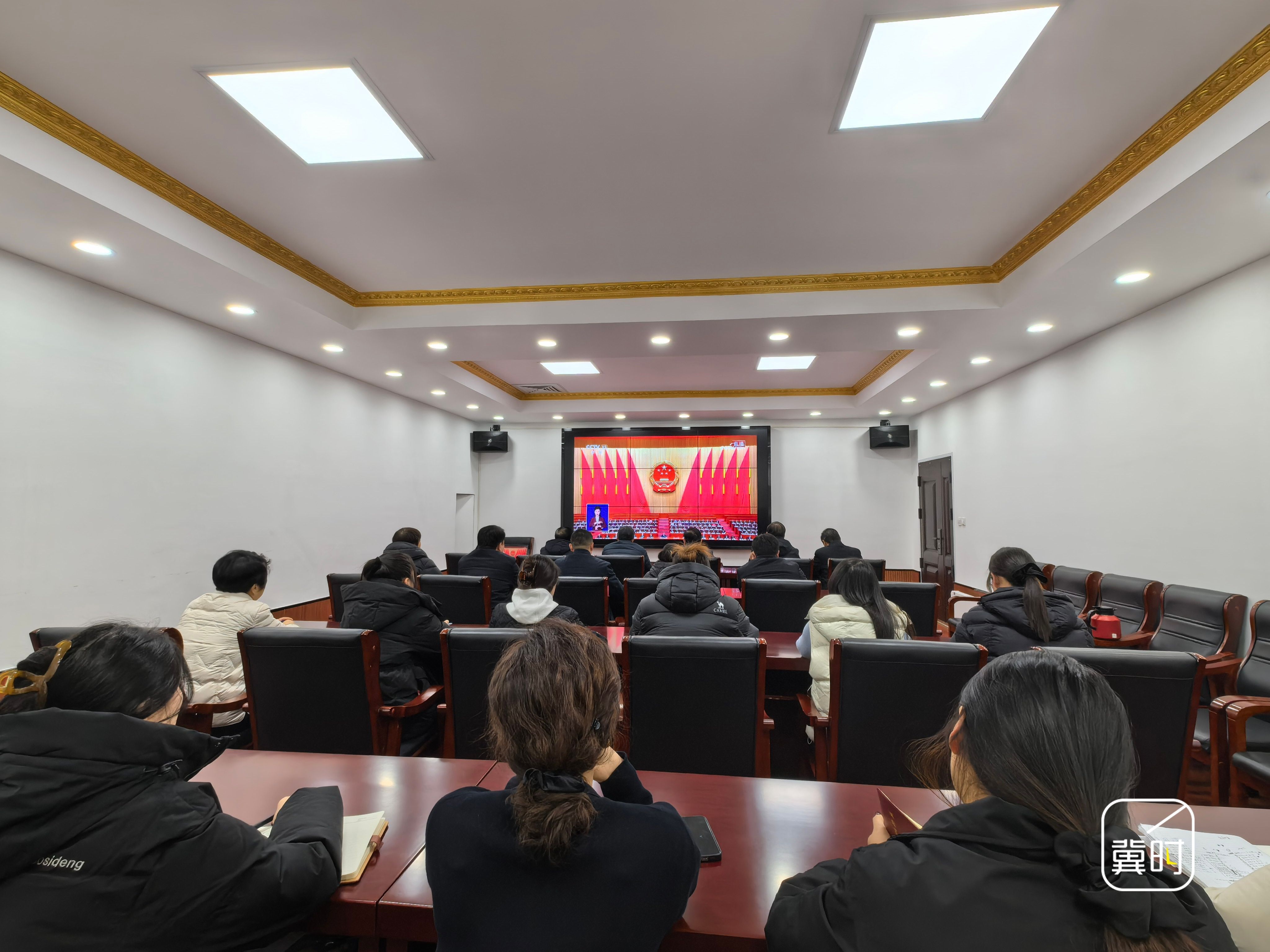 河北省供销系统组织党员干部收听收看十四届全国人大四次会议开幕会直播。(河北台 崔志海 岳召玺)