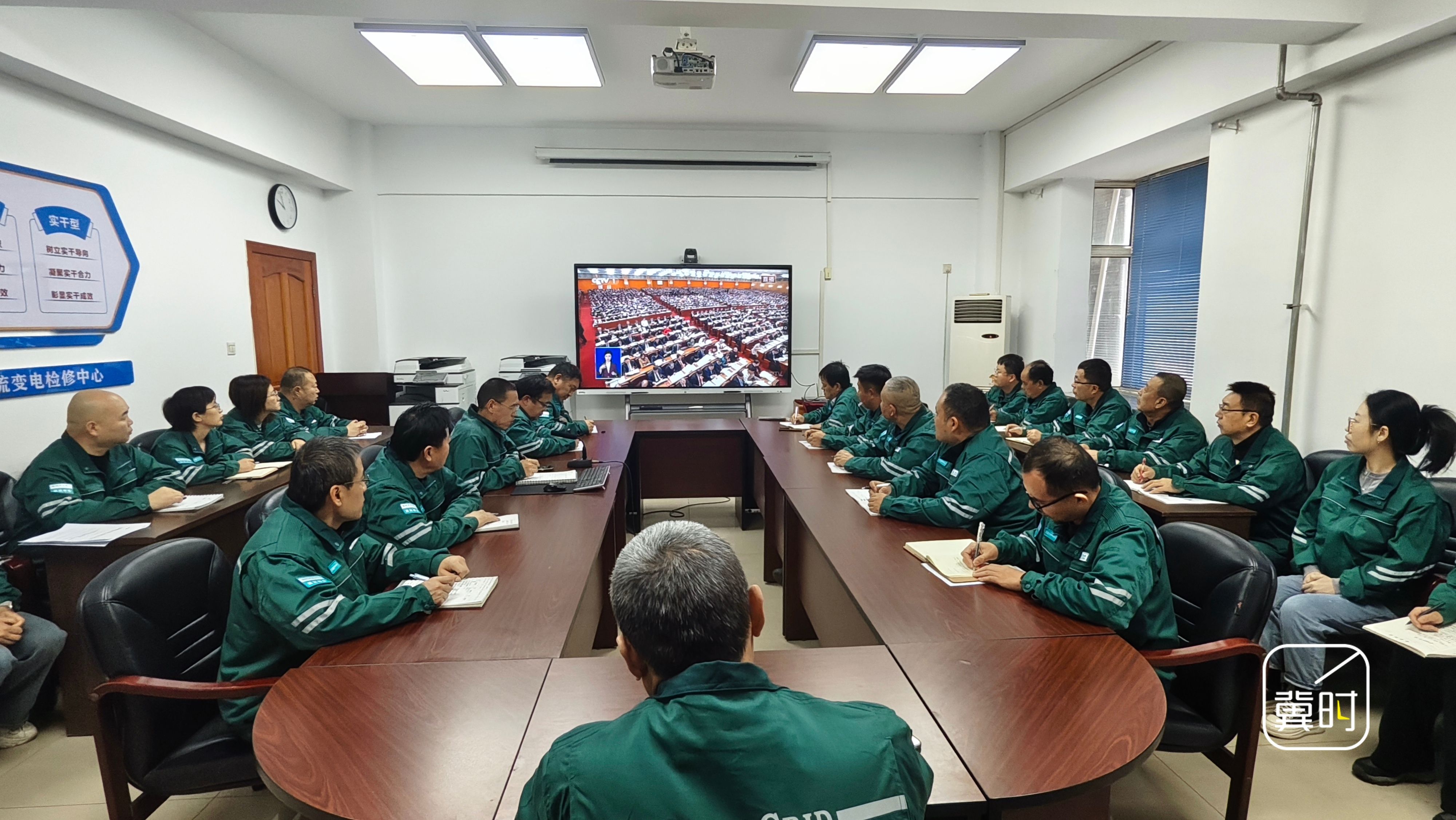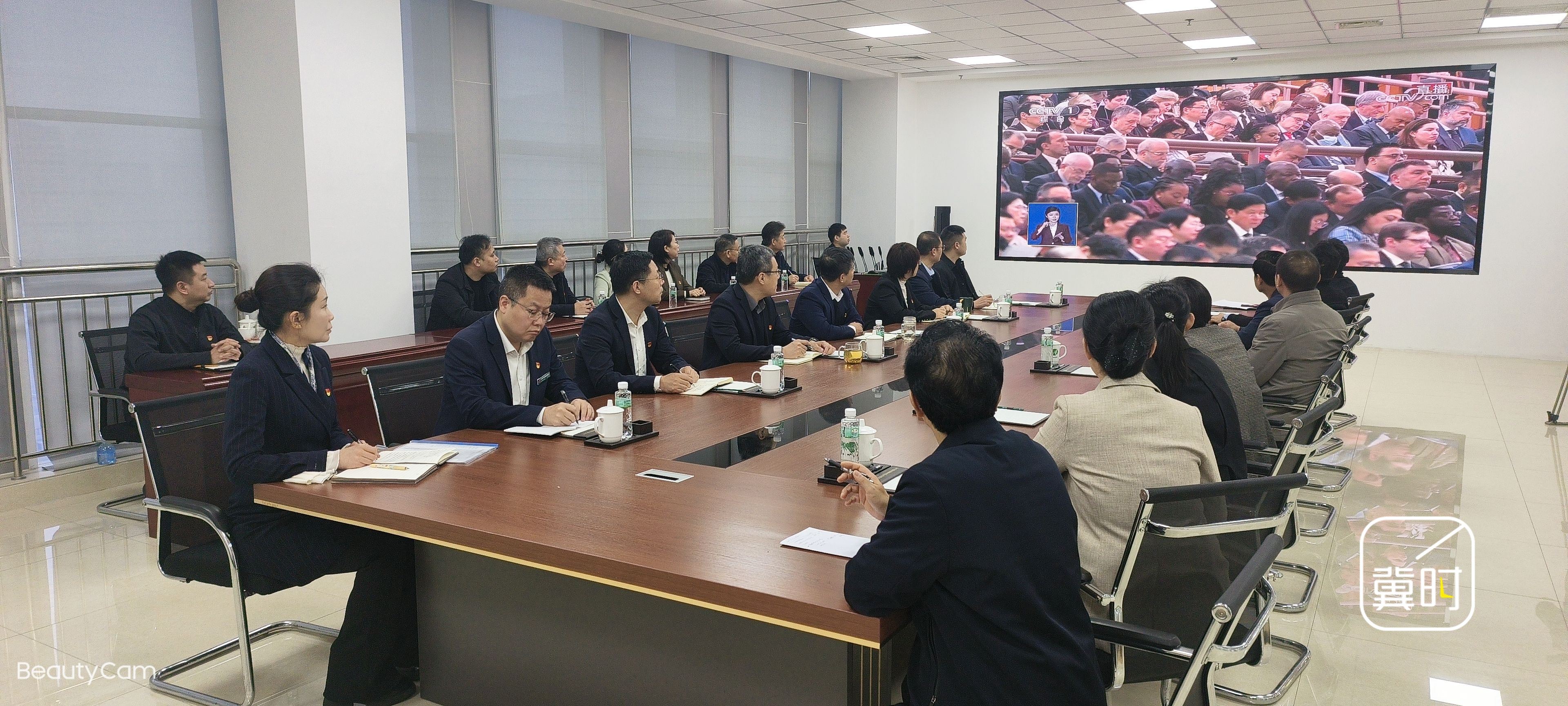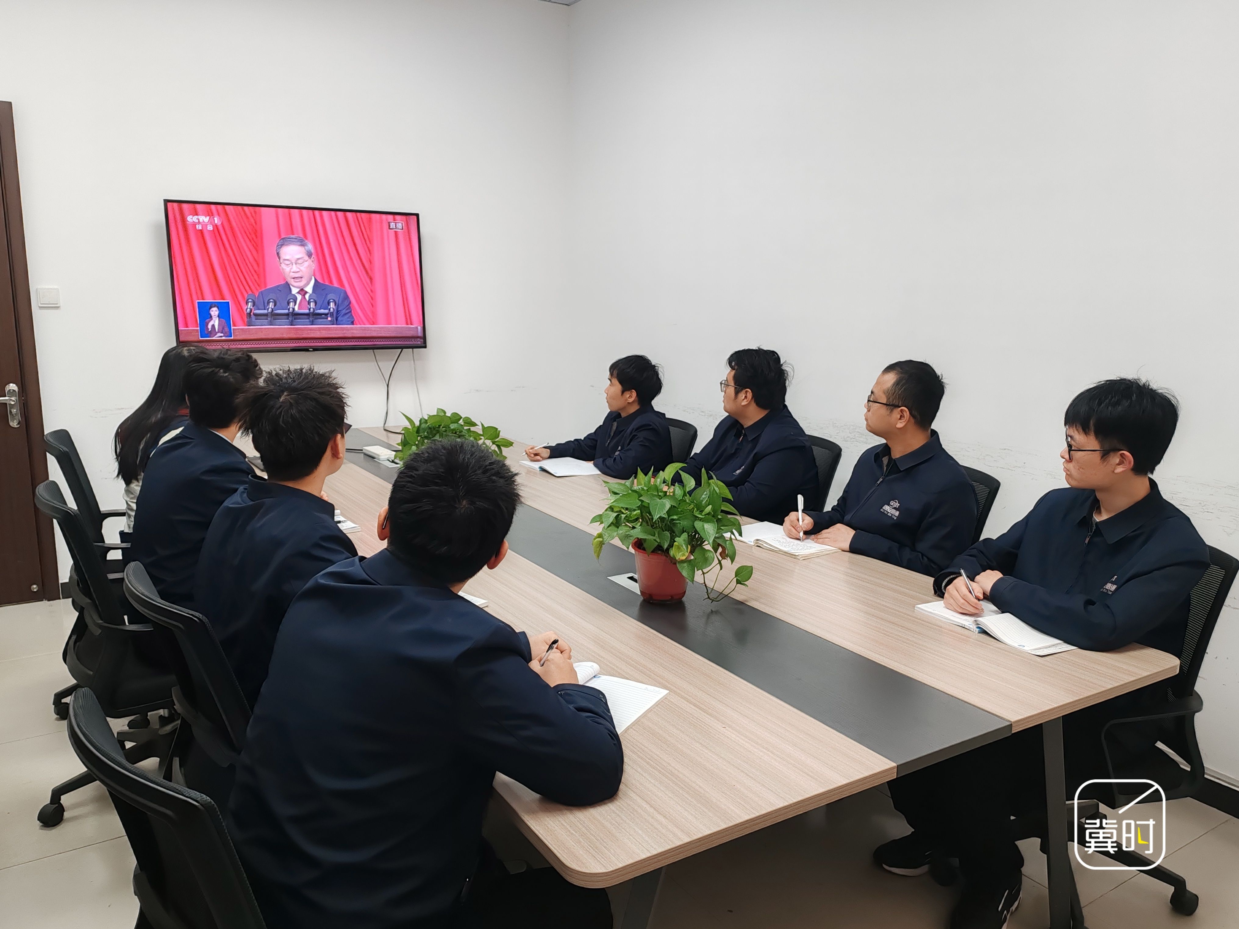 廊坊市固安信通公司集中收看开幕会直播,大家表示,要以会议精神为指导,以创新赋能企业高质量转型发展。(河北台 李春霞 王亮 通讯员 肖景坤)